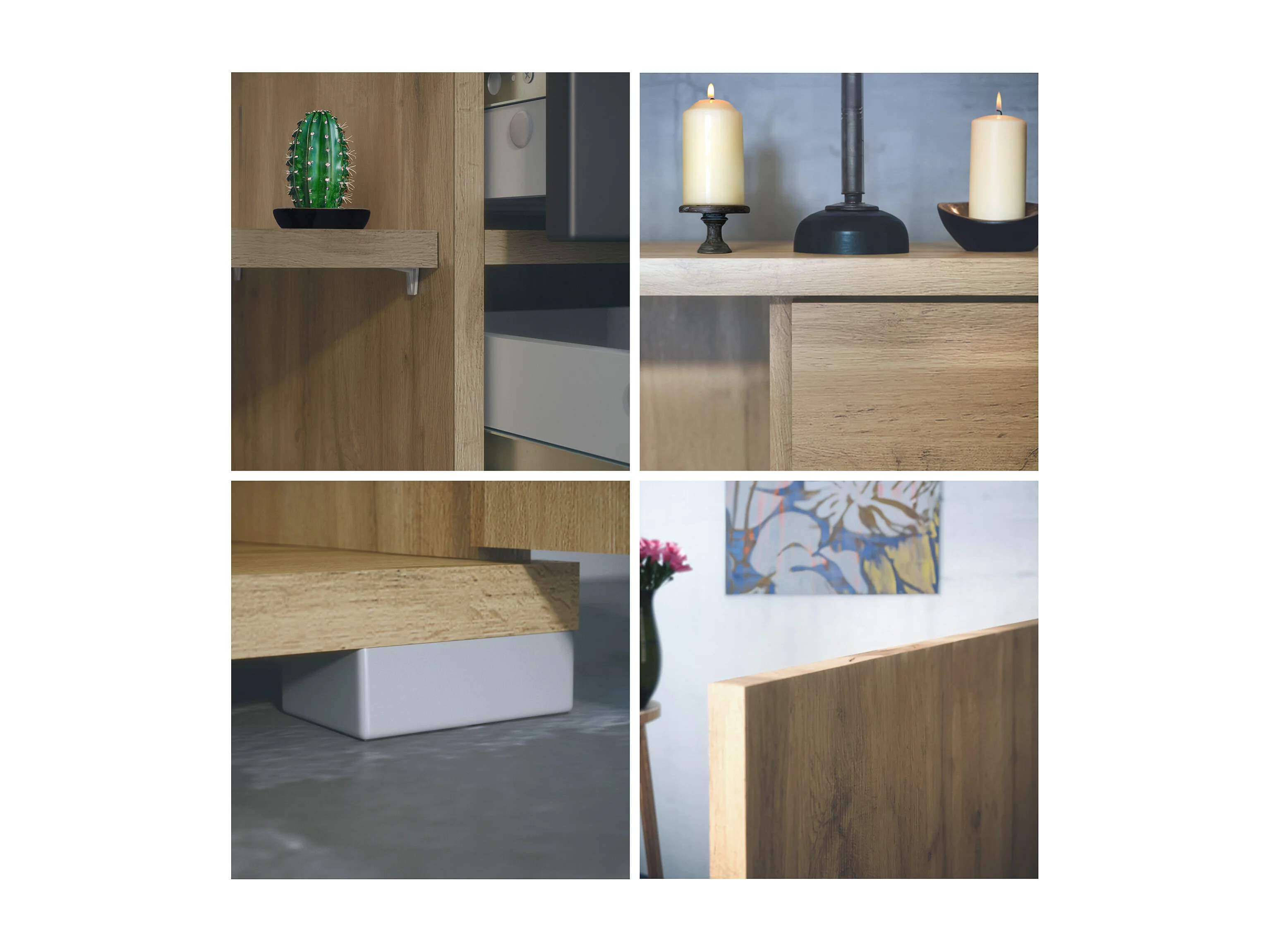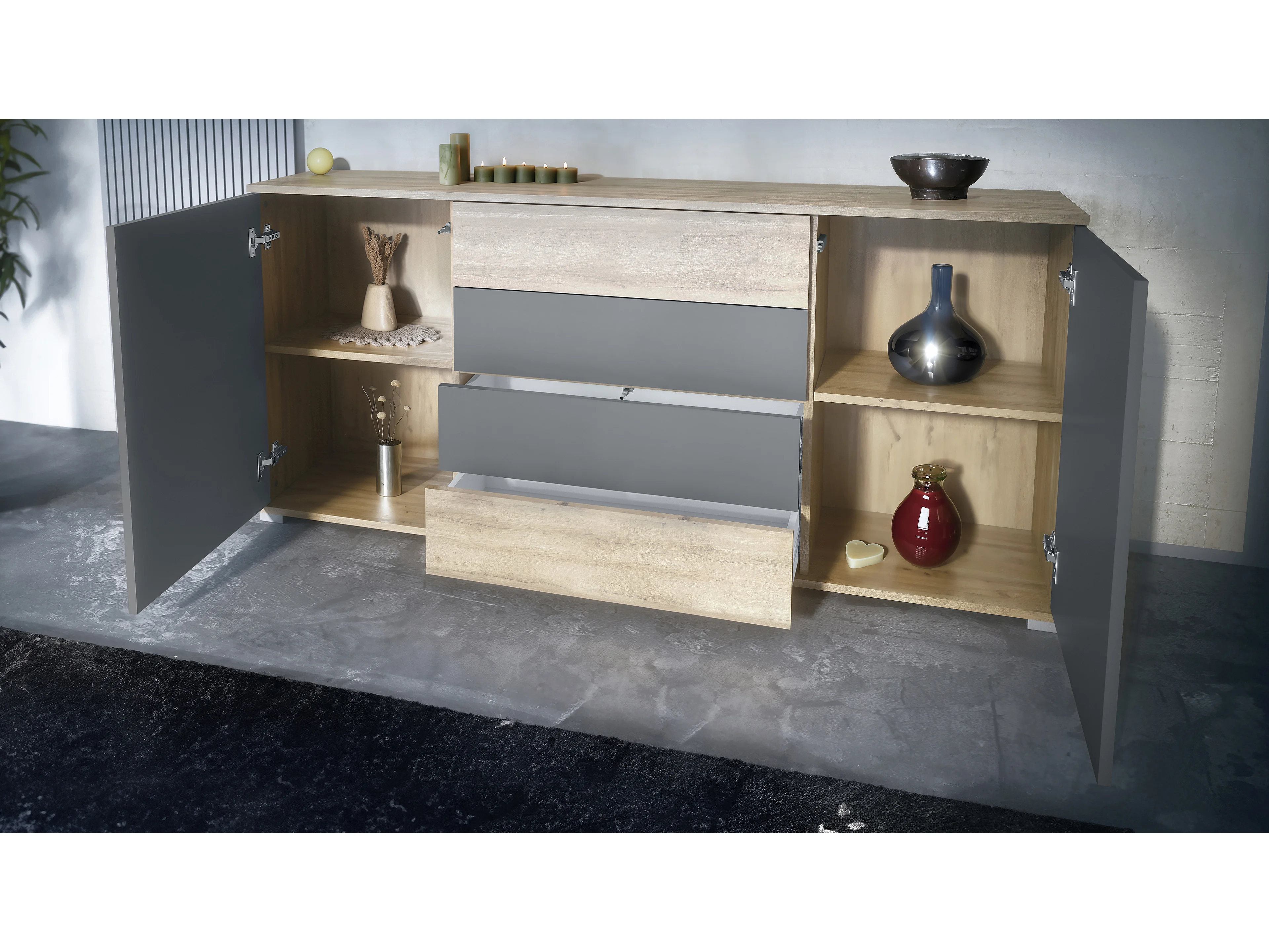 Buffet Santo V2, Enfilade avec 2 portes et 4 tiroirs, Chêne Evoke / Chêne Evoke (166,5 x 75,5 x 35 cm)