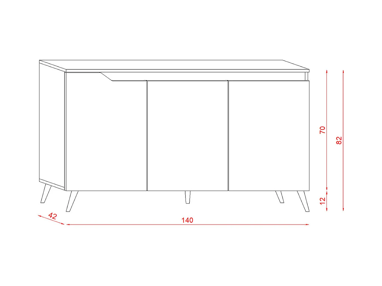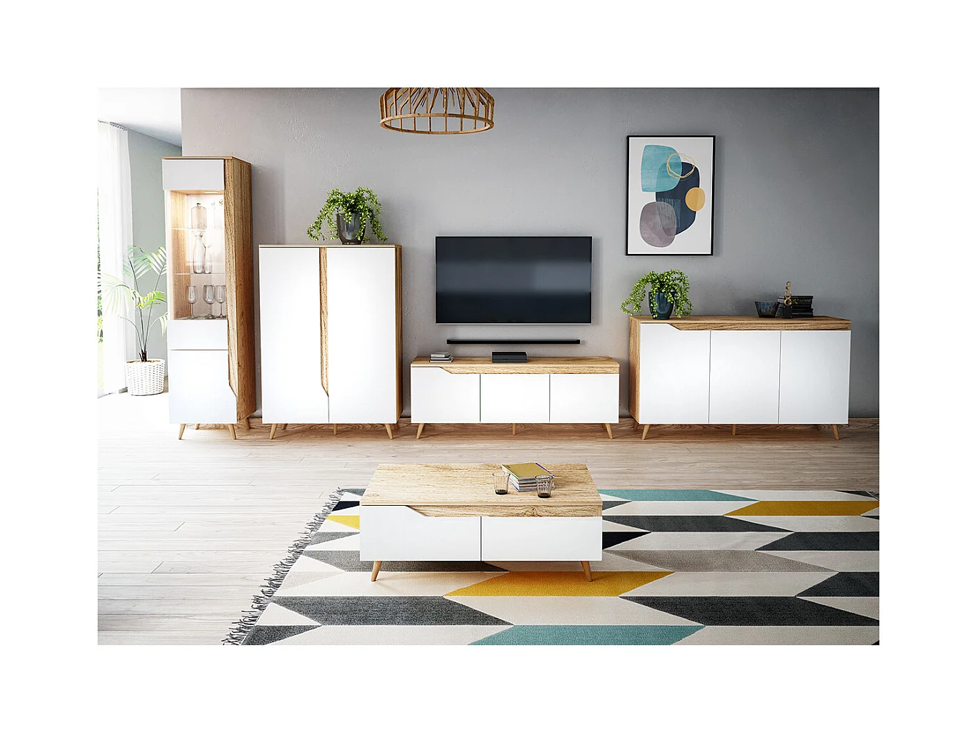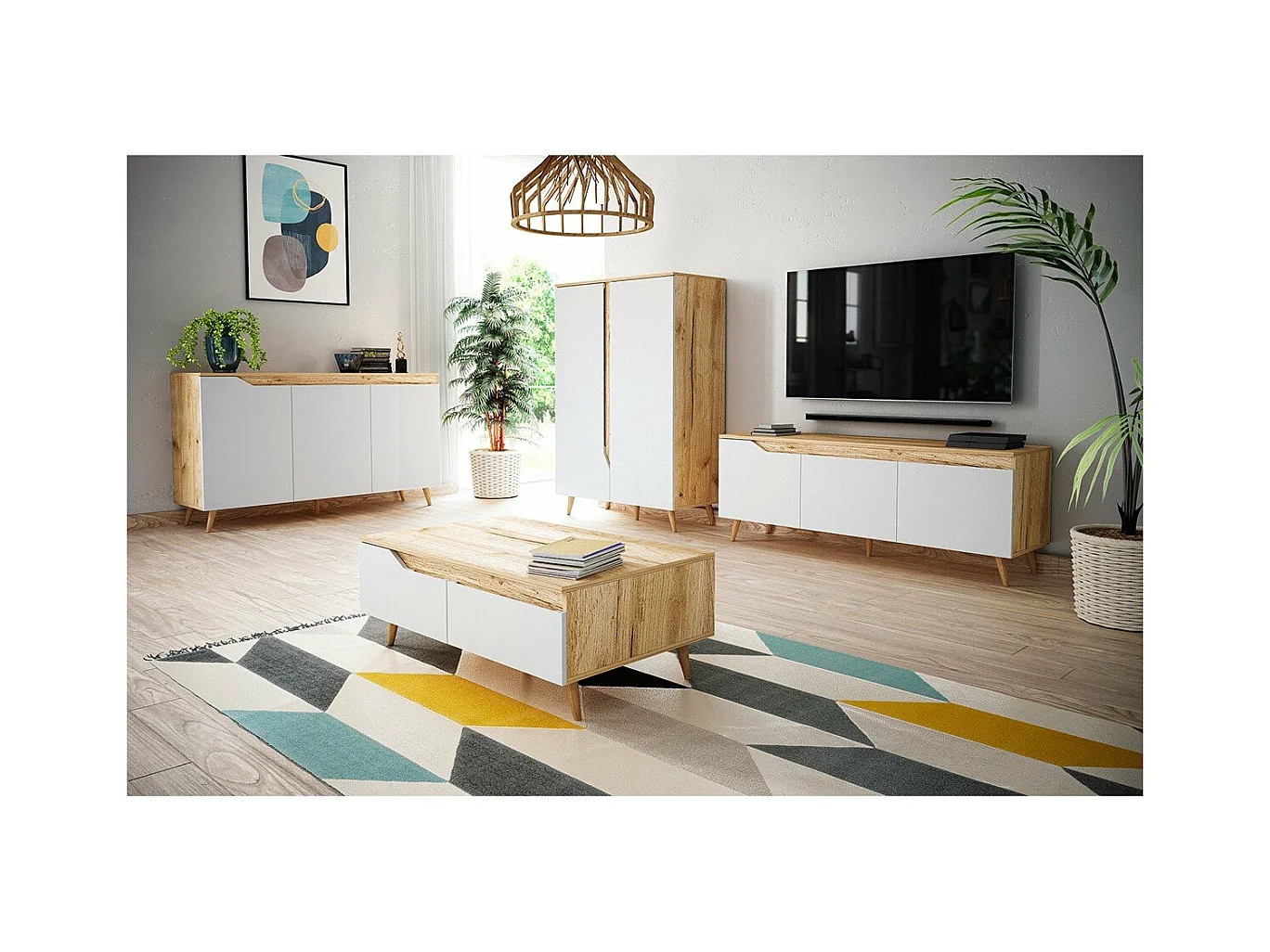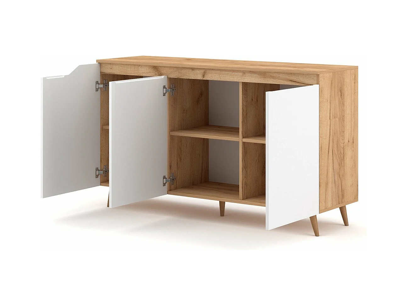 Buffet Scandinave 3 Portes L140 cm - Décor bois et blanc - Tree