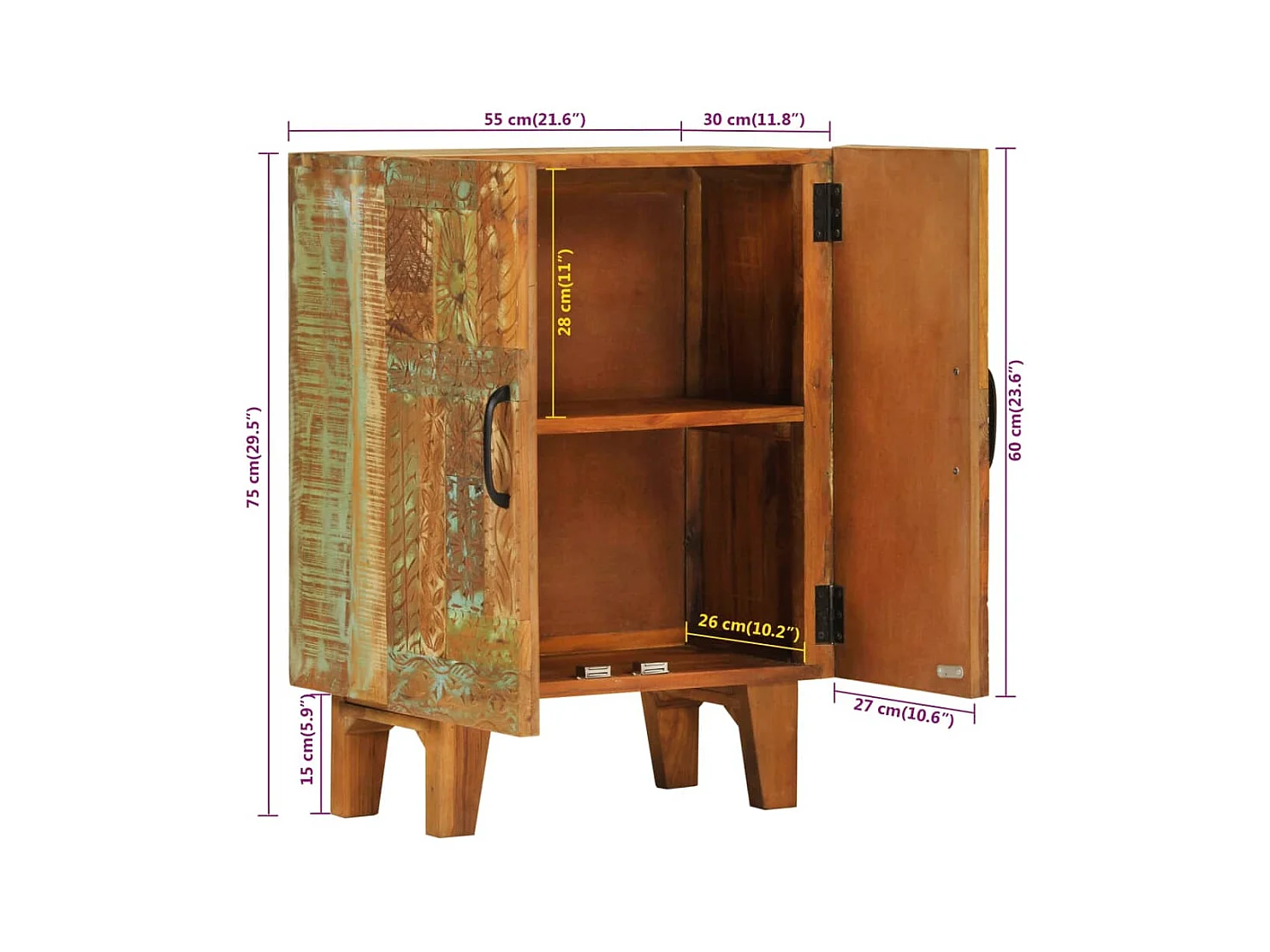 Buffet sculpté à la main 55x30x75 cm bois massif récupération