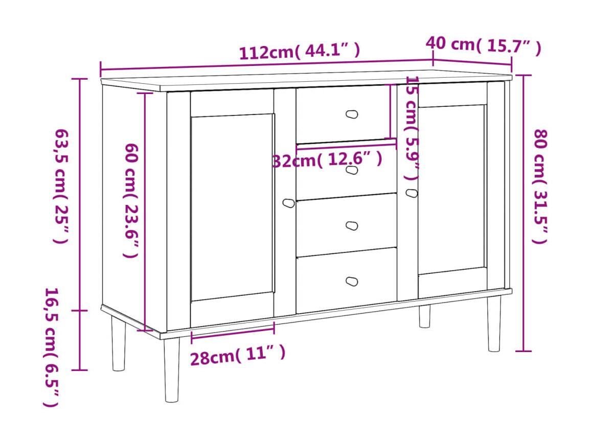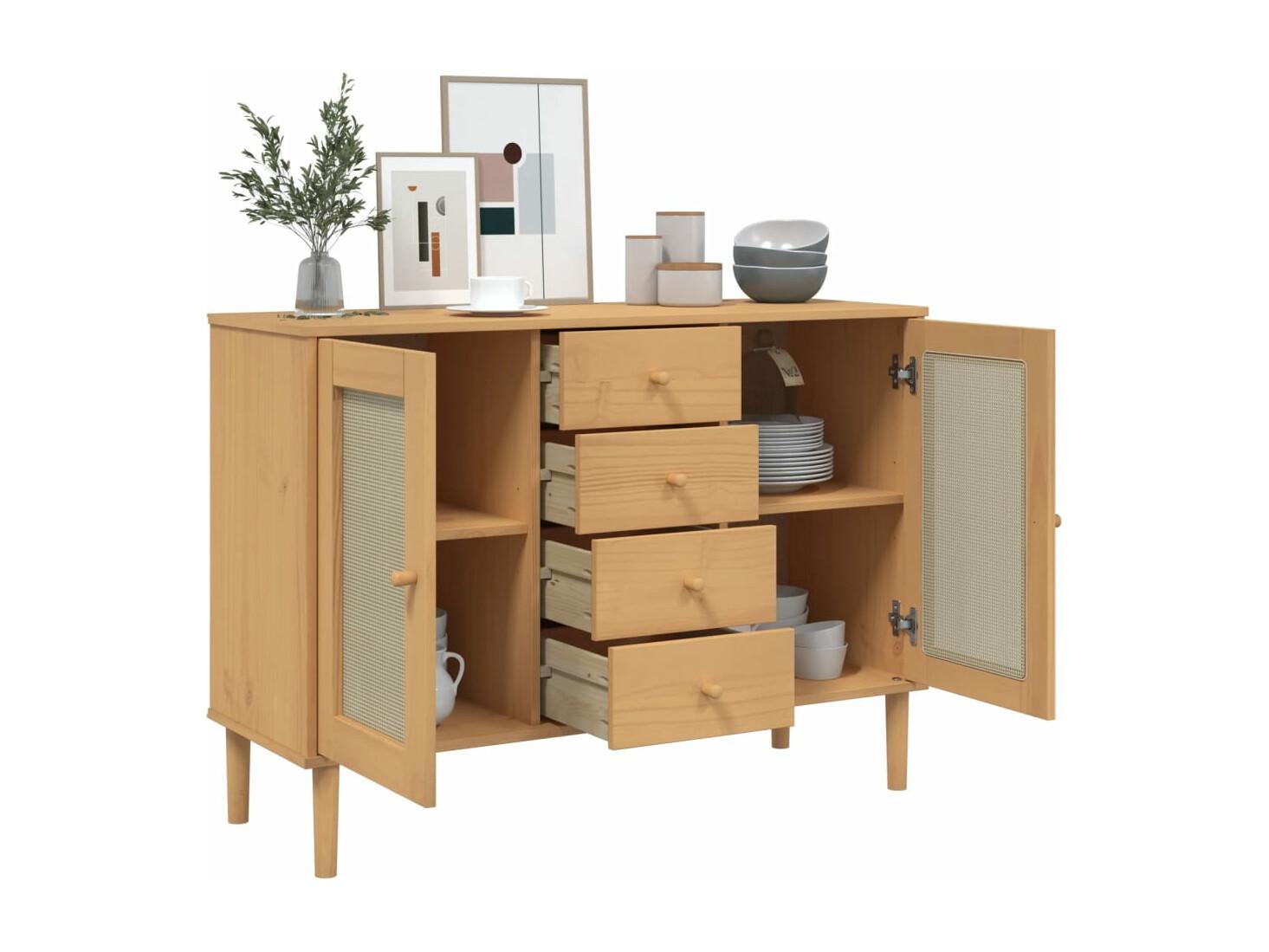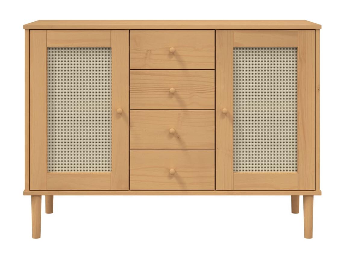 Buffet SENJA aspect rotin marron 112x40x80 bois massif de pin
