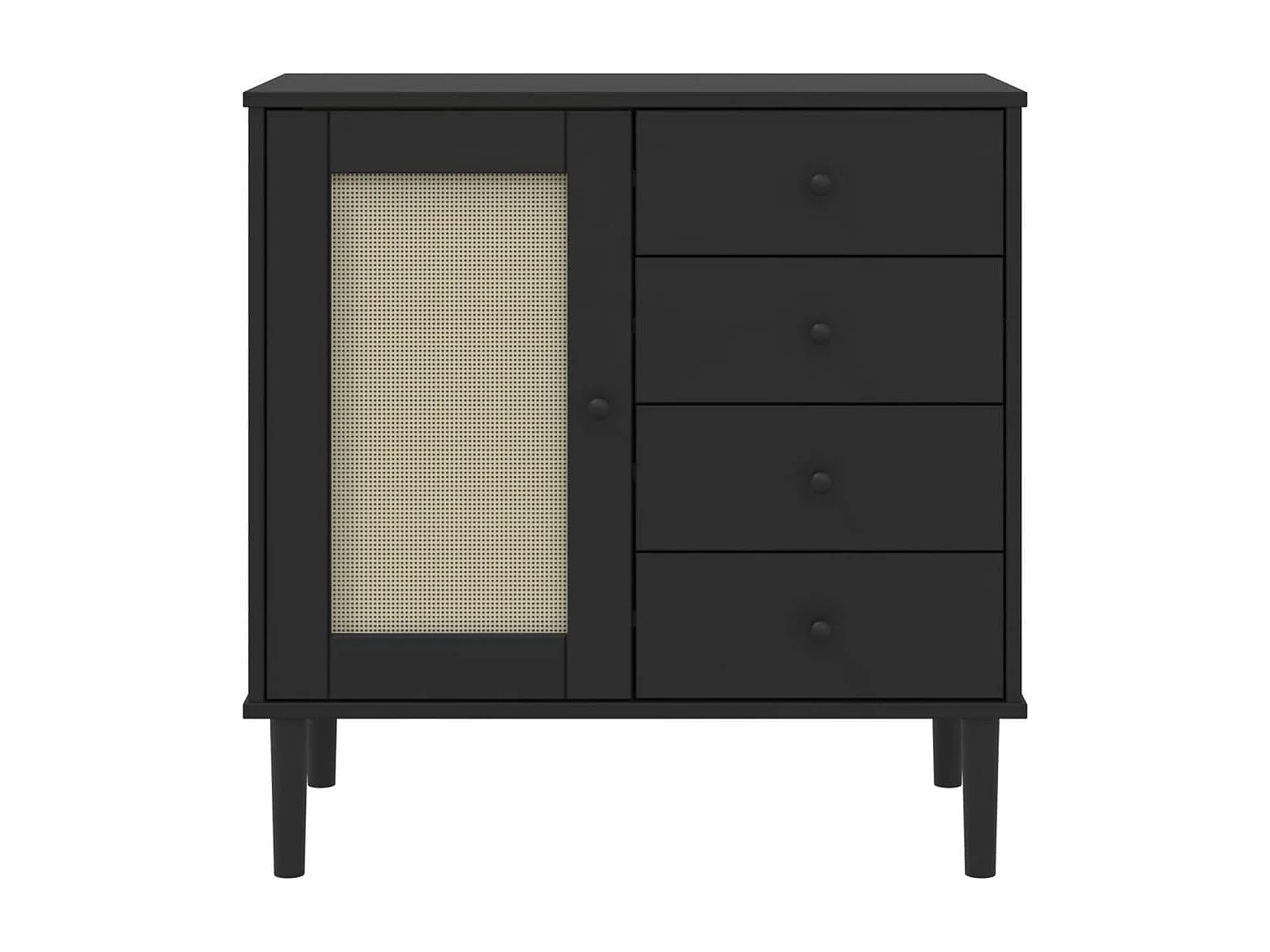 Buffet SENJA aspect rotin noir 80x40x80 cm bois massif de pin