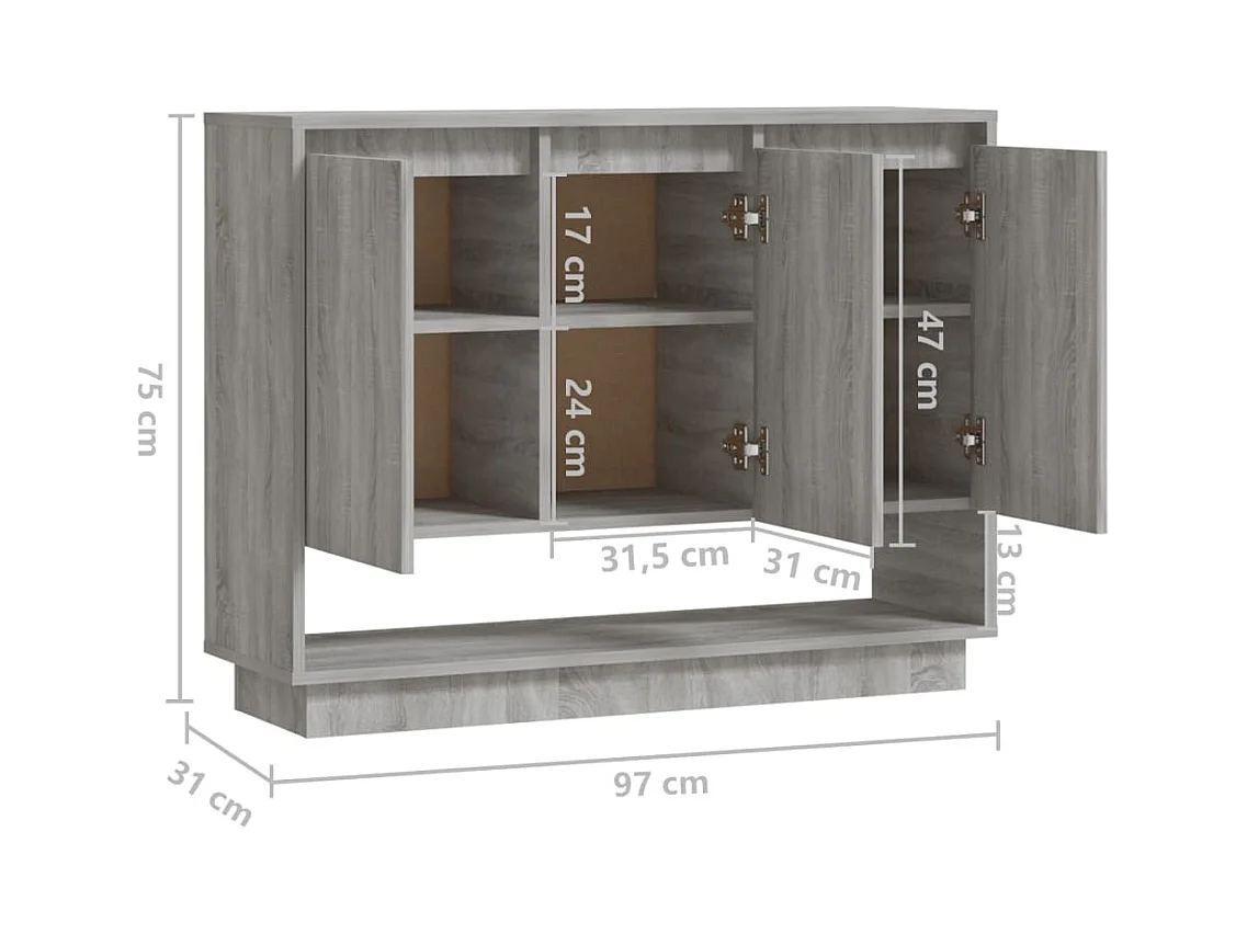 Buffet haut sonoma gris 69,5x31x115 cm bois d'ingénierie