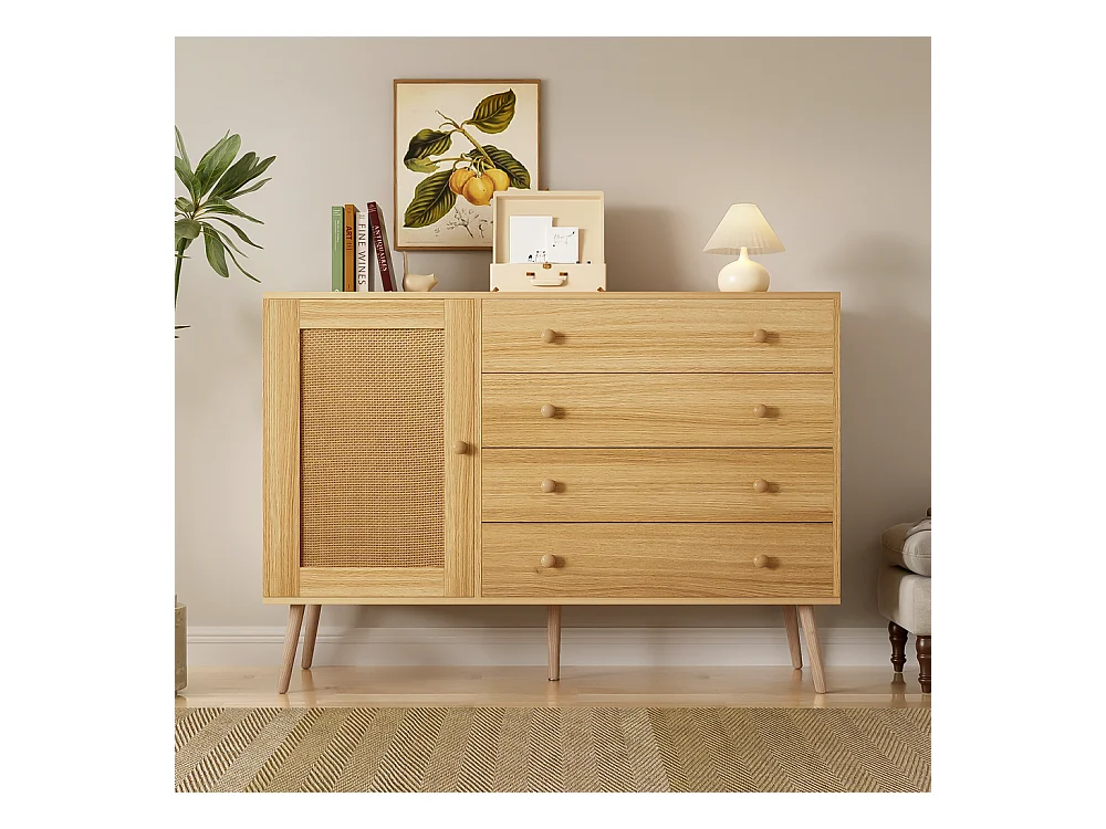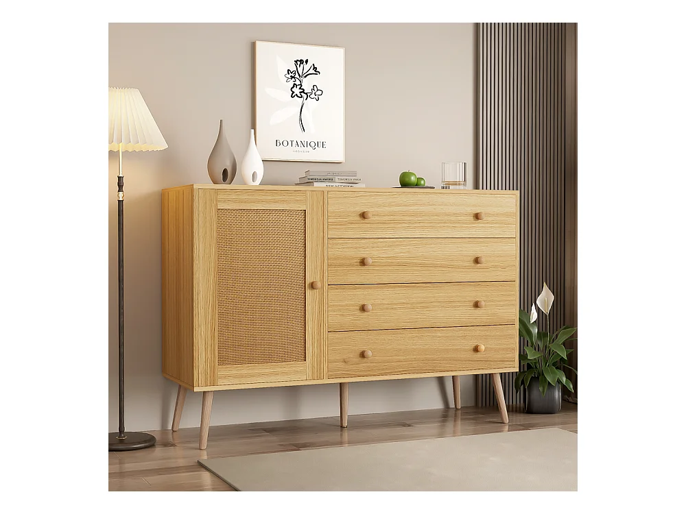Buffet Style bois indigène avec 4 tiroirs et 1 porte d'armoire Marron