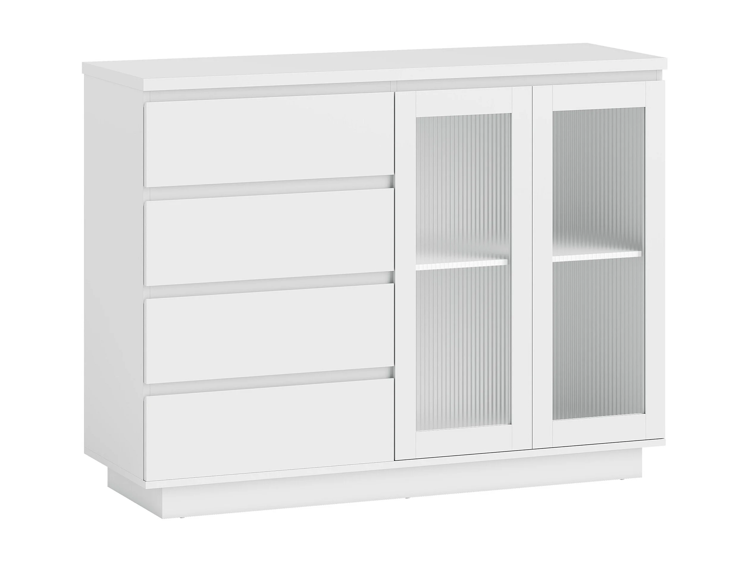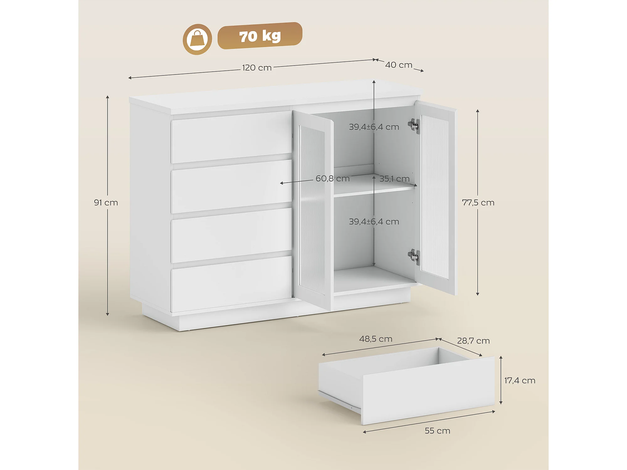 Buffet style contemporain blanc laqué 2 portes verre étagère 4 tiroirs dim. 120 x 40 x 91 cm blanc