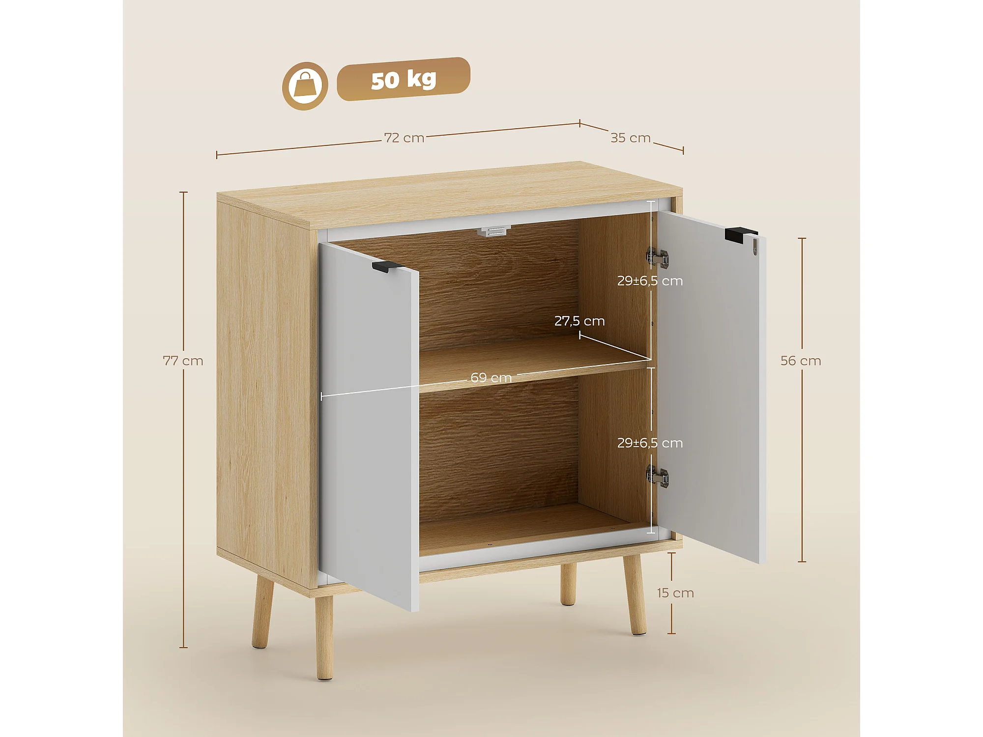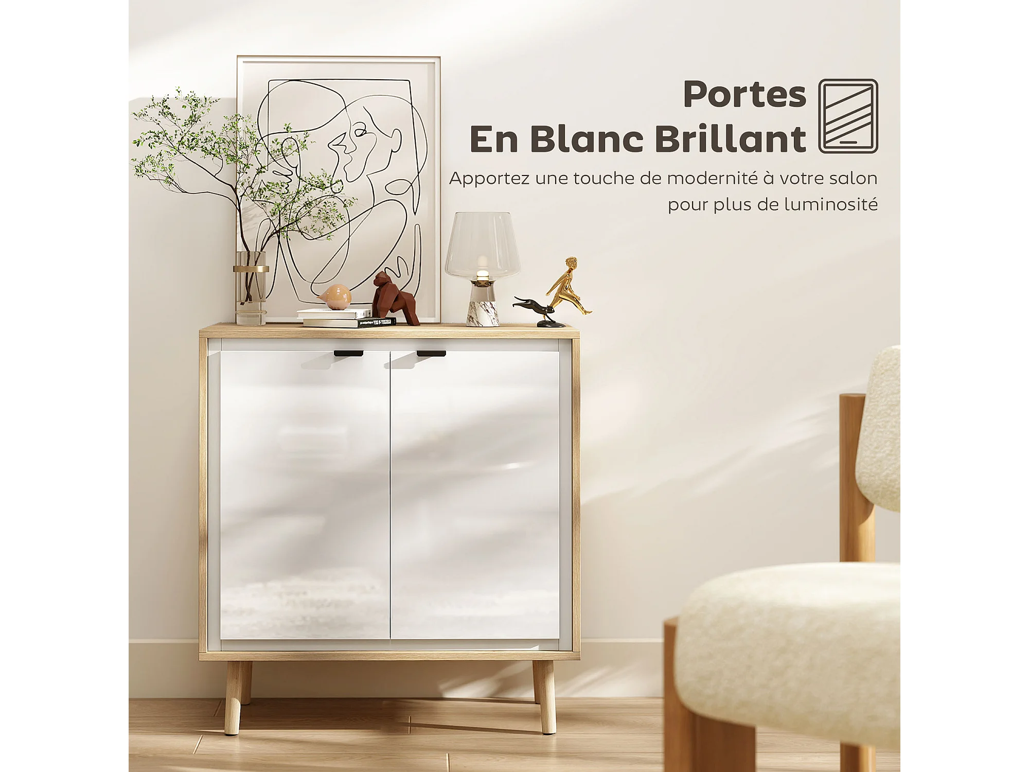 Buffet style nordique 2 portes étagère façade blanc laqué effet bois clair