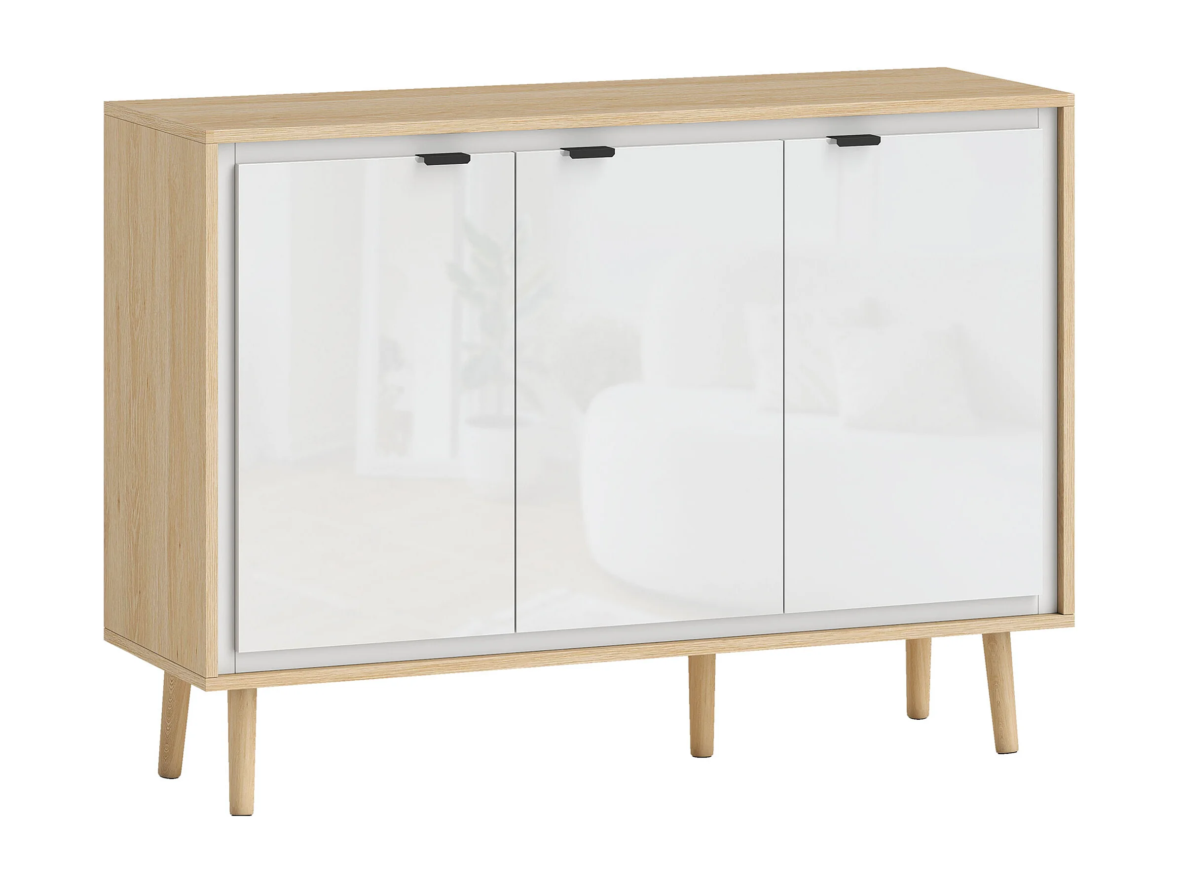 Buffet style nordique 3 portes 2 étagères façade blanc laqué effet bois clair