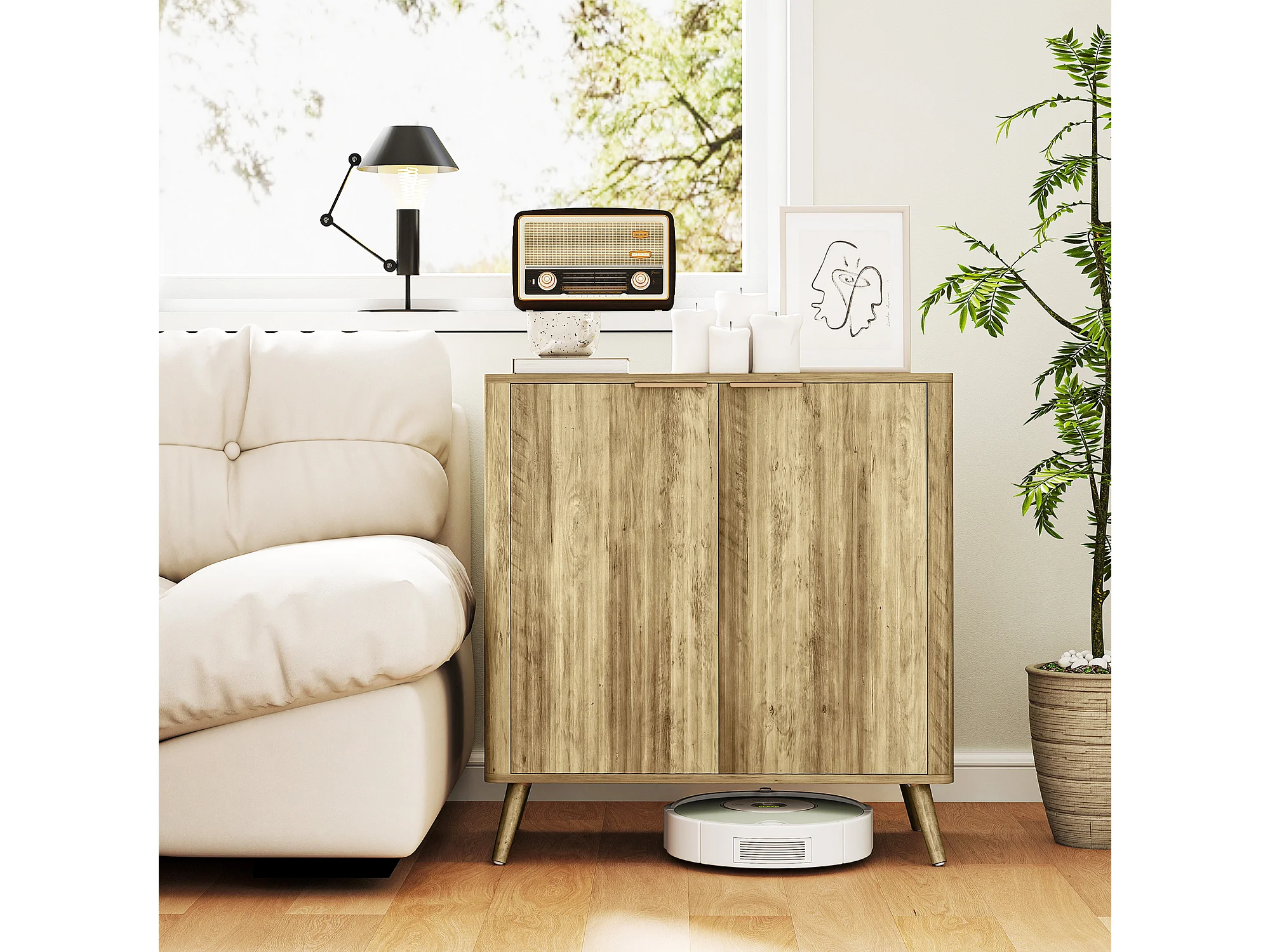 Buffet Bois Naturel avec Étagères, Style Rebounder – Parfait pour Salon ou Cuisine