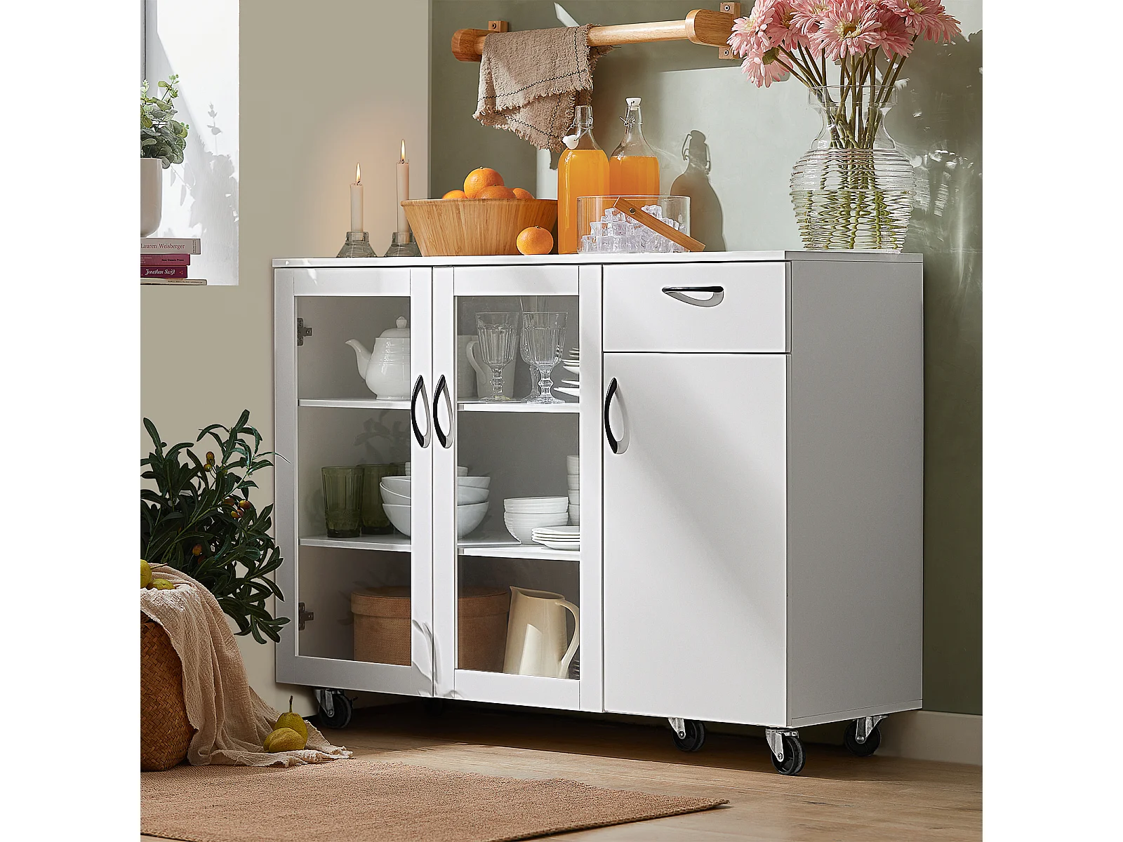 Buffet sur roulettes Commode de Cuisine Armoire de Cuisine Multi-Rangement, FSB57-W
