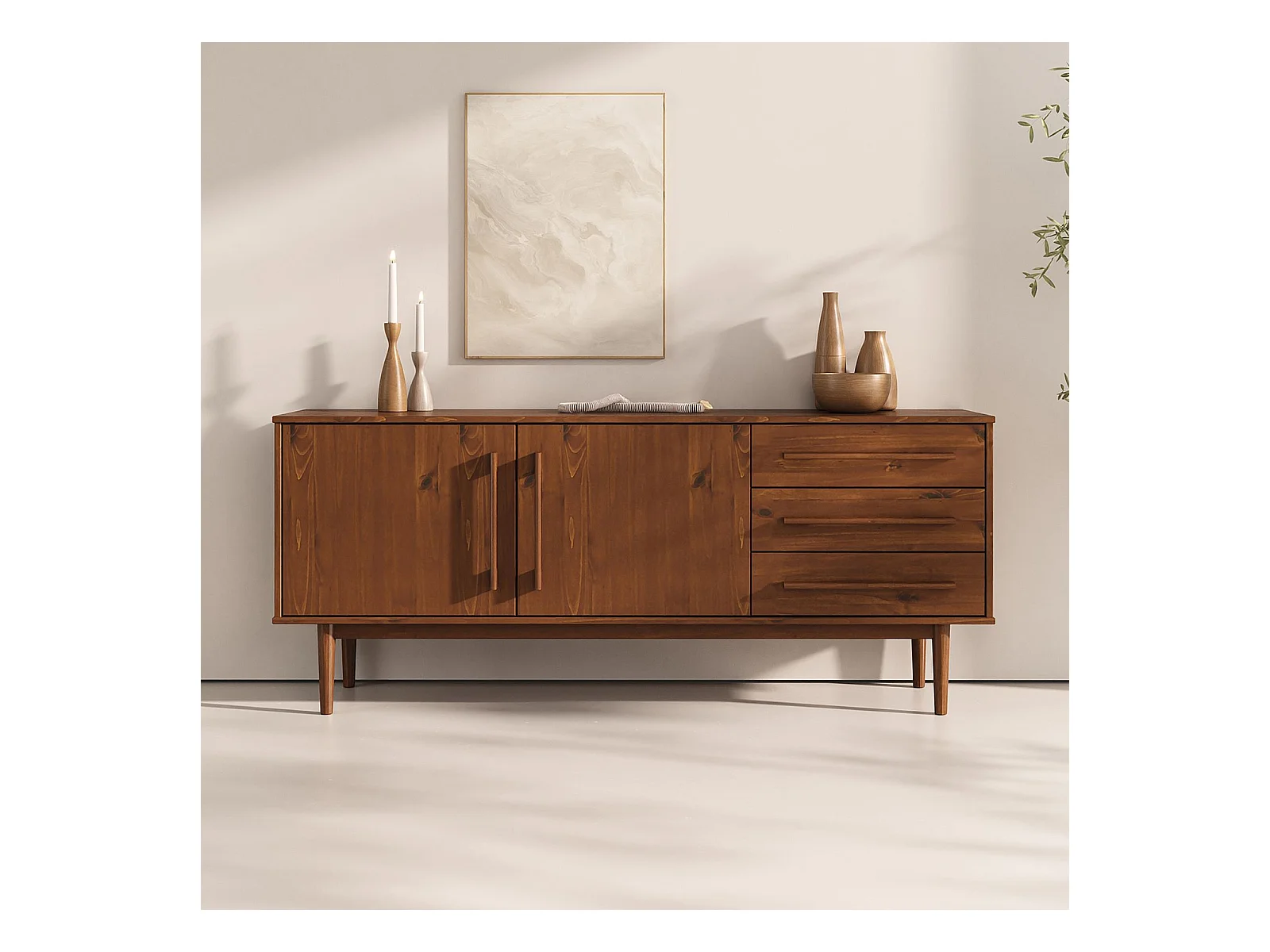 Buffet TECCA L 170 cm 2 Portes 3 Tiroirs en Bois Massif Coloris Châtaignier avec Étagères Réglables, Deux compartiments