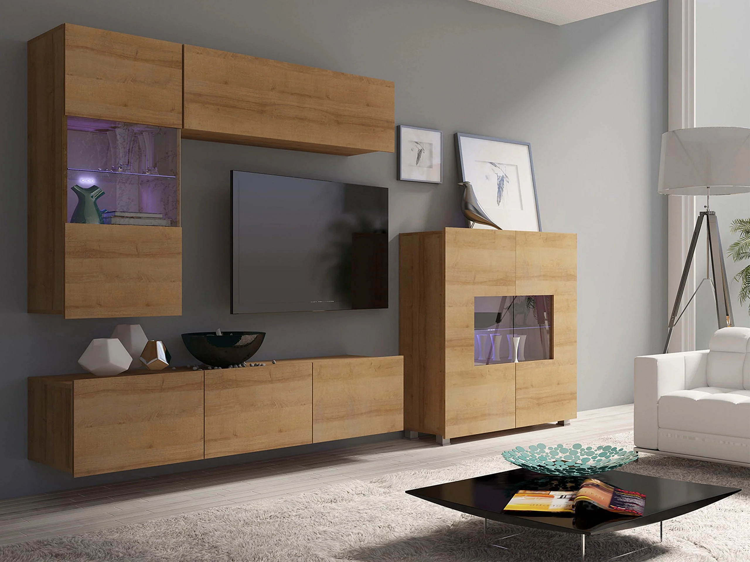 Buffet Remus, Chêne doré, 107x100cm, Le nombre de portes: 235cm, Verre trempé|Stratifié