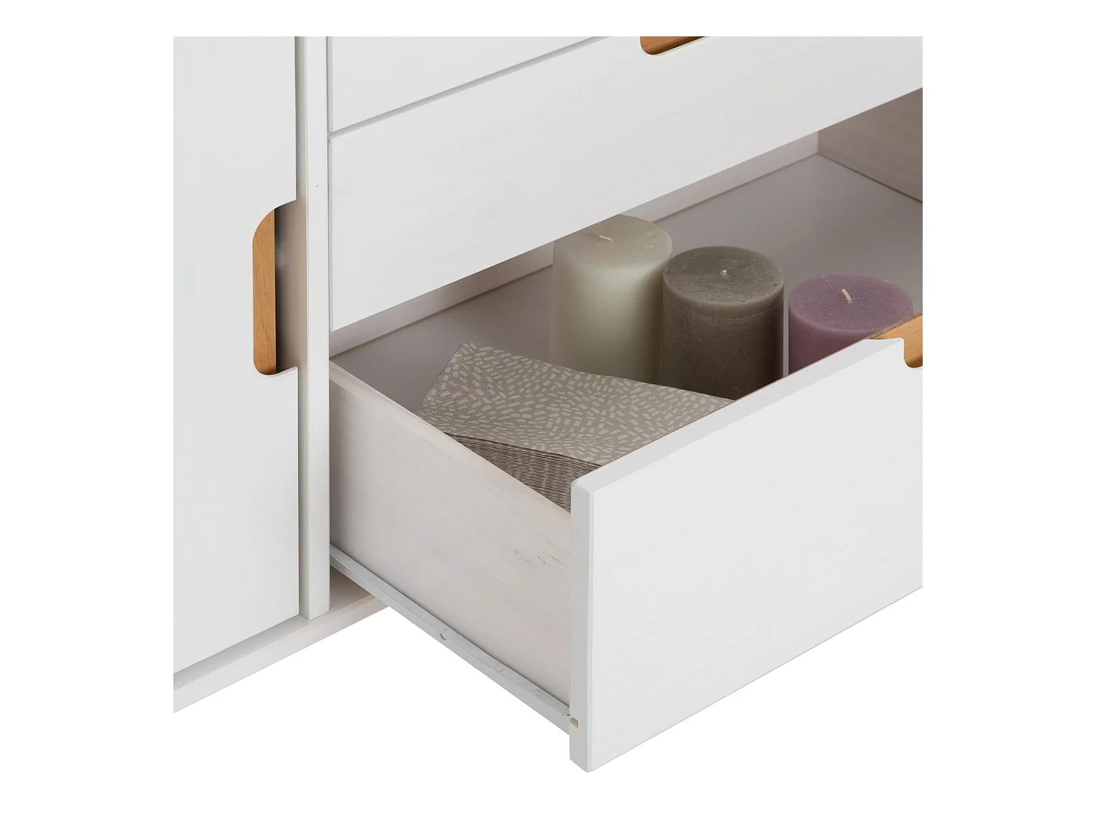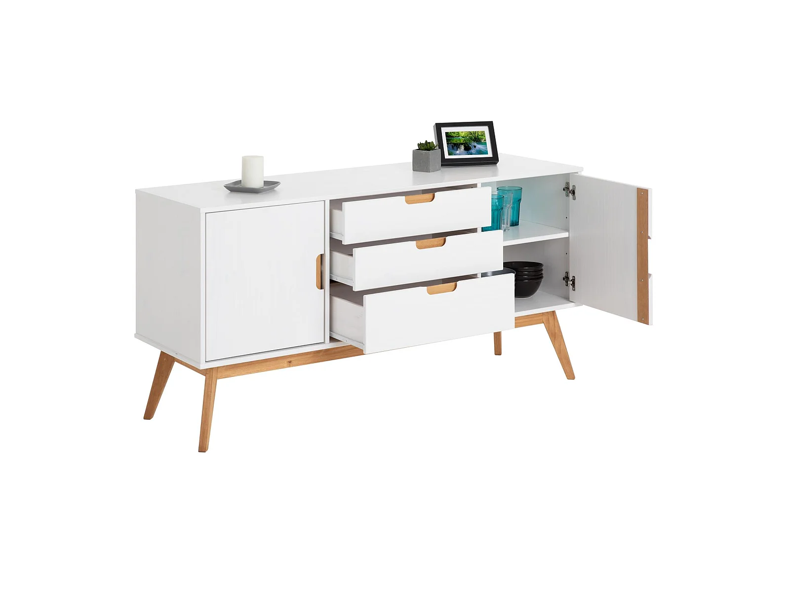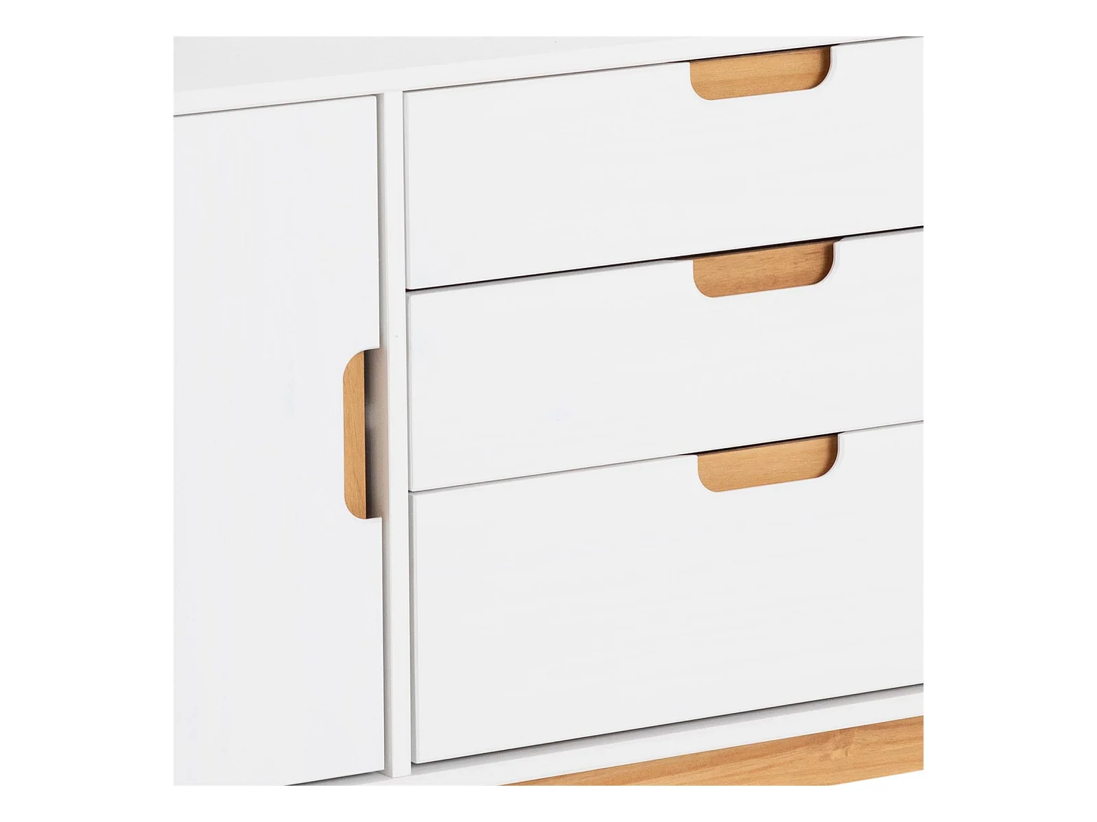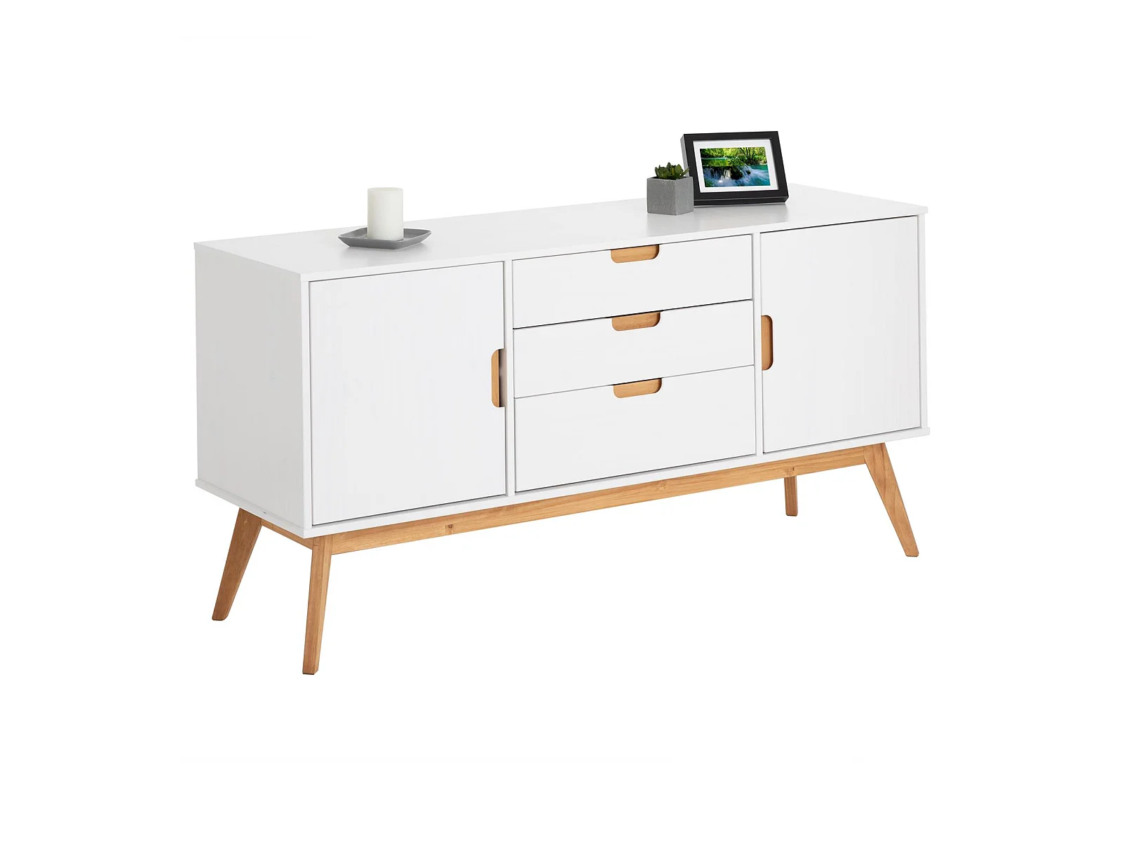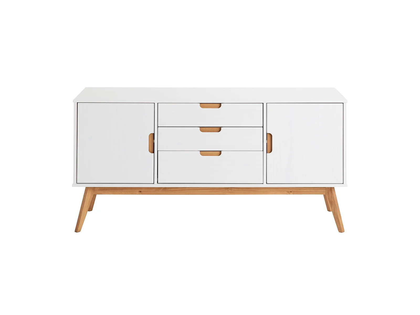 Buffet TIVOLI design vintage scandinave nordique commode bahut vaisselier avec 3 tiroirs 2 portes, en pin massif lasuré blanc