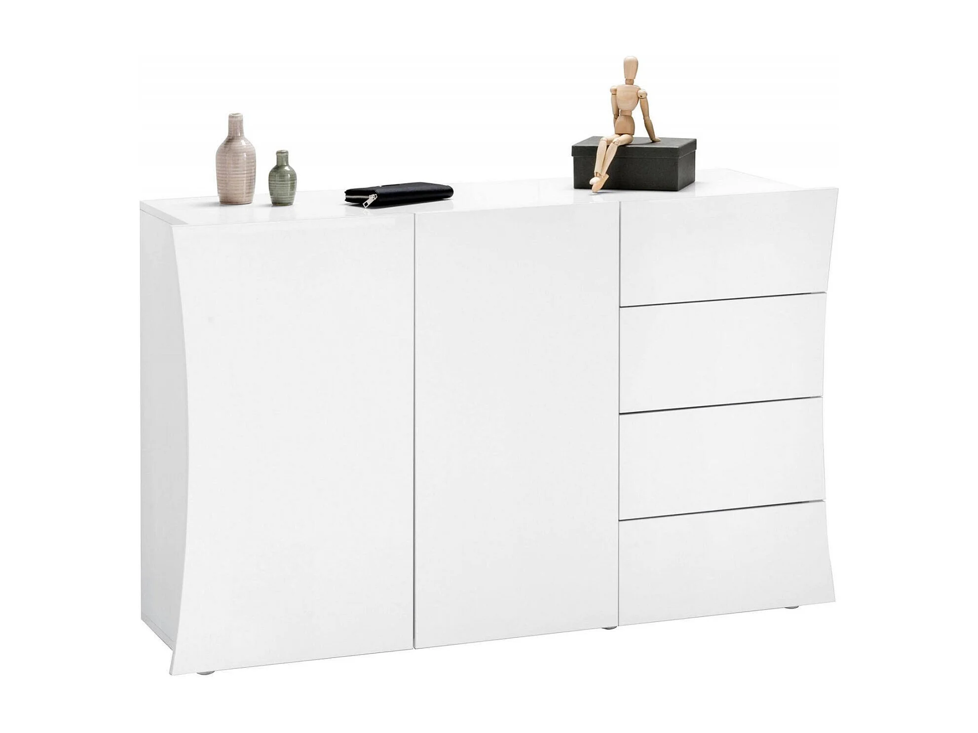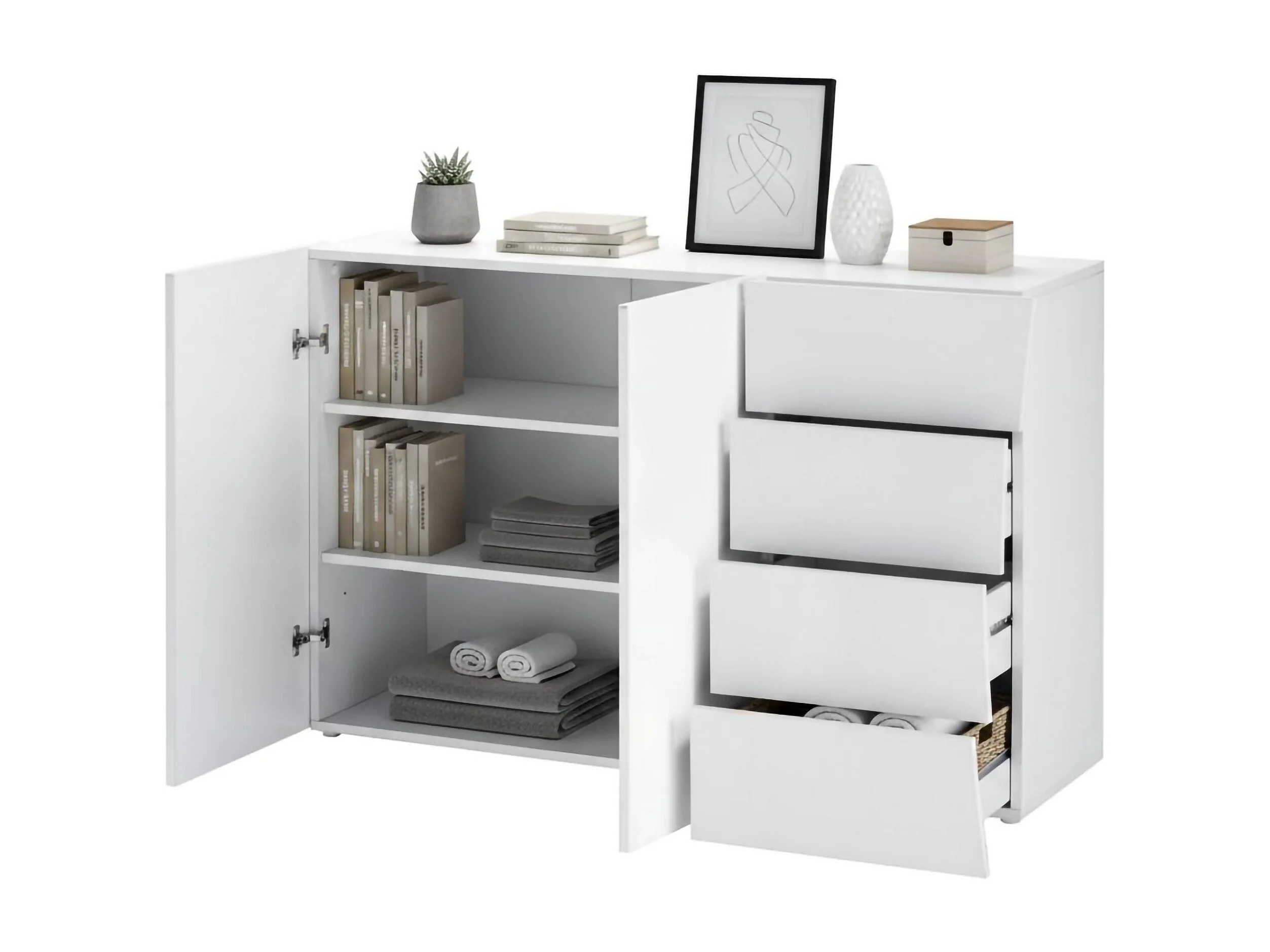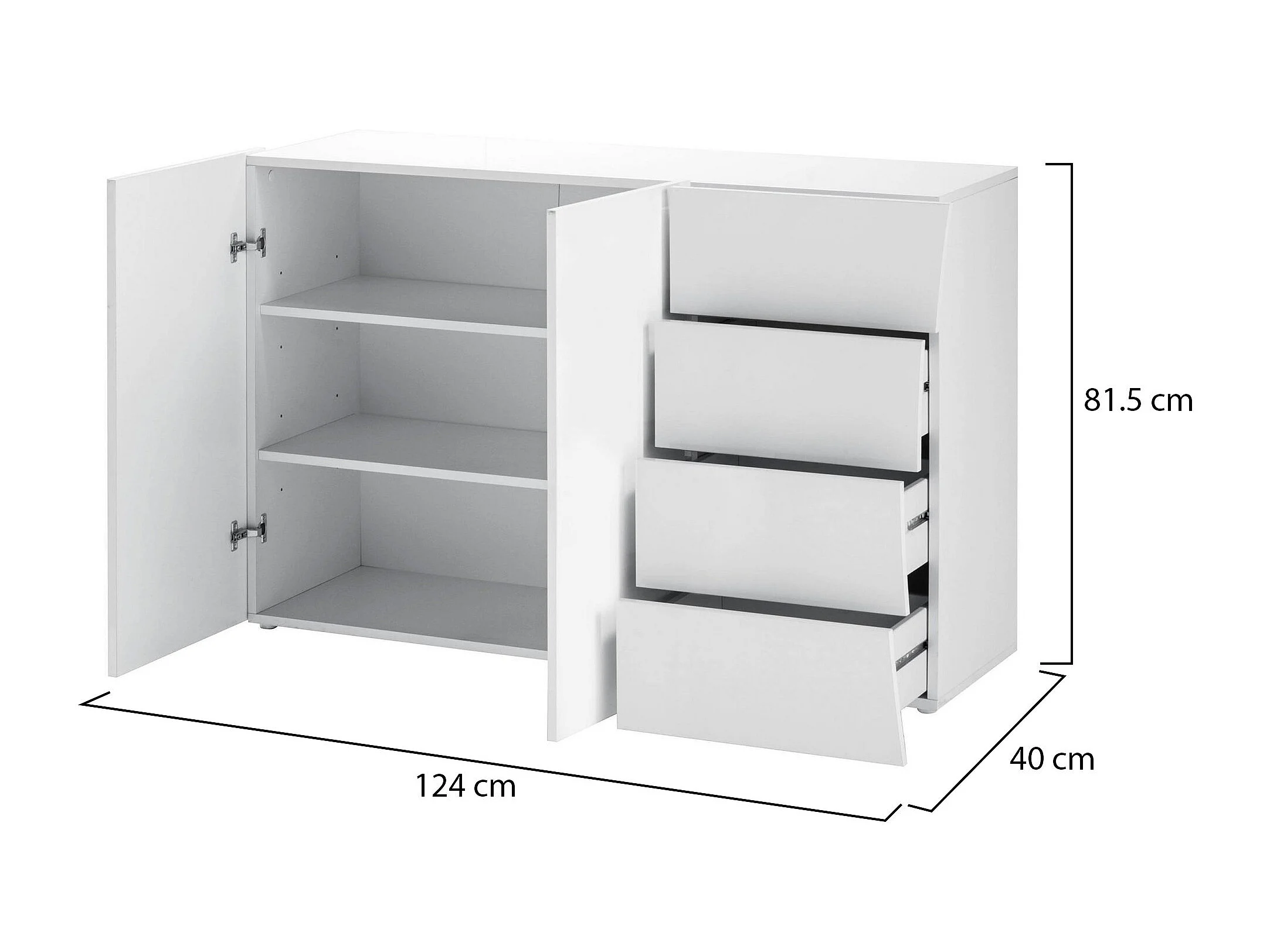 Buffet Tommaso, Buffet de cuisine avec 2 portes et 4 tiroirs, Buffet de salon, 100% Made in Italy, 124x40h82 cm, Blanc brillant