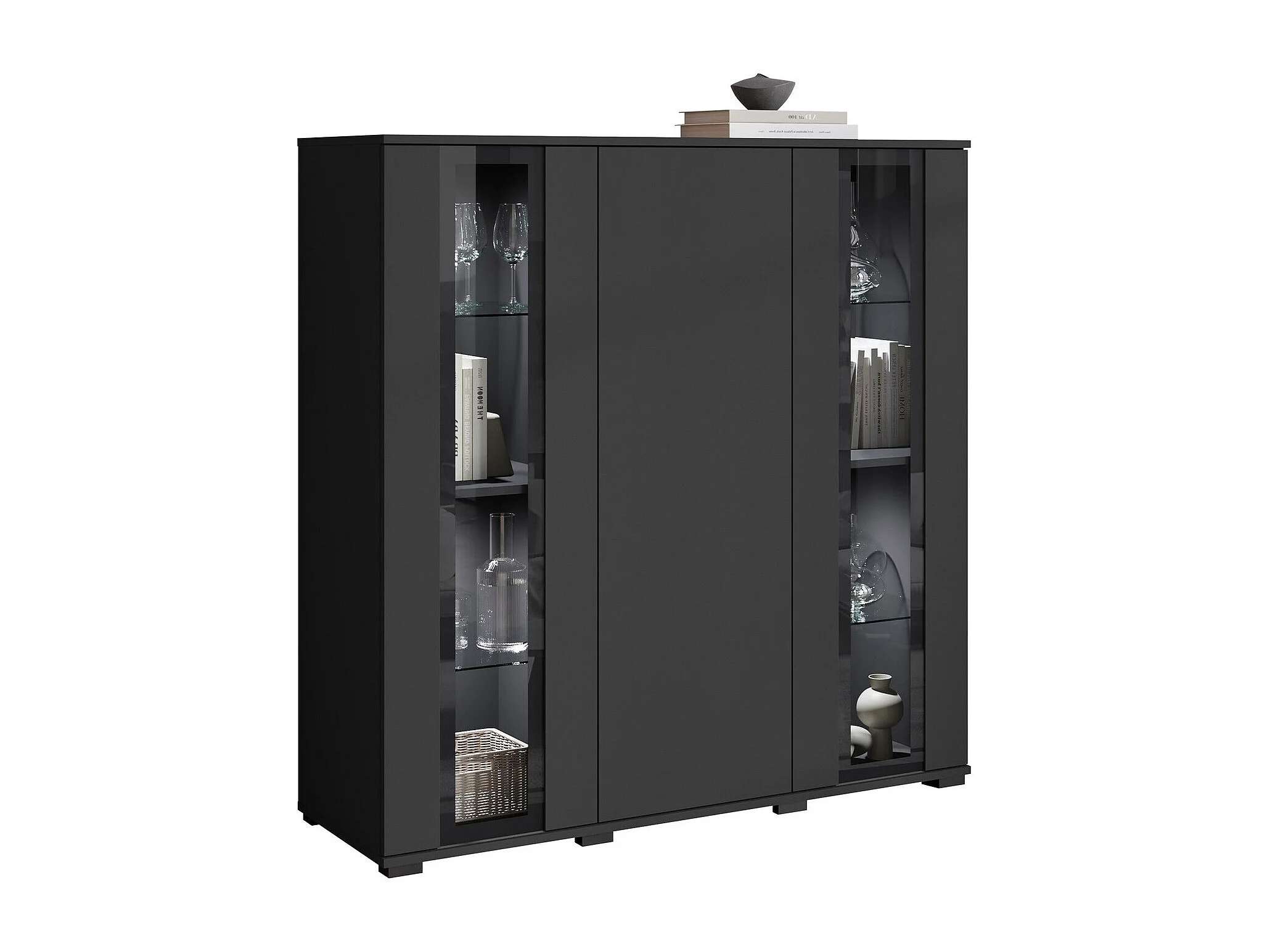 Buffet Torcame 100, Noir, 122x120x40cm, Verre trempé|Stratifié