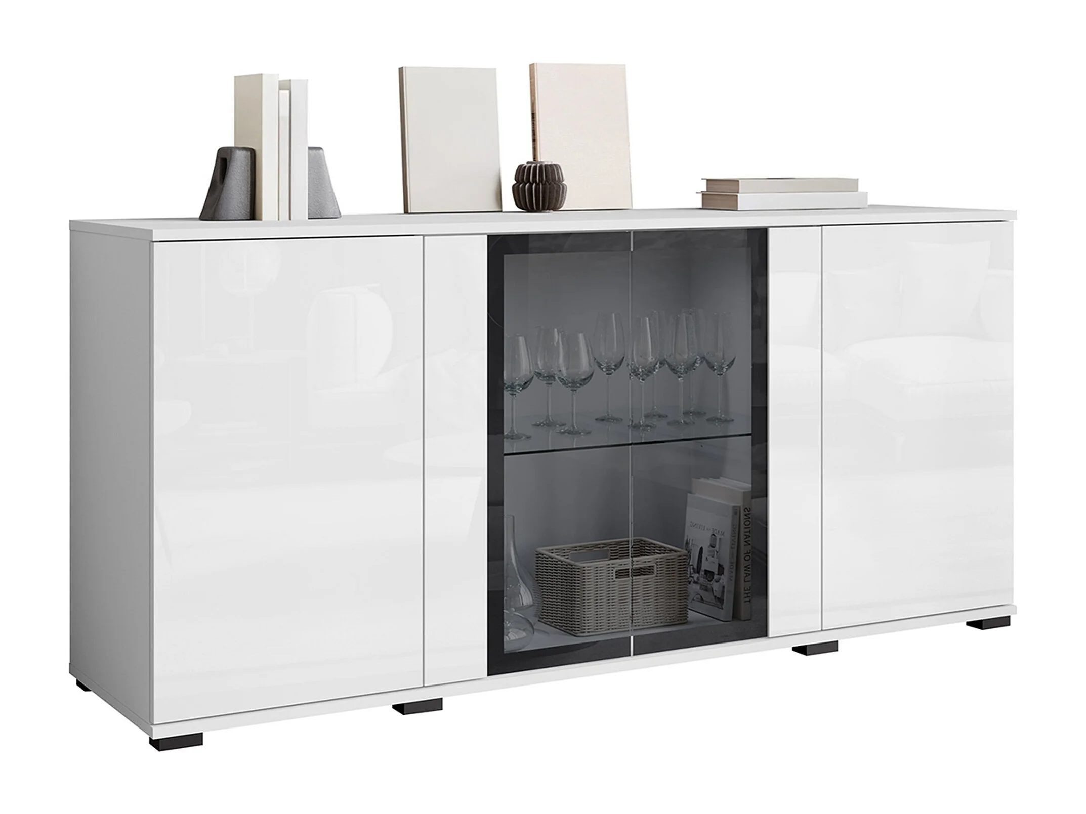 Buffet Torcame 102, Blanc brillant|Blanc, 70x150x40cm, Verre trempé|Stratifié