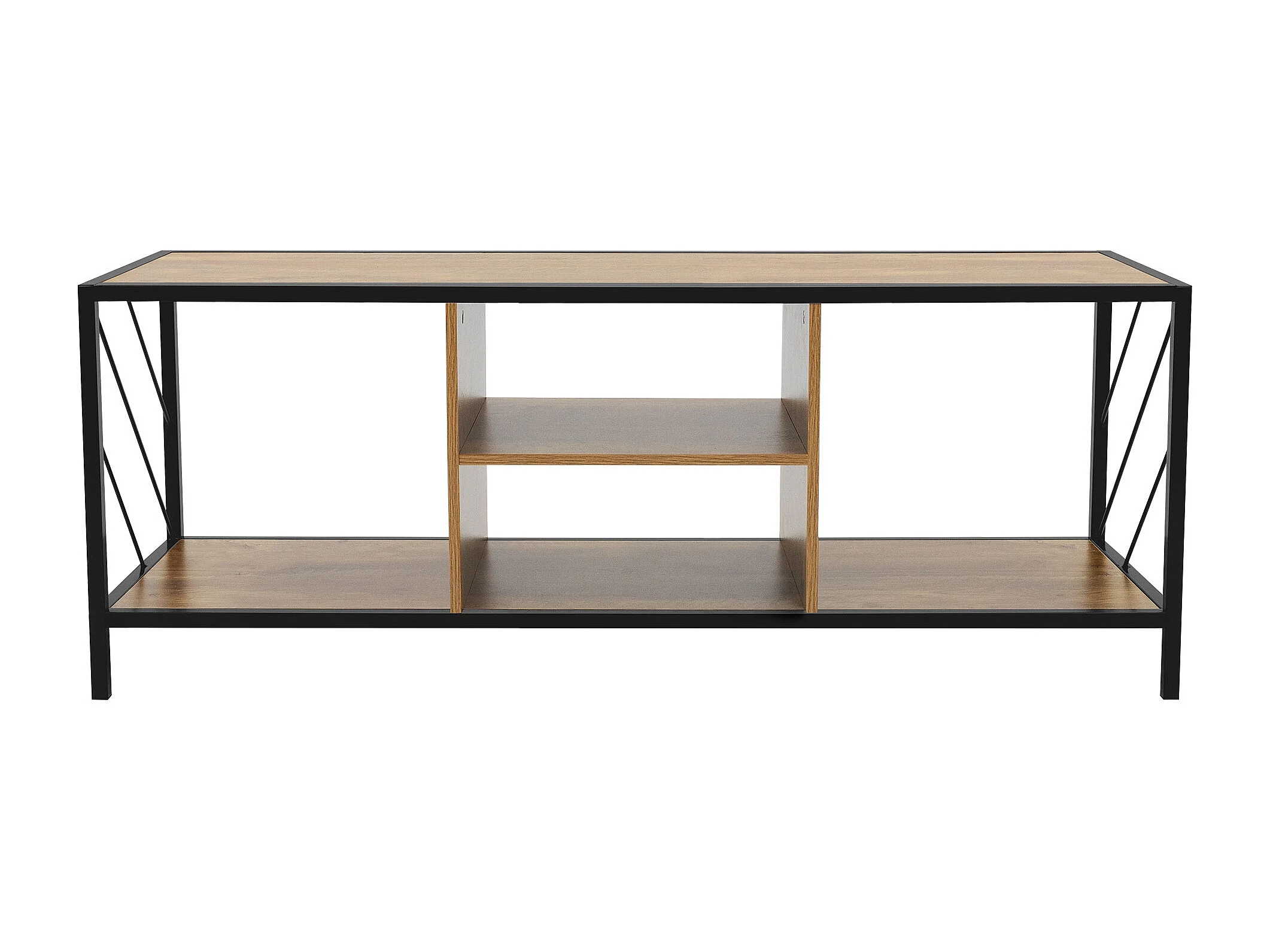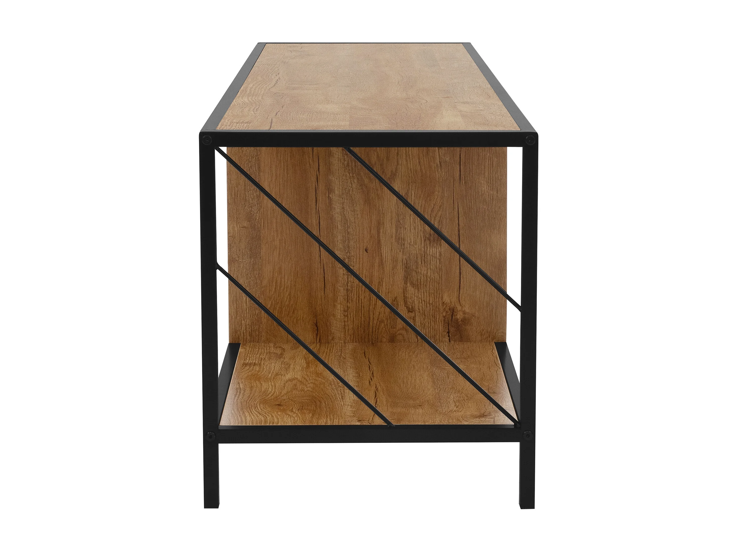 Buffet TV en bois brun chêne rustique 120x40x46 cm 4 compartiments commode salon