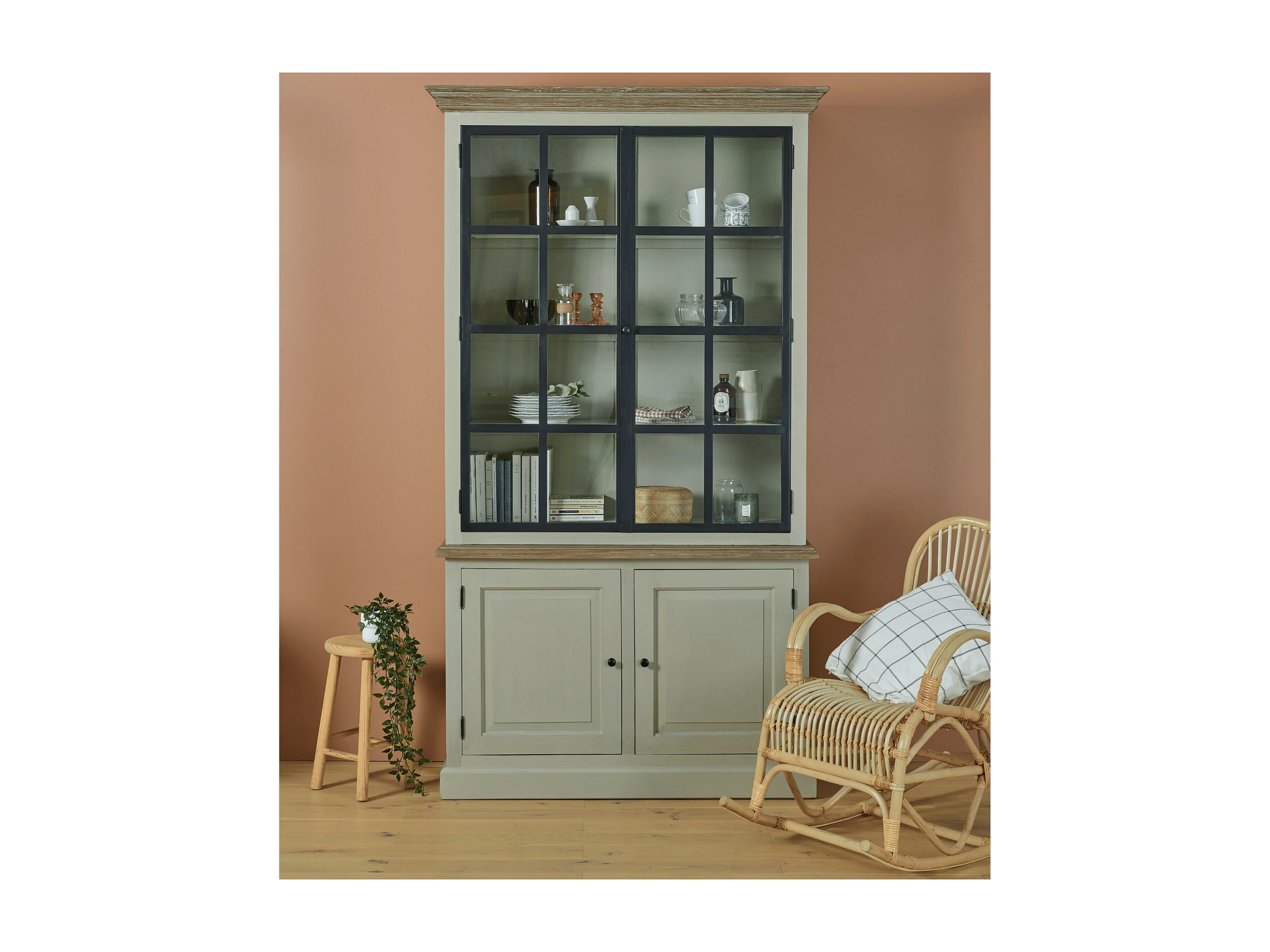 Buffet vaisselier en bois 2 portes vitrées éclairage LED - VILLAS