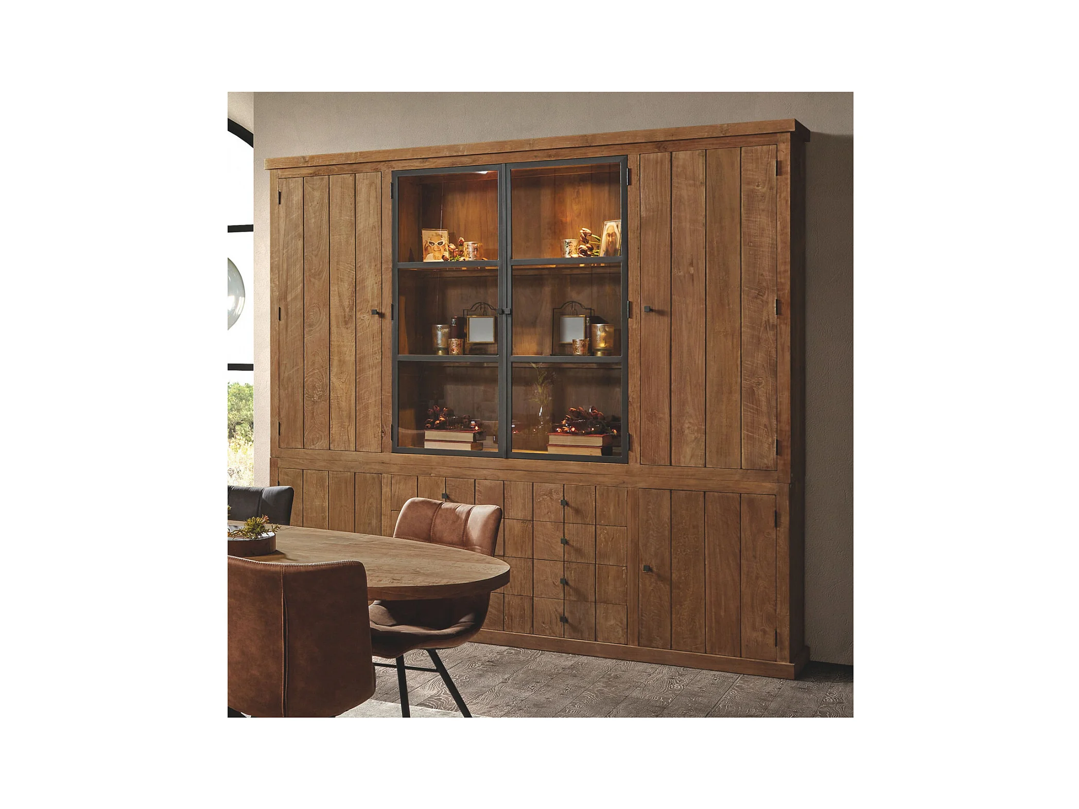 Buffet vaisselier en bois recyclé 4 portes 8 tiroirs éclairage LED - LINAS