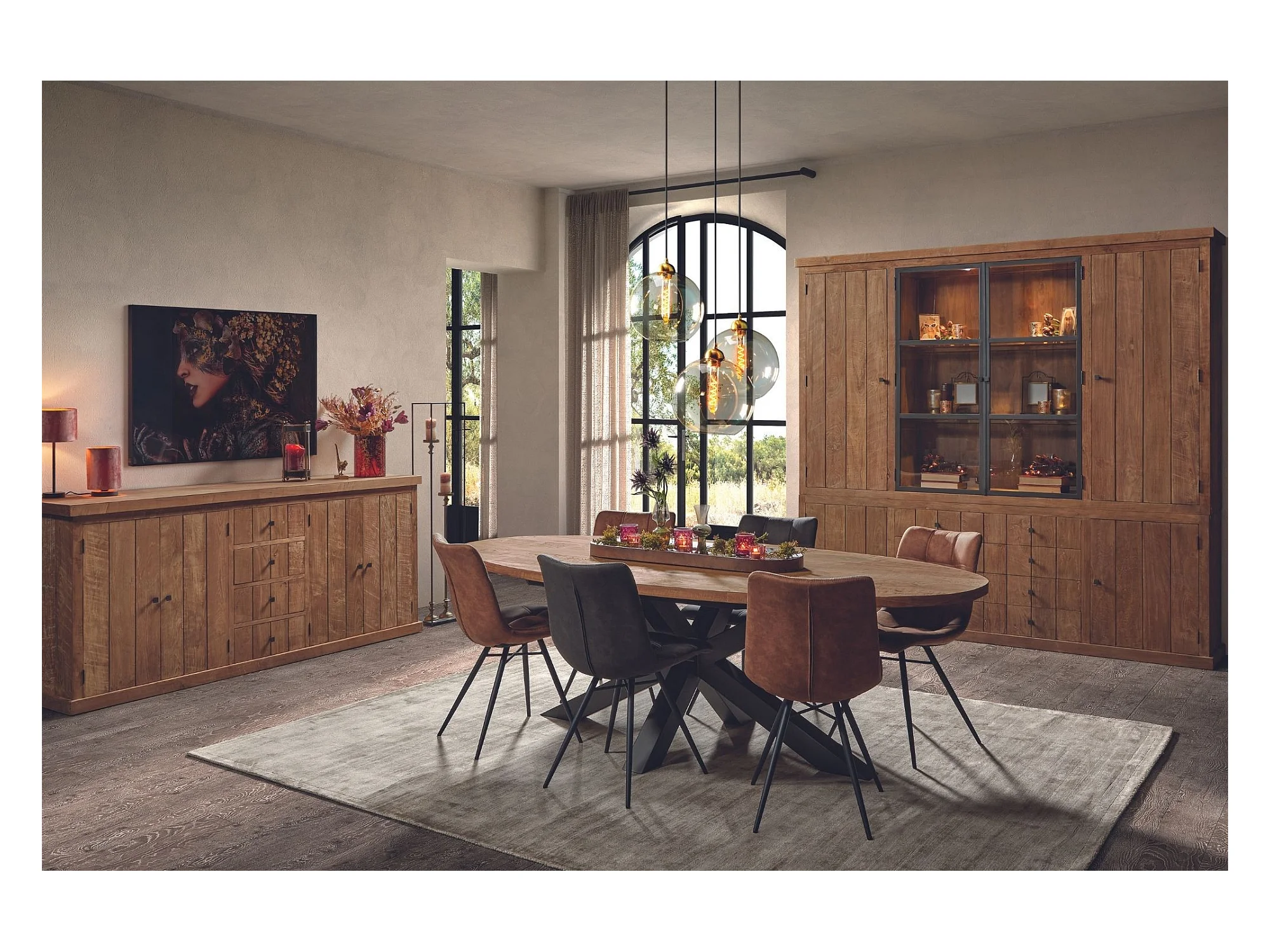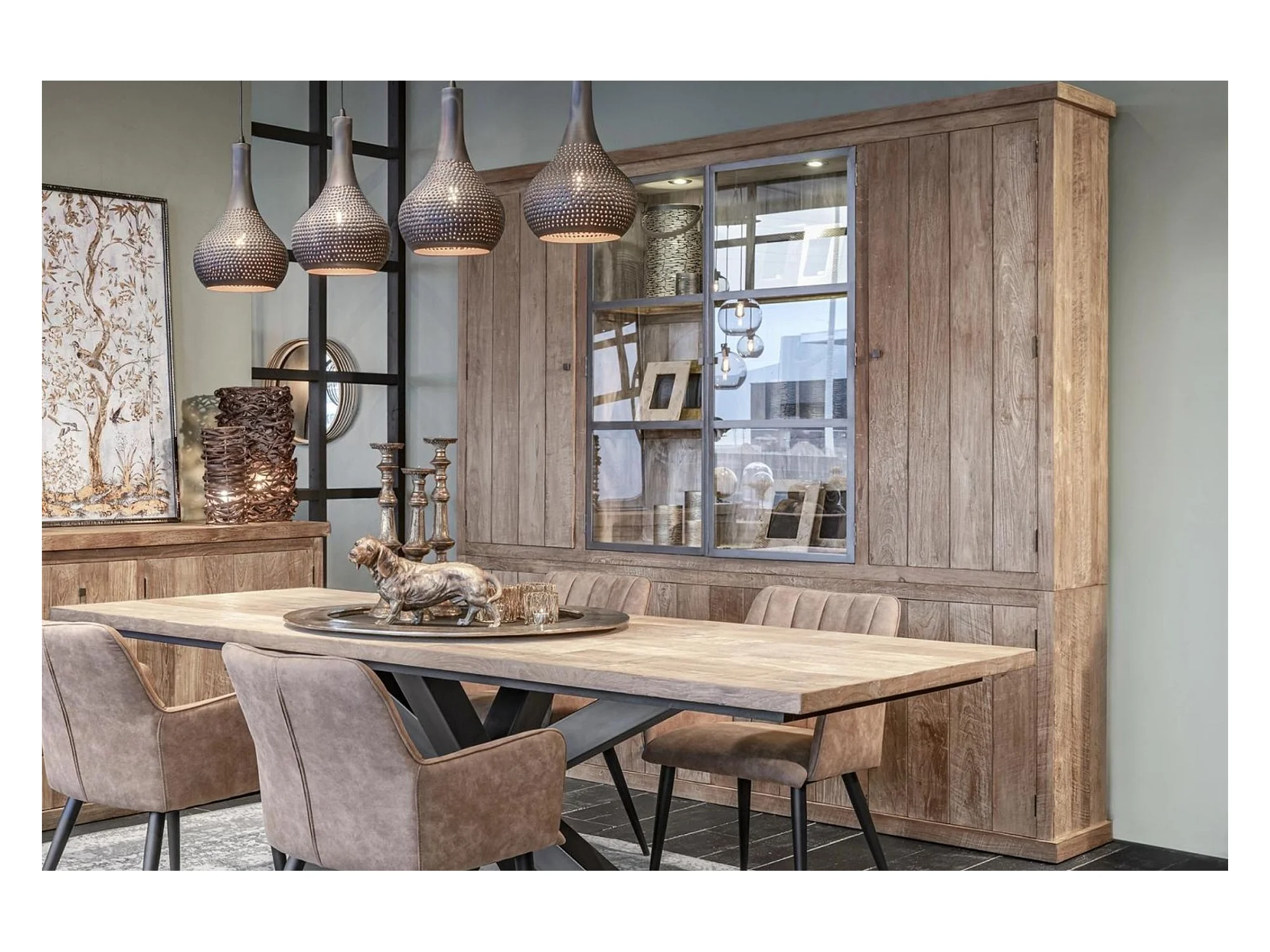 Buffet vaisselier industriel en bois et métal 4 portes - VICTORIA