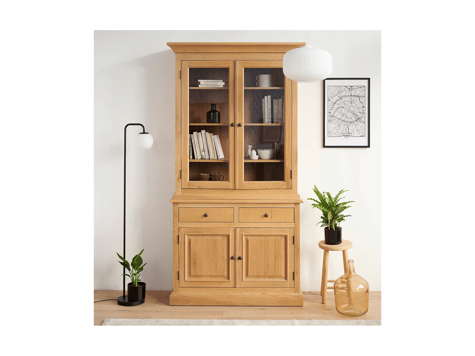 Buffet vaisselier en chêne 2 portes vitrées 2 tiroirs 2 portes bois - VICTORIA