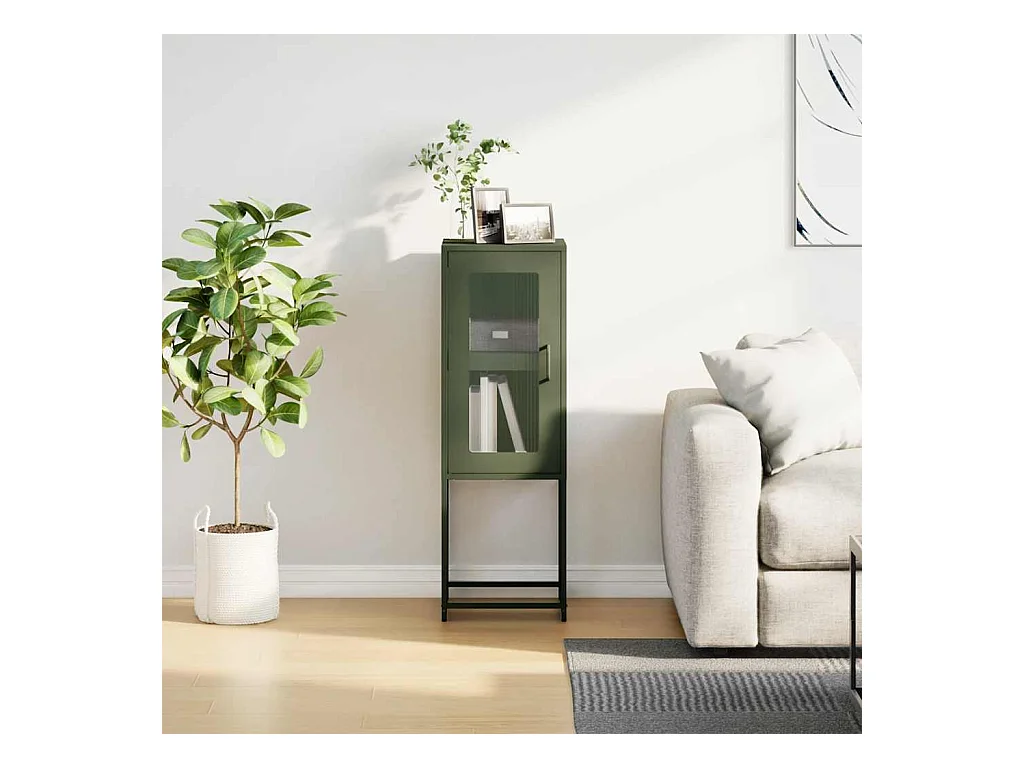 Buffet haut vert olive 36x39x123 cm acier laminé à froid