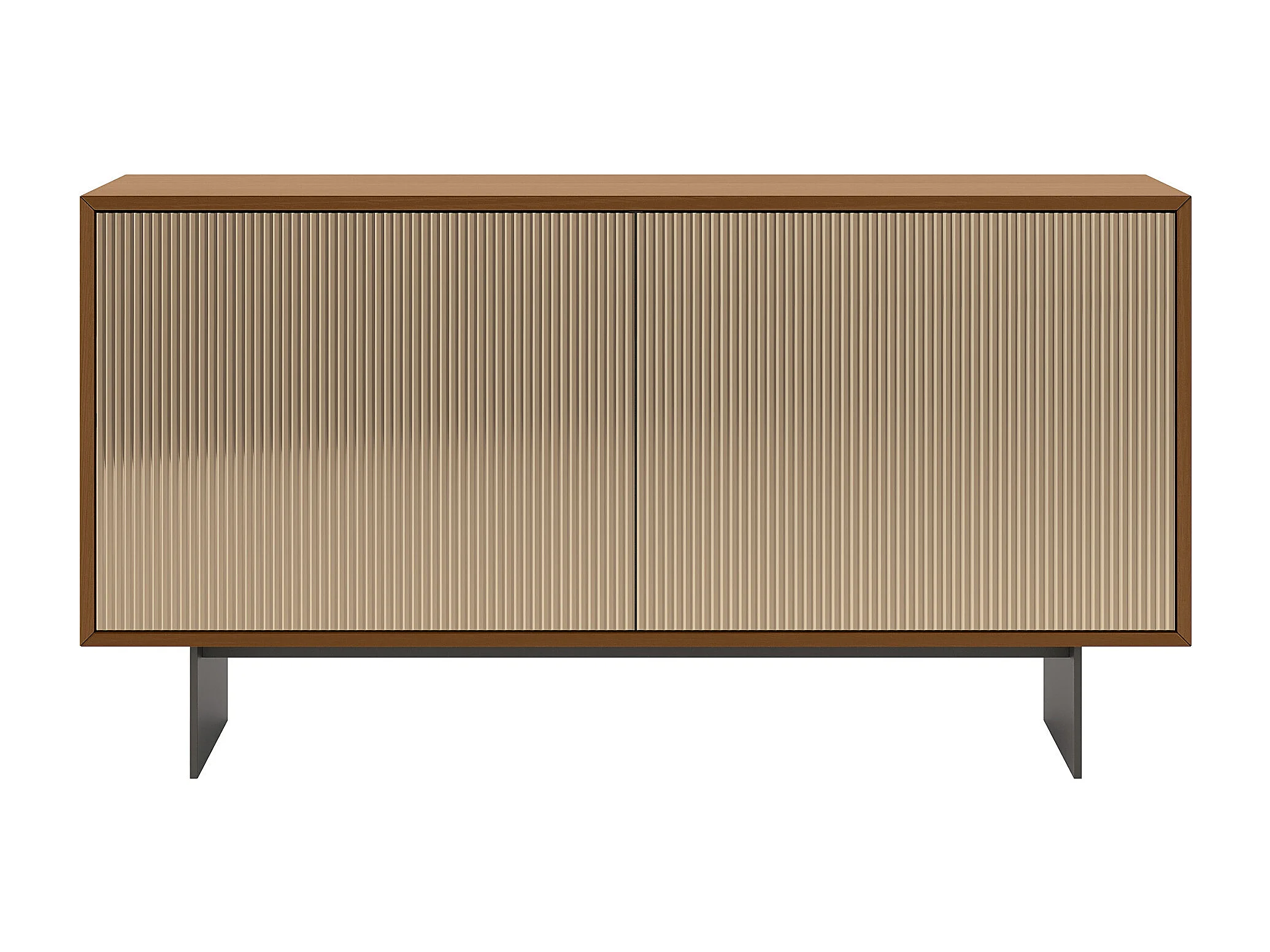 Buffet vesira cannete 2 portes - structure en noyer canaletto, gris anthracite, porte miroir bronzée
