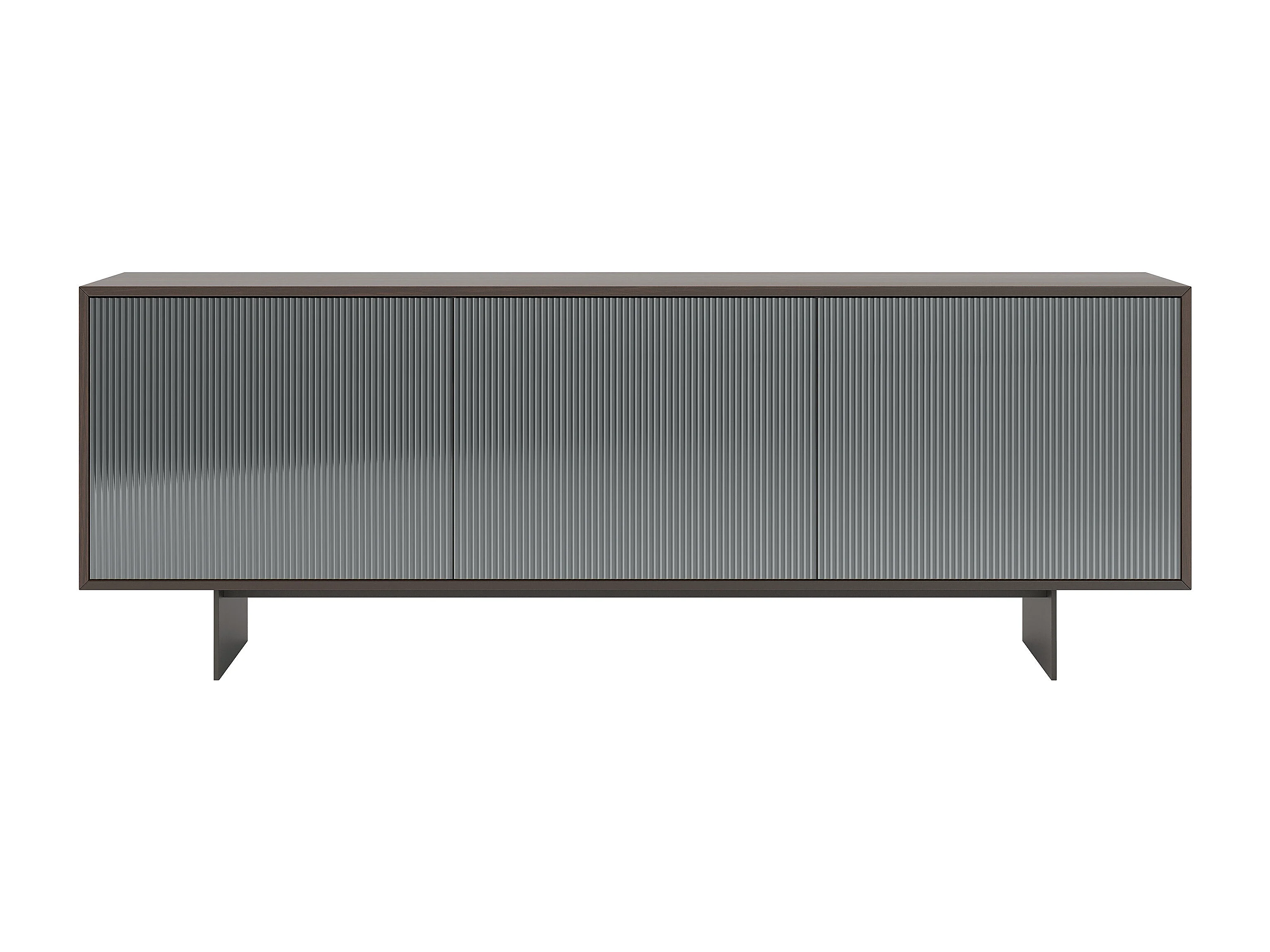 Buffet vesira cannete 3 portes - structure en chêne foncé, gris anthracite, porte miroir fumé