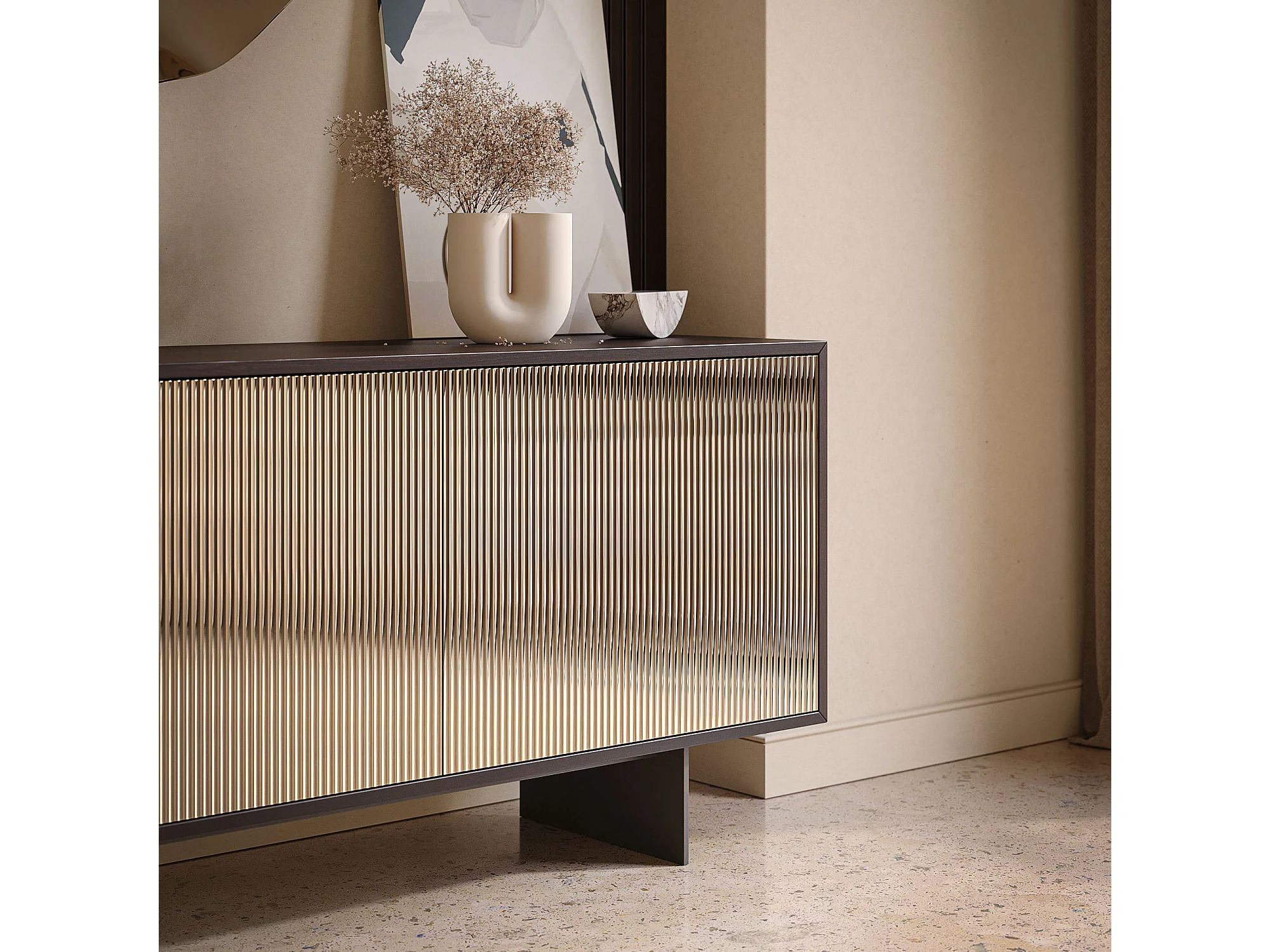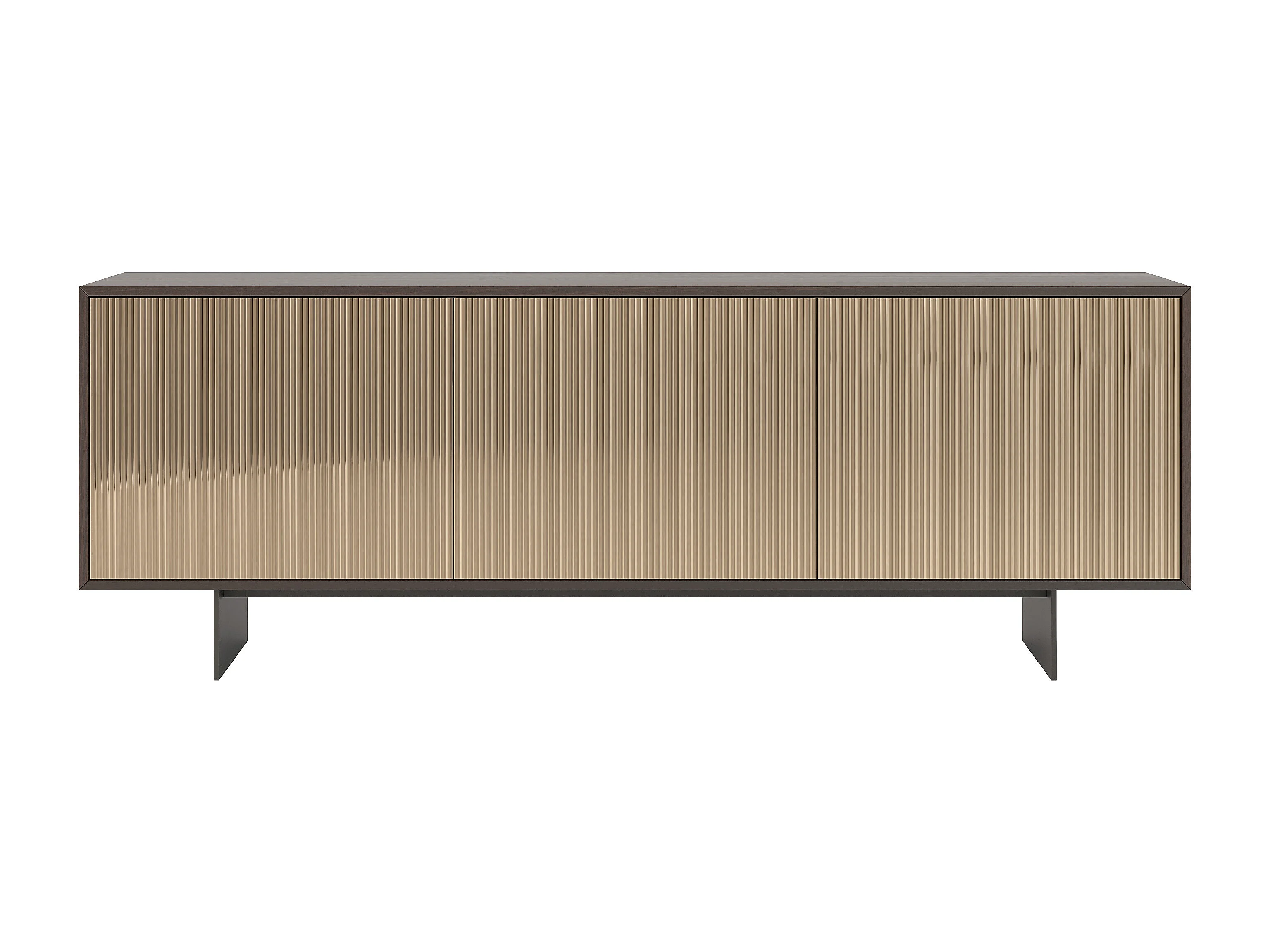 Buffet vesira cannete 3 portes - structure en chêne foncé, gris charbon, porte miroir bronzée