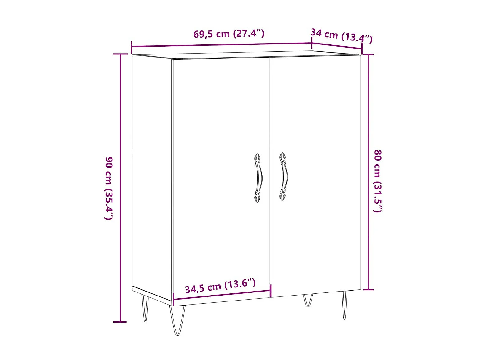 Buffet chêne sonoma 69,5x34x90 cm bois d'ingénierie