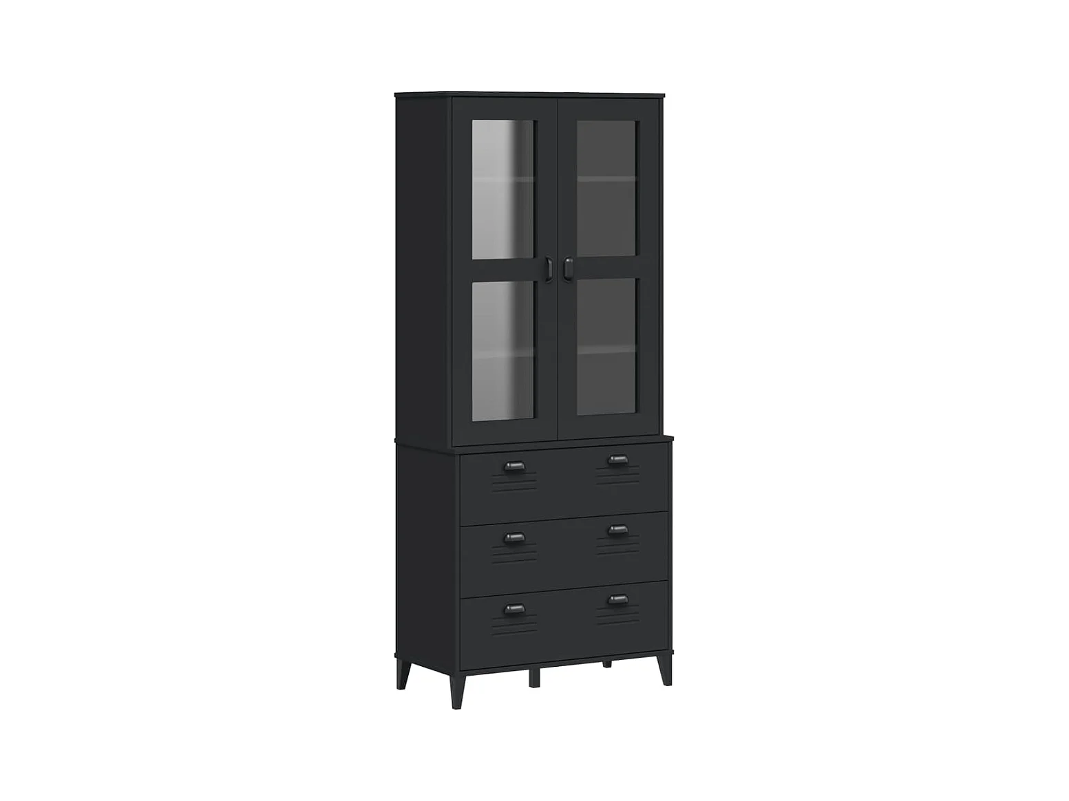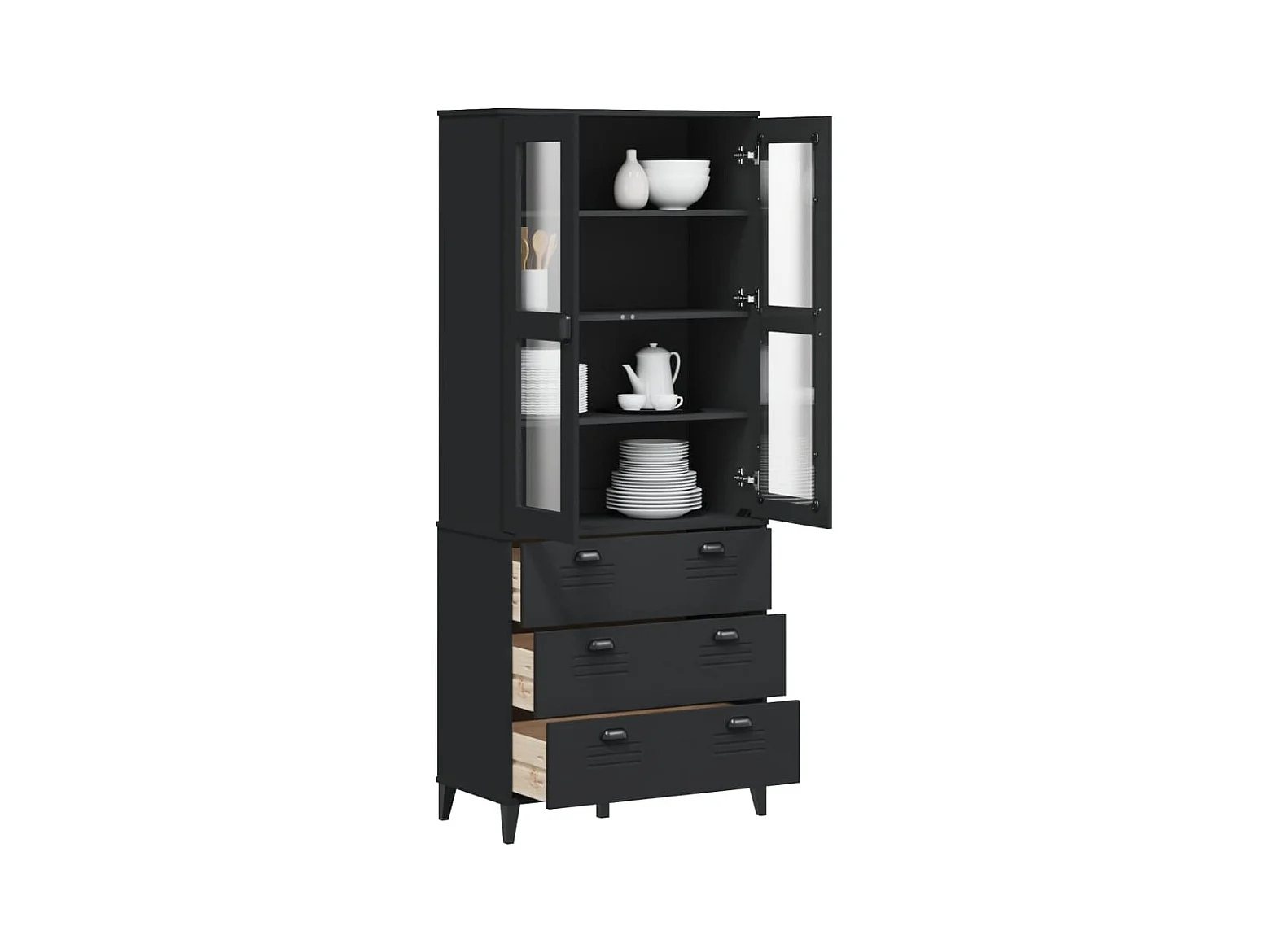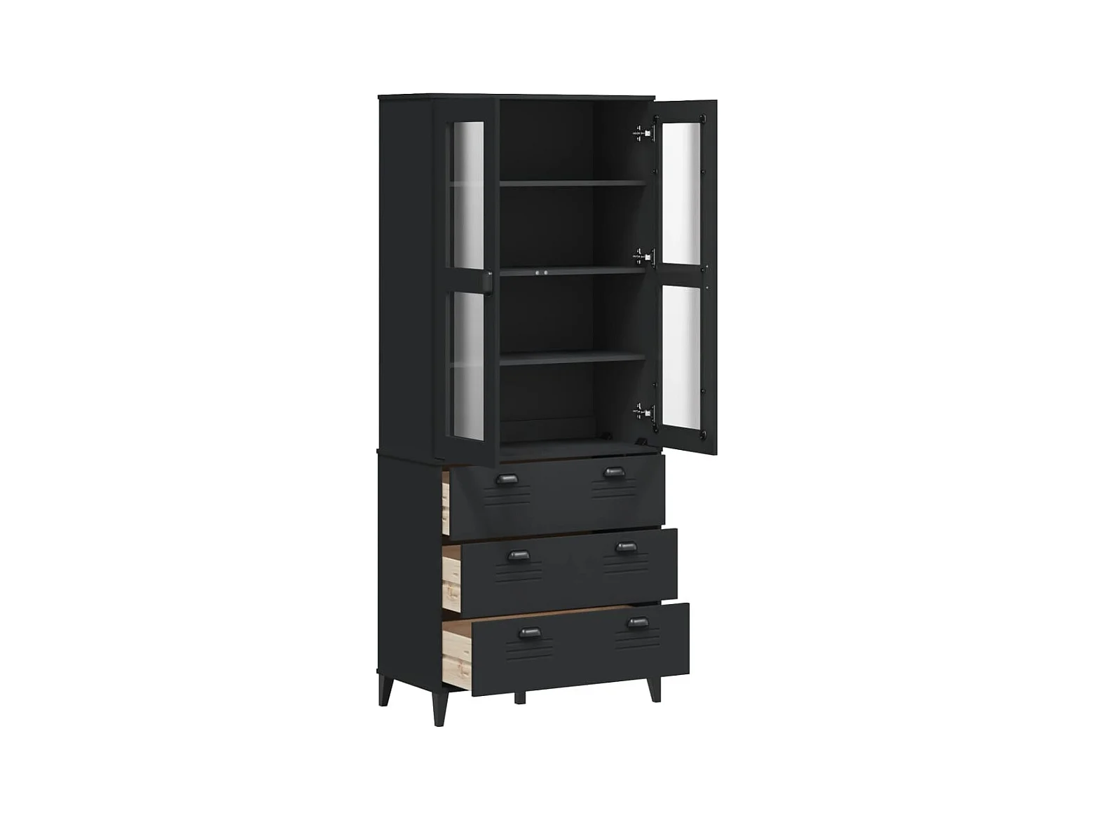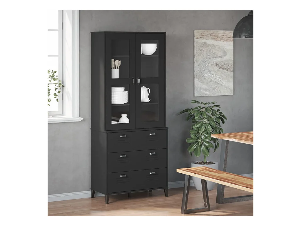 Buffet VIKEN noir 80x40x190 cm bois massif de pin