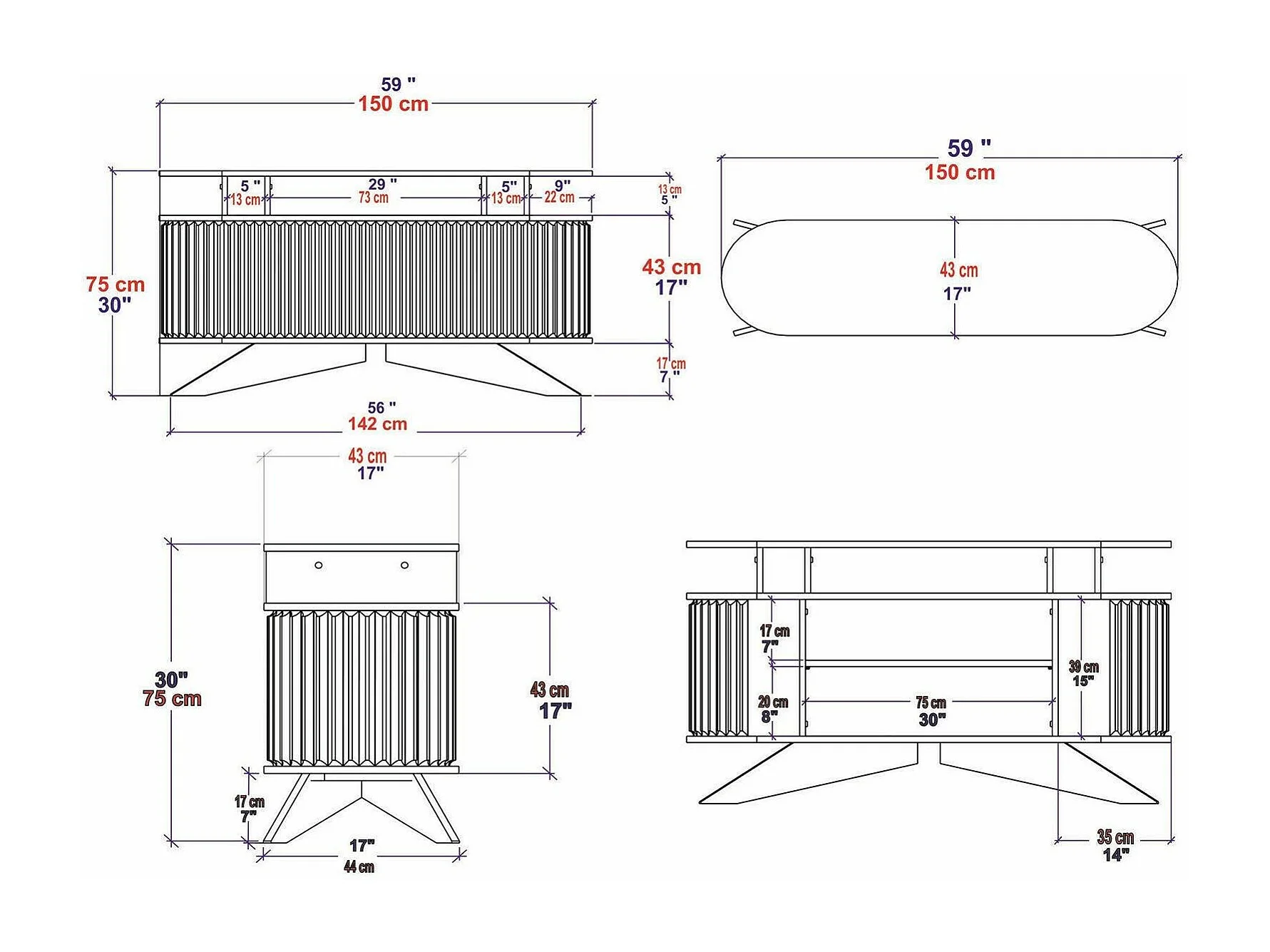 Buffet Zaurak, Buffet du salon, Commode de salon, Garde-manger de cuisine, 150x43h75 cm, Chêne et Blanc