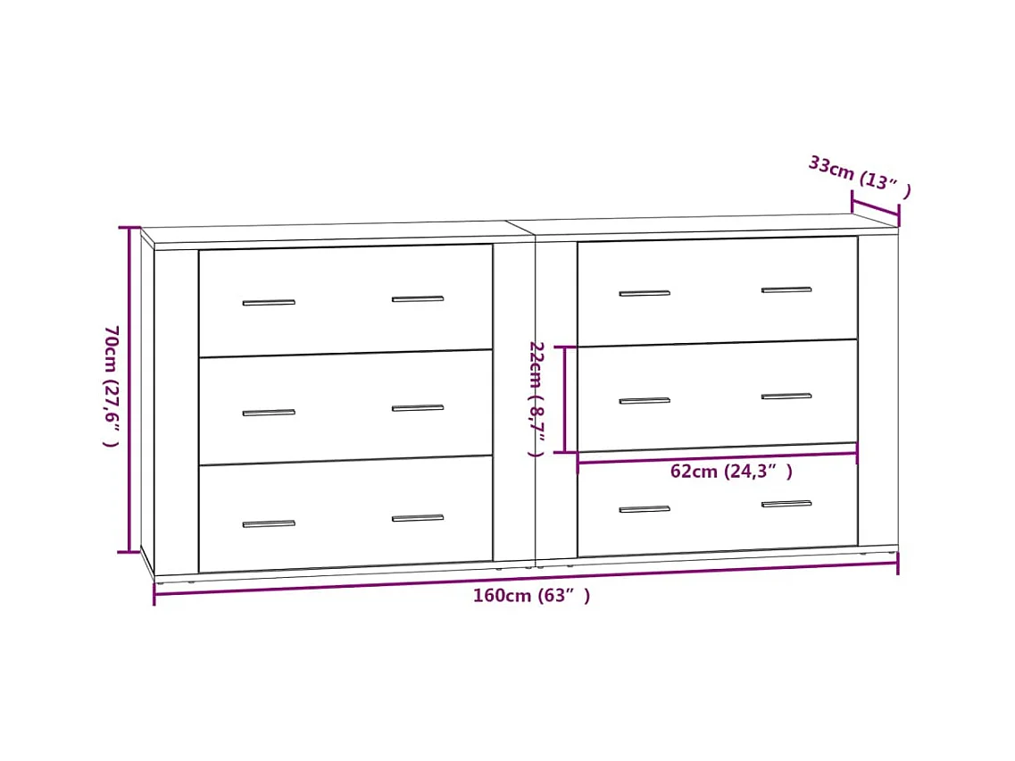 Buffets 2 pcs chêne fumé bois d'ingénierie