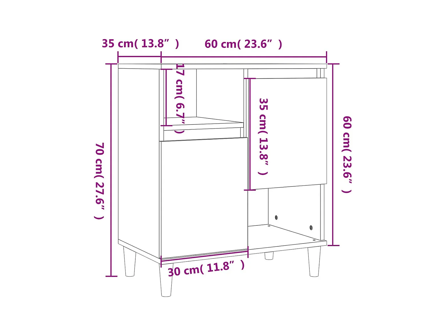 Buffets 3 pcs chêne fumé 60x35x70 bois d'ingénierie