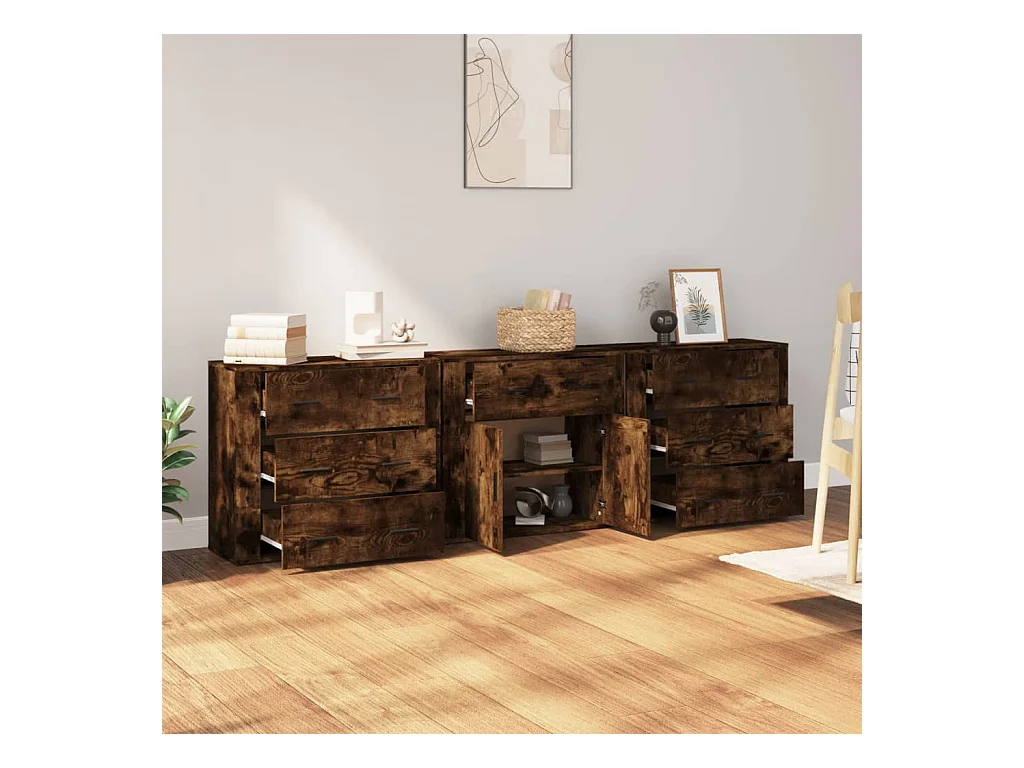 Buffets 3 pcs Chêne fumé Bois d'ingénierie