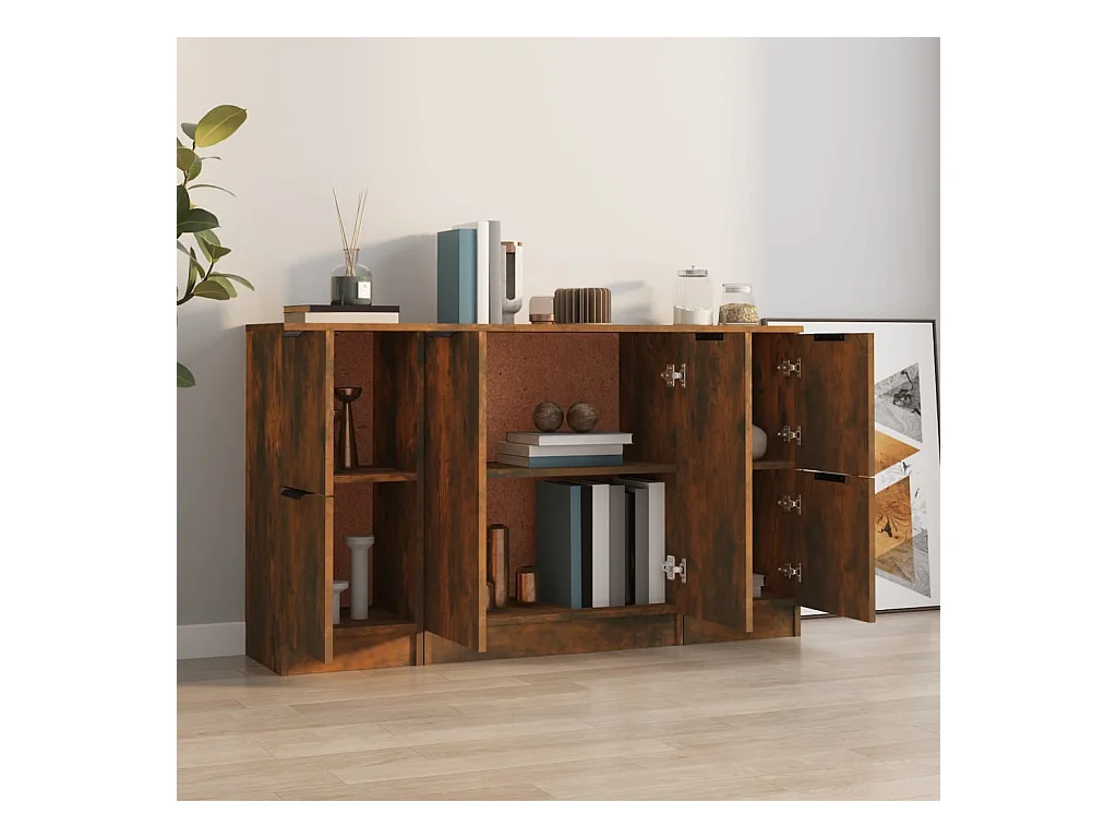 Buffets 3 pcs Chêne fumé Bois d'ingénierie