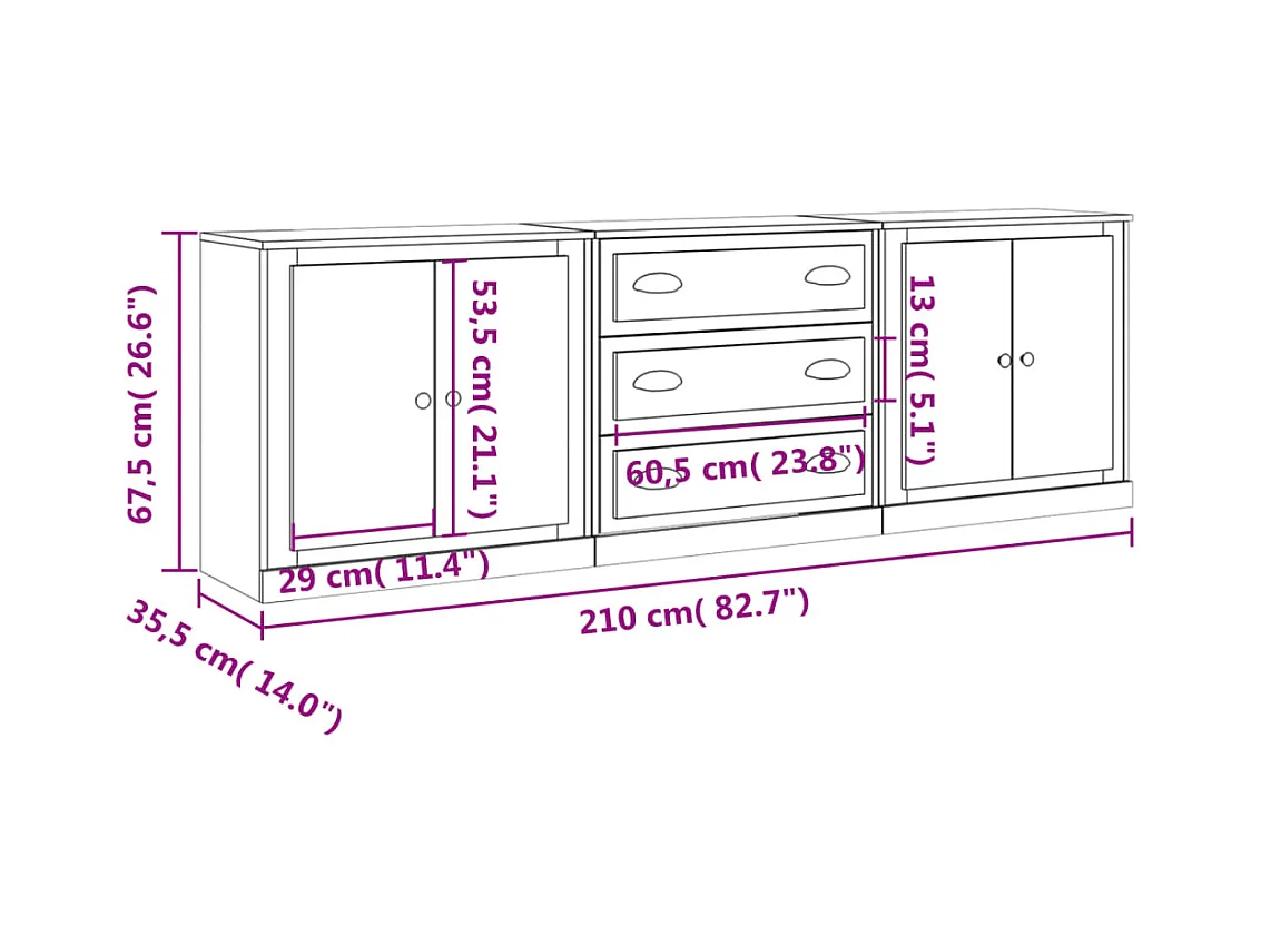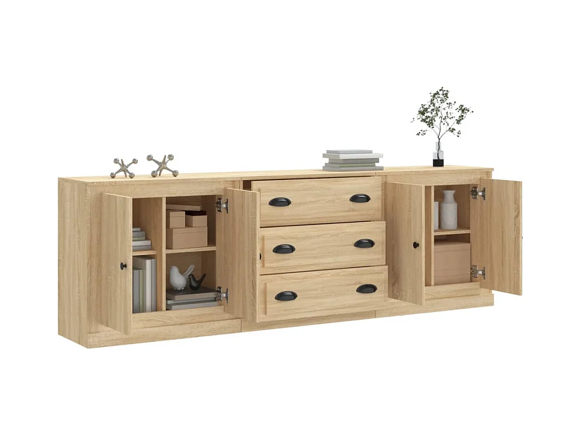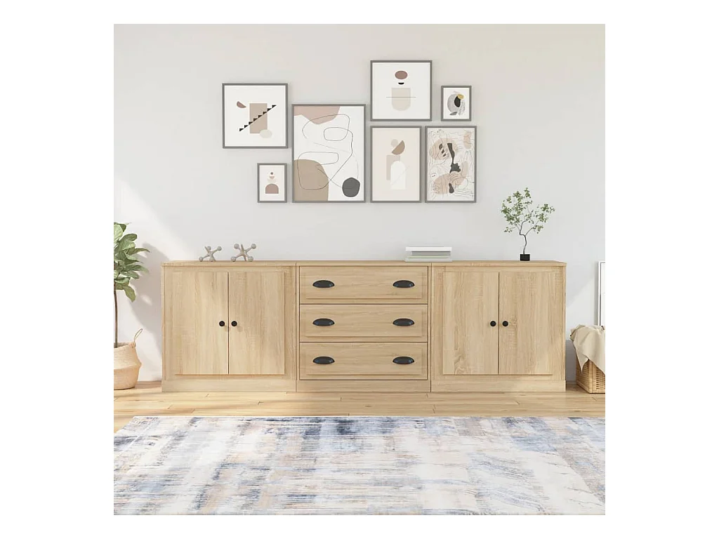Buffets 3 pcs Chêne sonoma Bois d'ingénierie