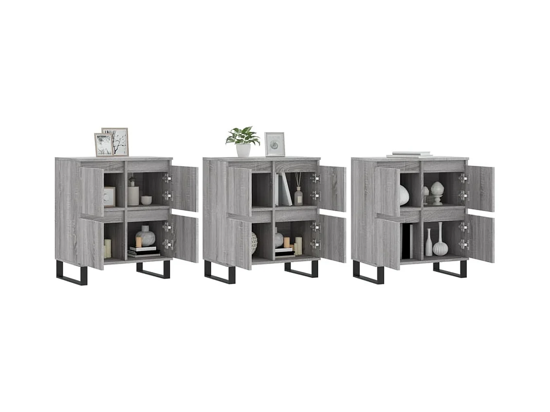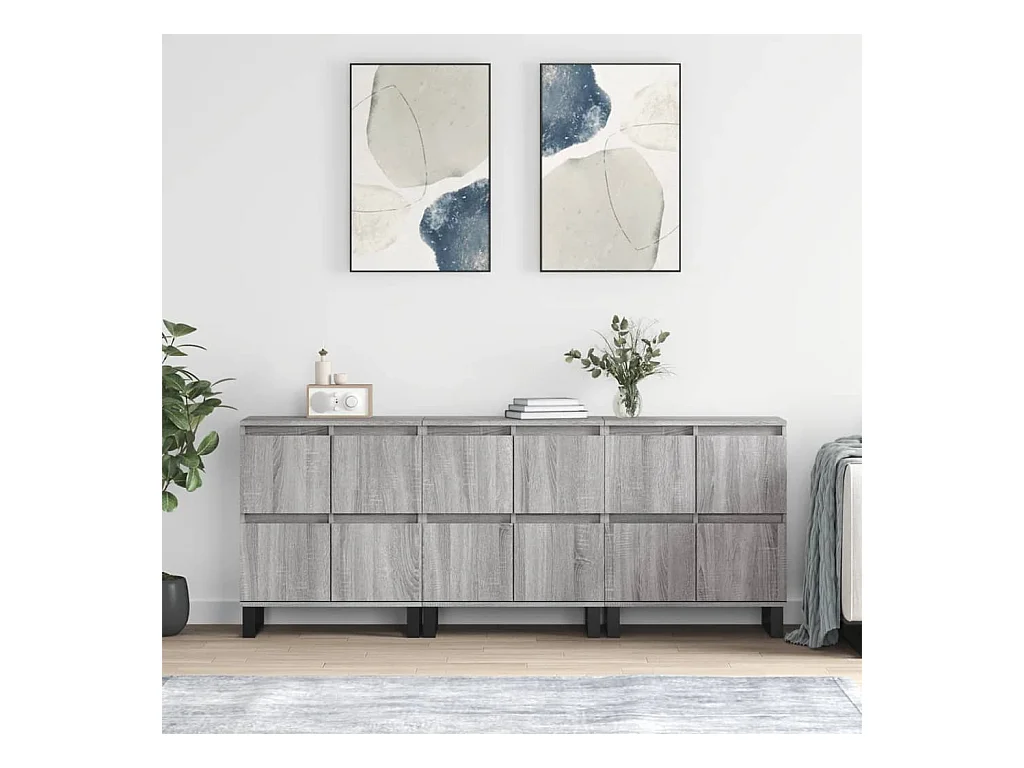 Buffets 3 pcs Sonoma gris Bois d'ingénierie