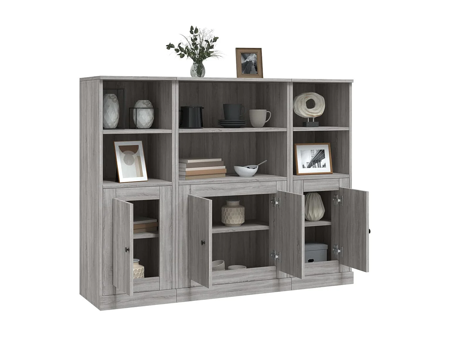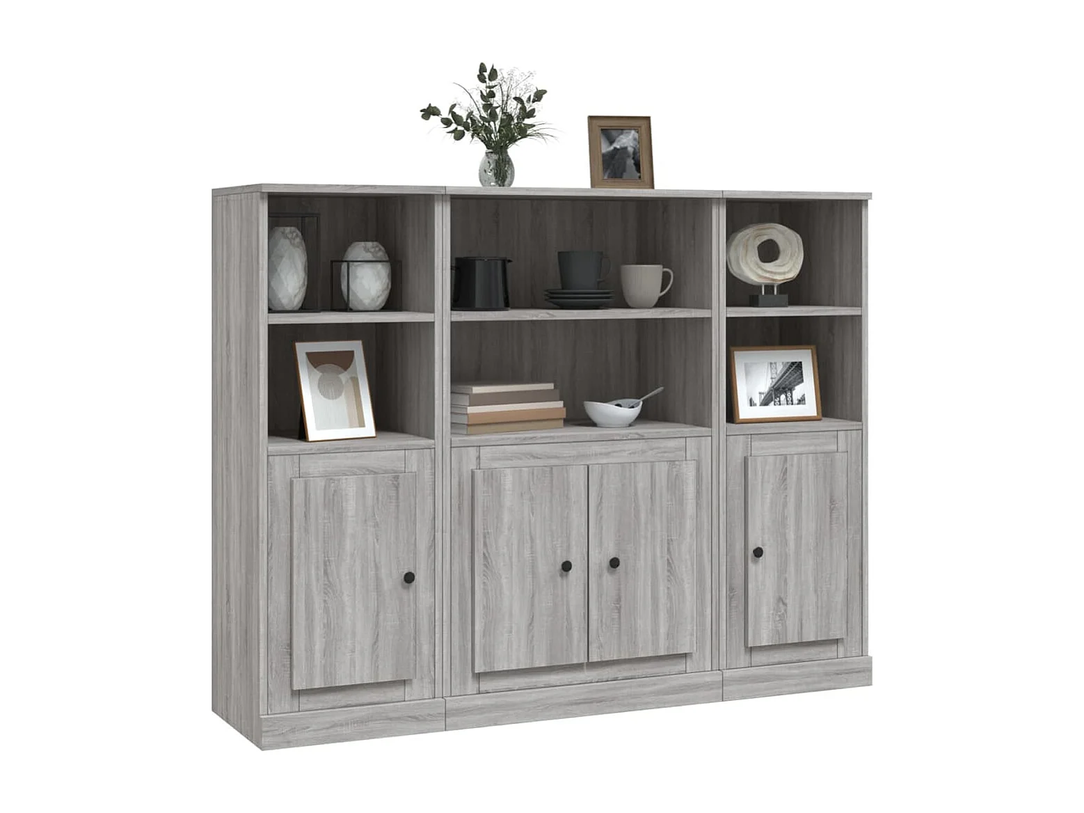 Buffets 3 pcs sonoma gris bois d'ingénierie