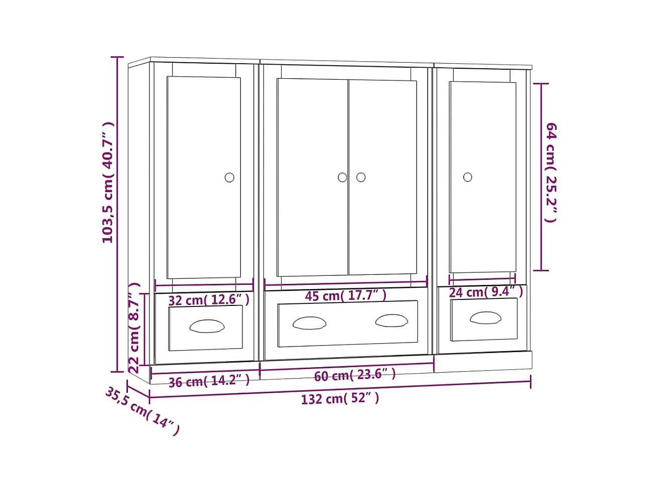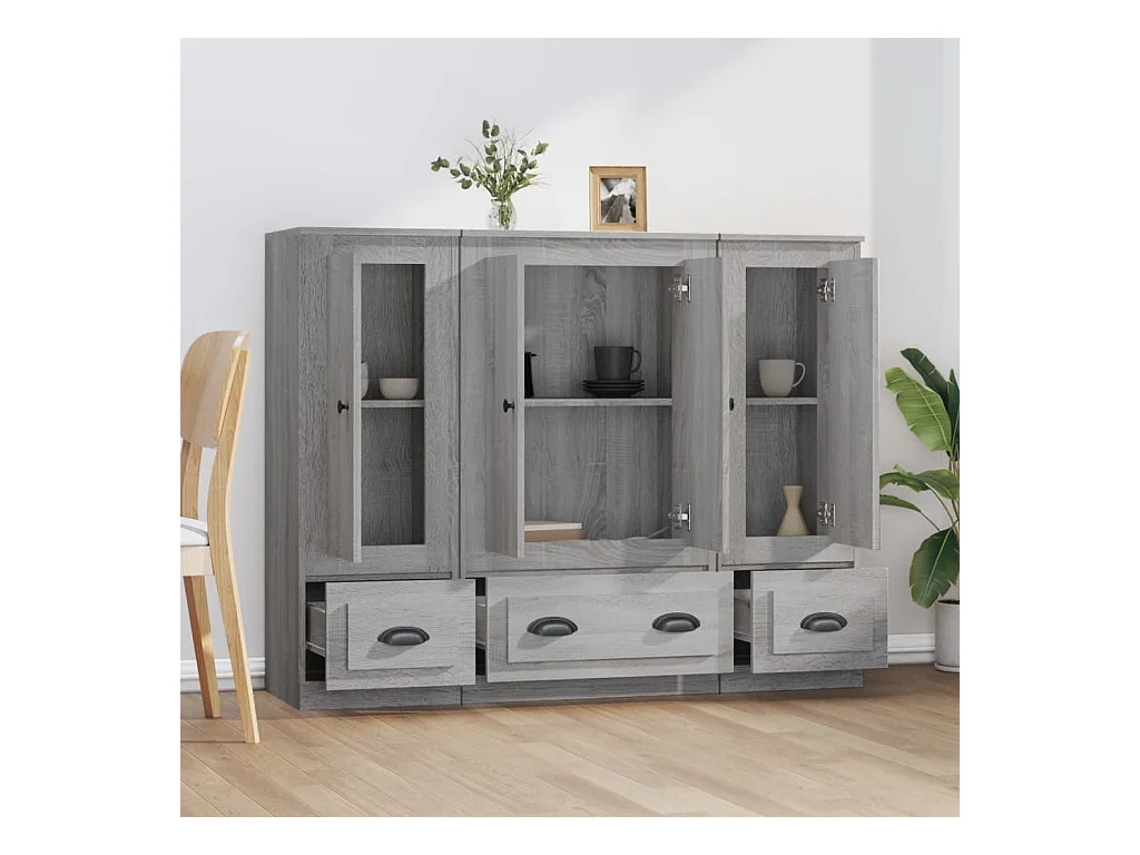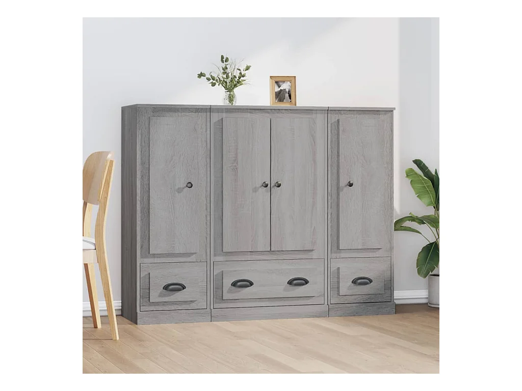 Buffets 3 pcs sonoma gris bois d'ingénierie