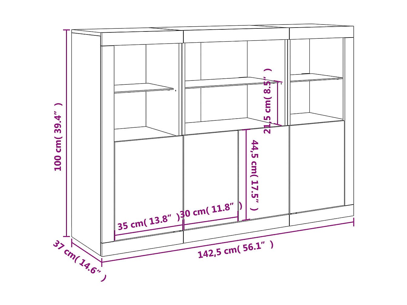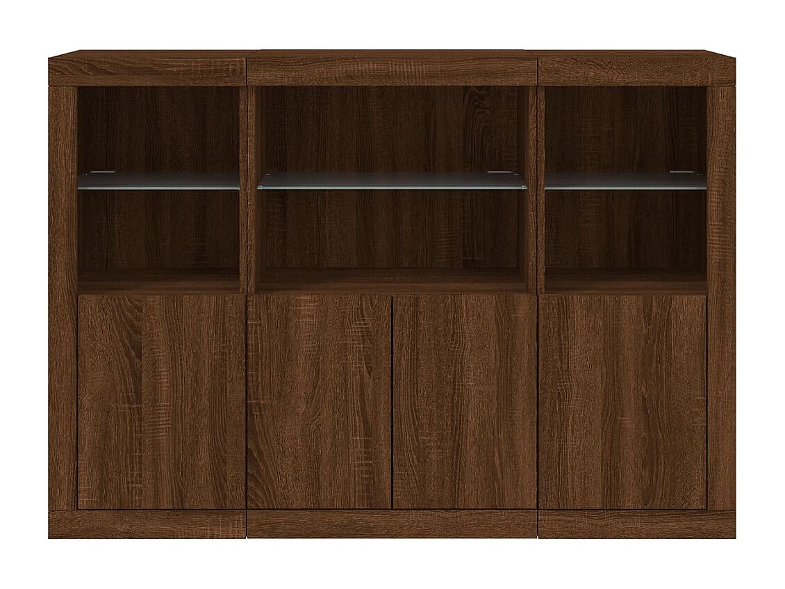 Buffets avec lumières LED 3 pcs chêne brun bois d'ingénierie