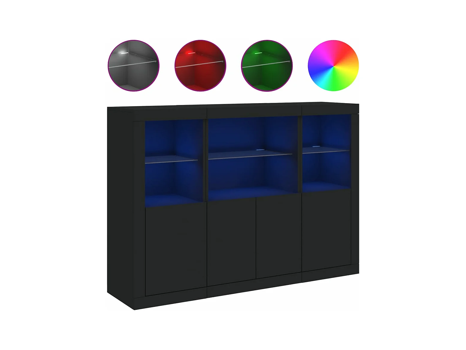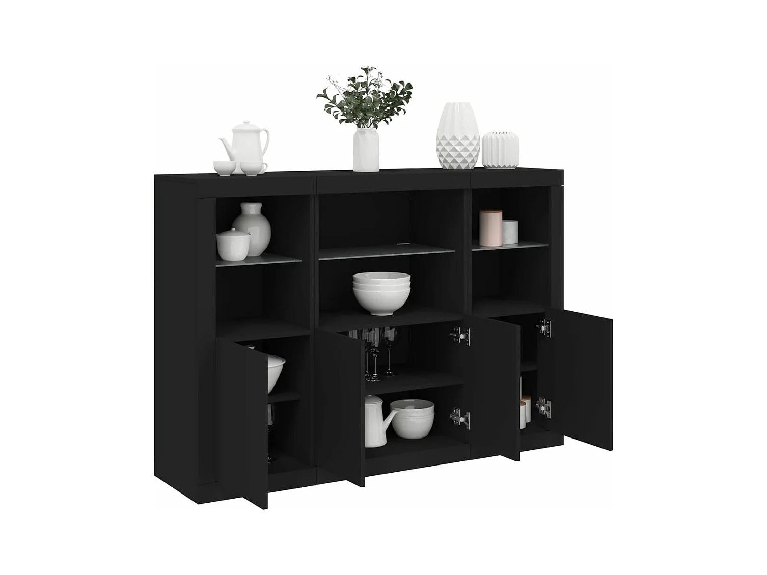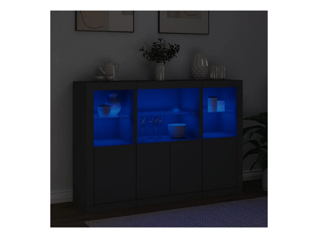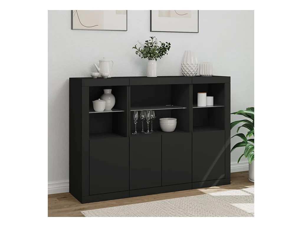 Buffets avec lumières LED 3 pcs noir bois d'ingénierie