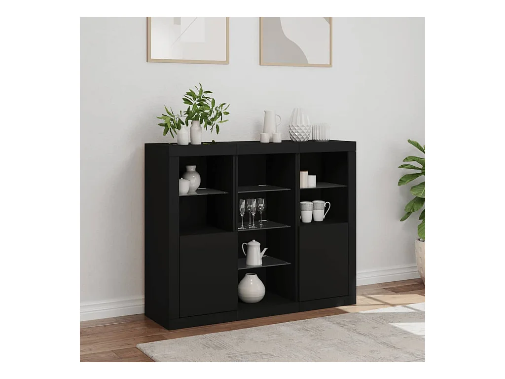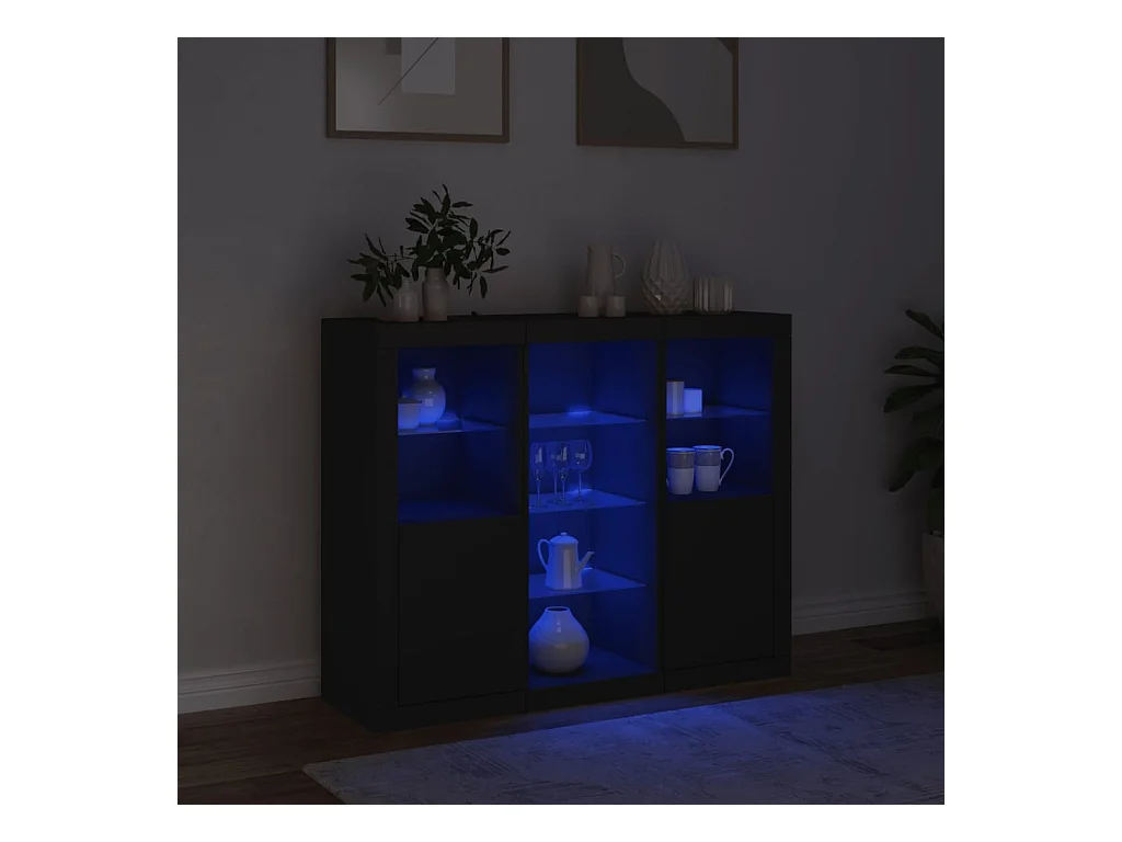 Buffets avec lumières LED 3 pcs noir bois d'ingénierie