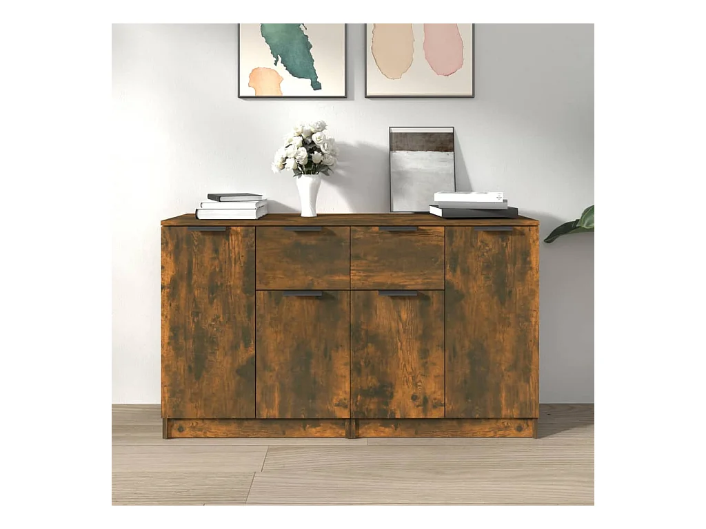 Buffets | Bahuts | Meuble de rangement 2 pcs Chêne fumé 60x30x70 cm Bois d'ingénierie