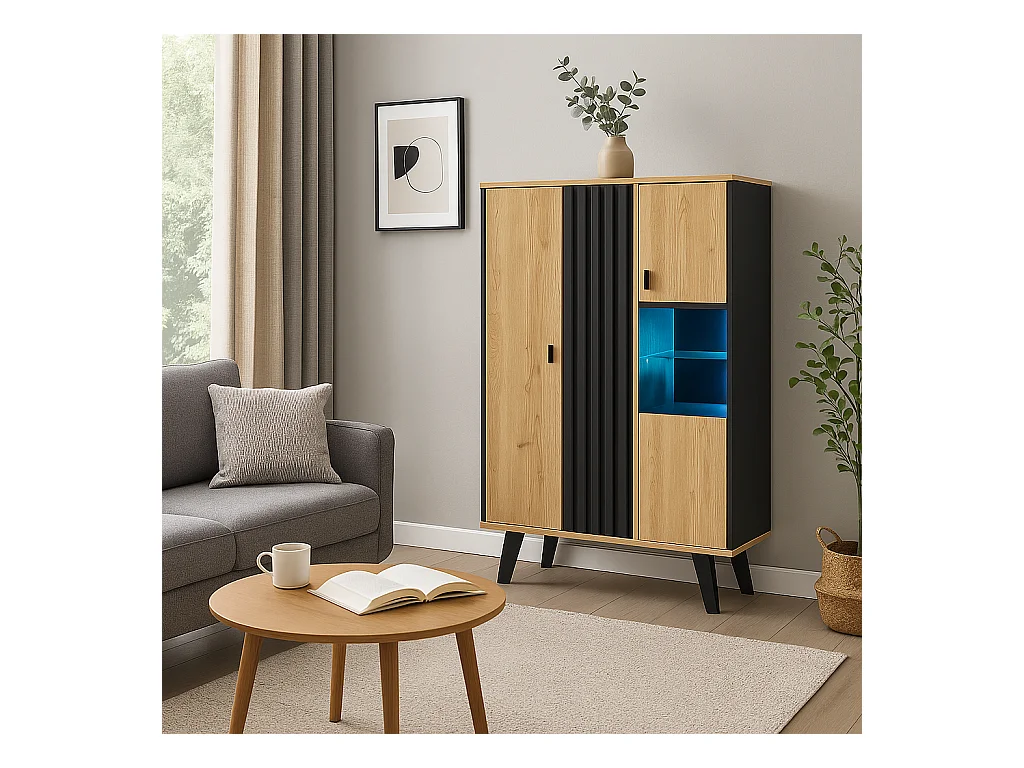 URBAN MEUBLE Buffets vitrines avec verre teinté et éclairage LED en noir et bois