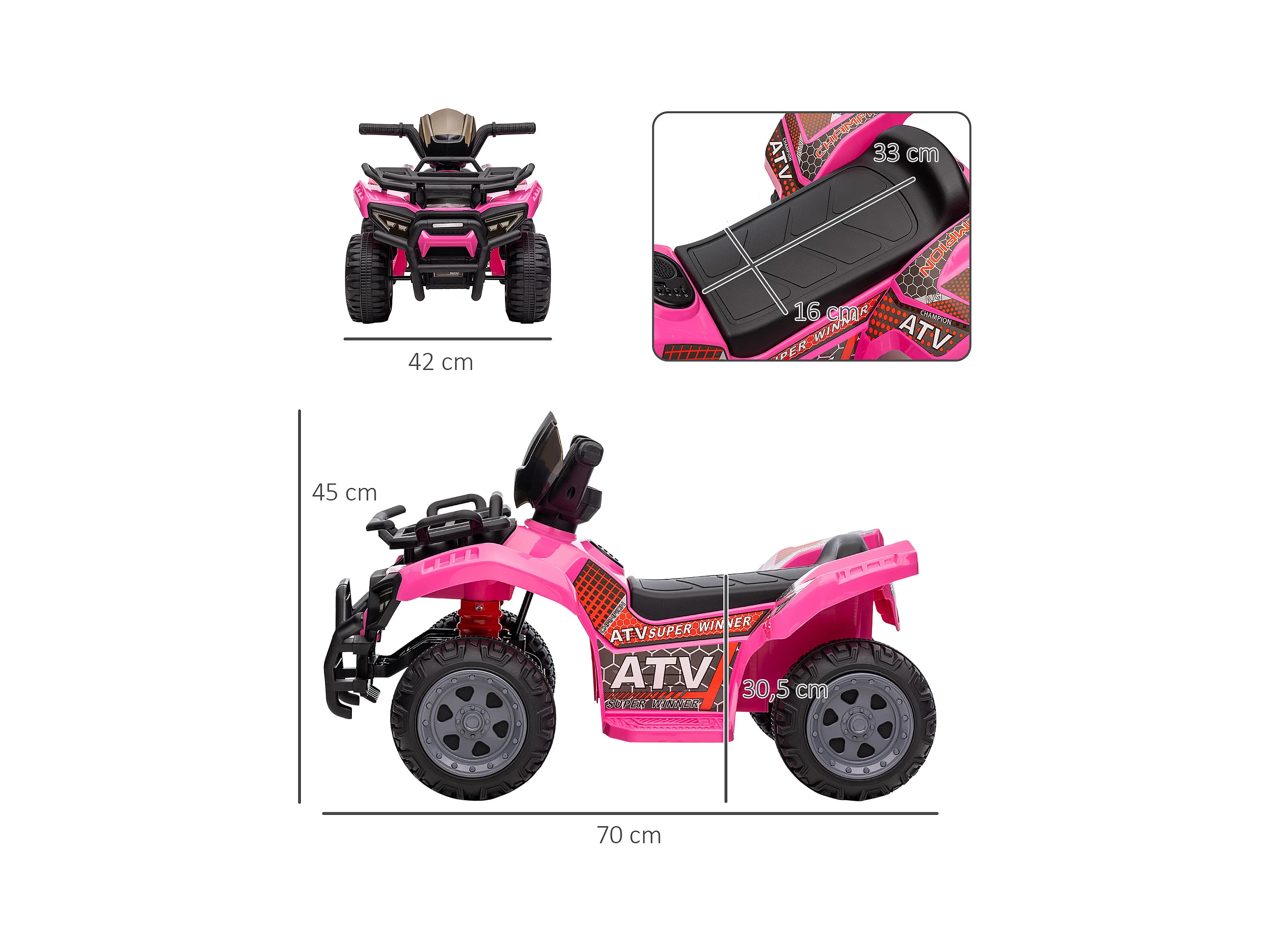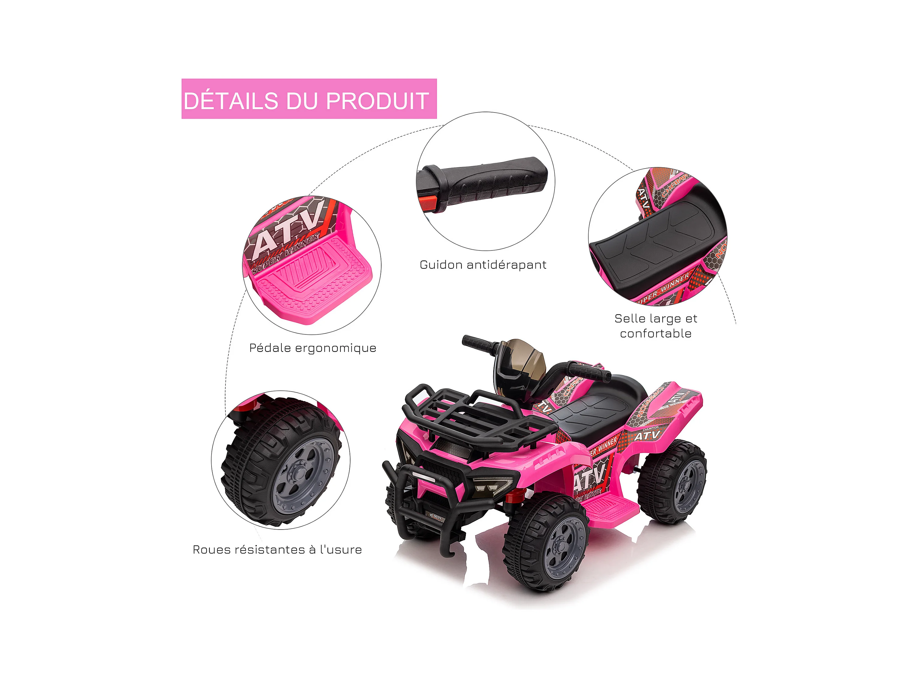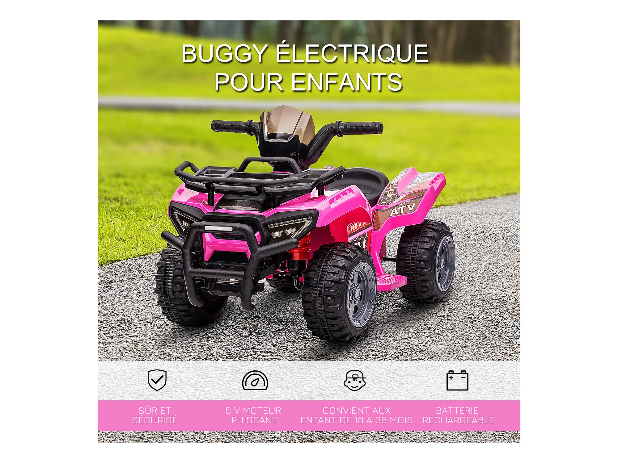 Buggy électrique enfant quad électrique pour enfant de 18 à 36 mois effet lumineux 6 V 2 Km/h max. métal PP rose