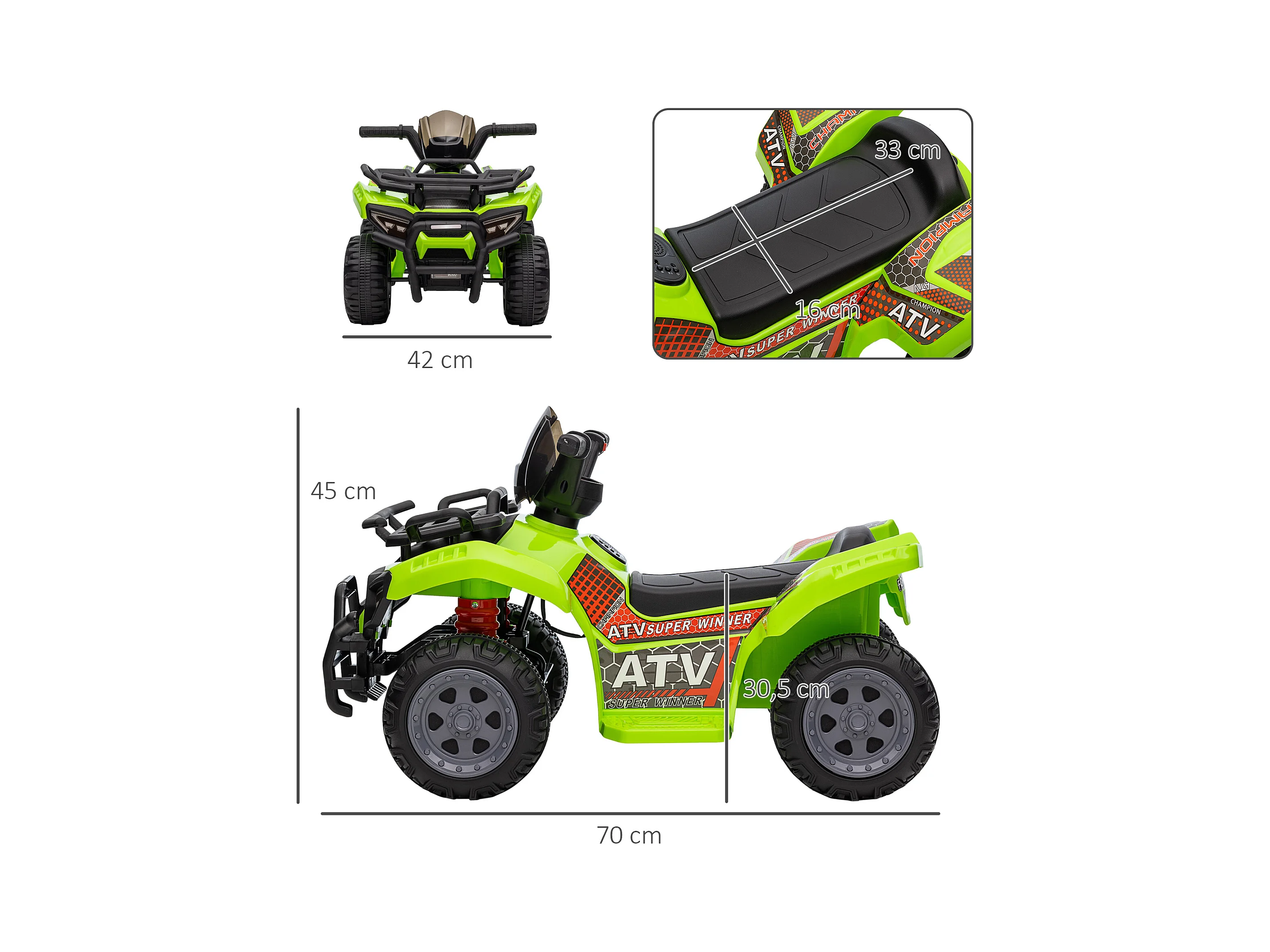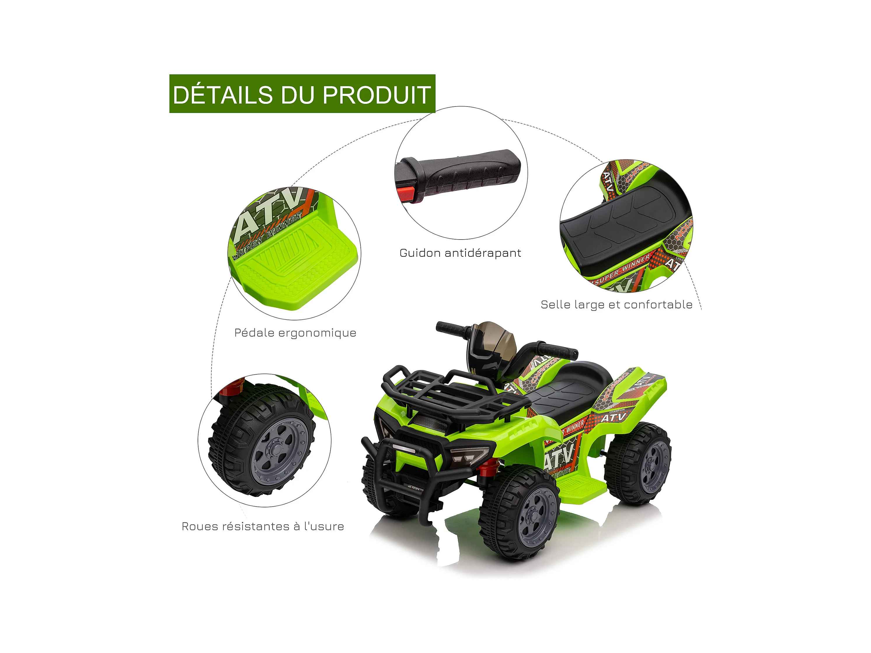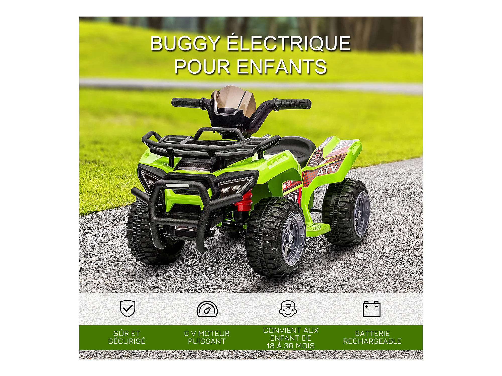 Buggy électrique enfant quad électrique pour enfant de 18 à 36 mois effet lumineux 6 V 2 Km/h max. métal PP vert