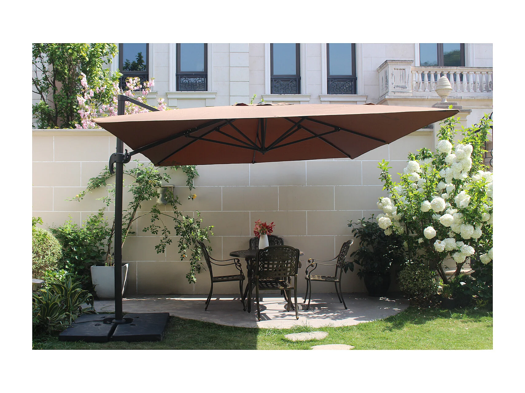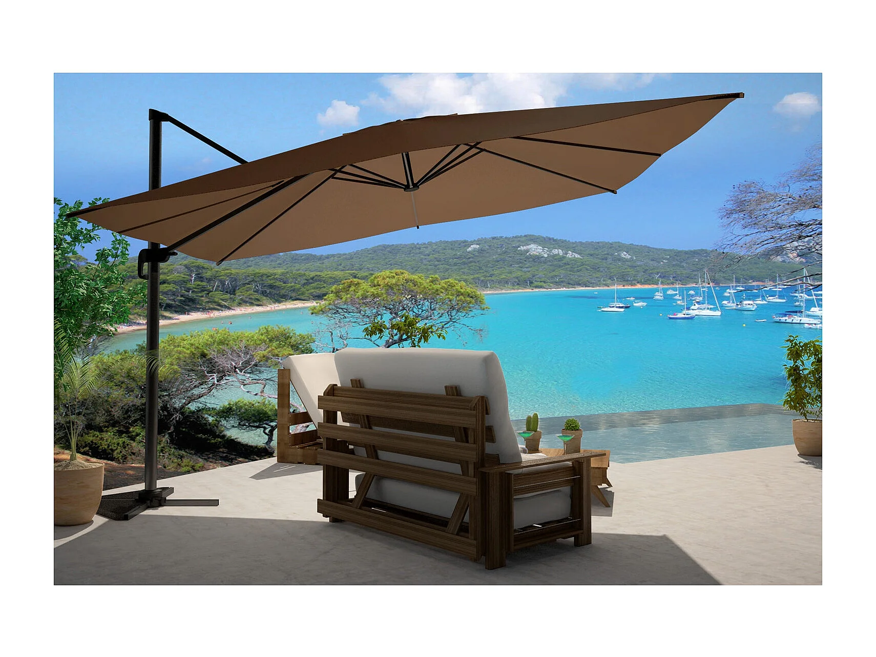 Bundle parasol rectangulaire 3x4m déporté rotatif marron aluminium + housse CESARE