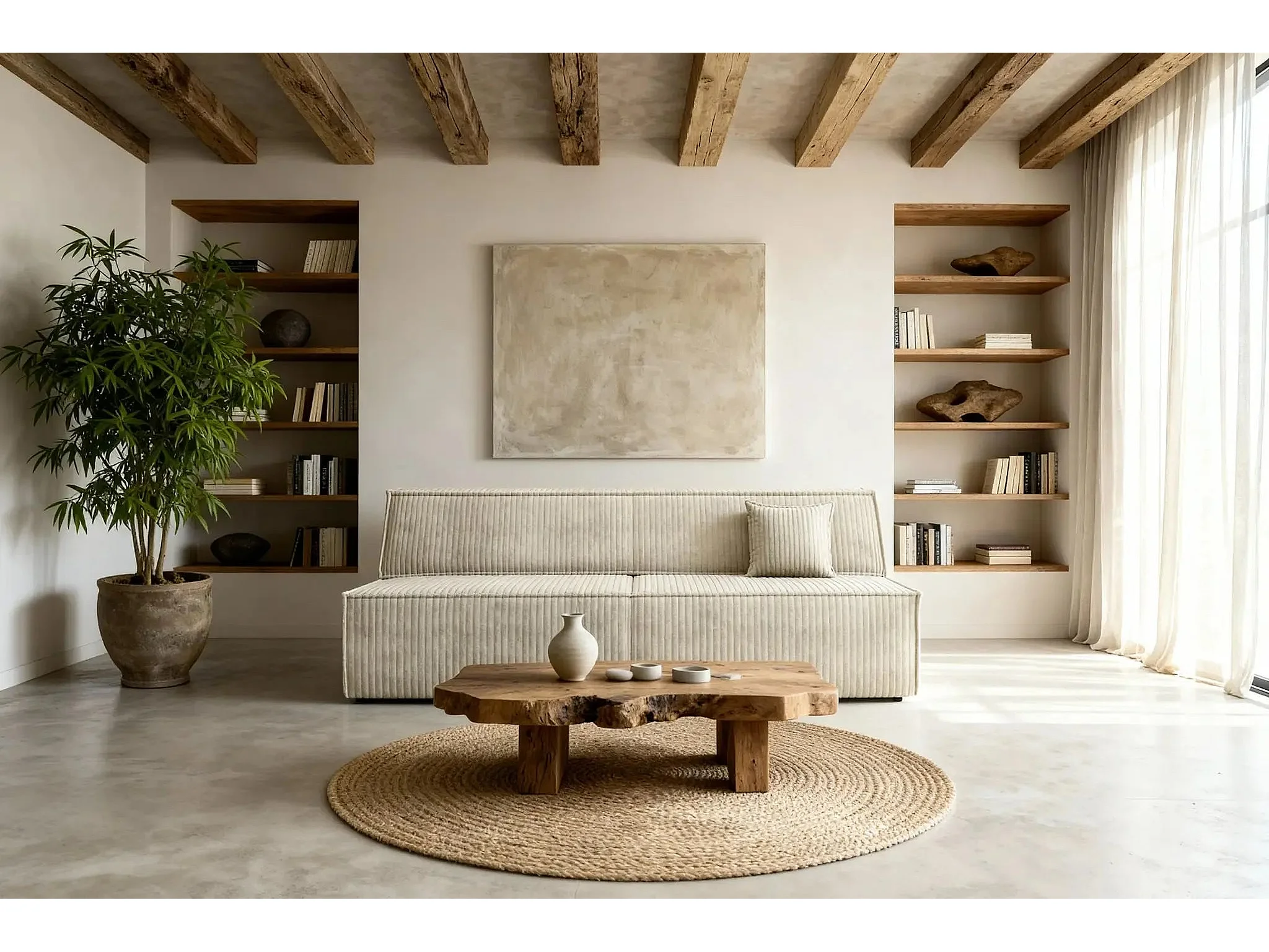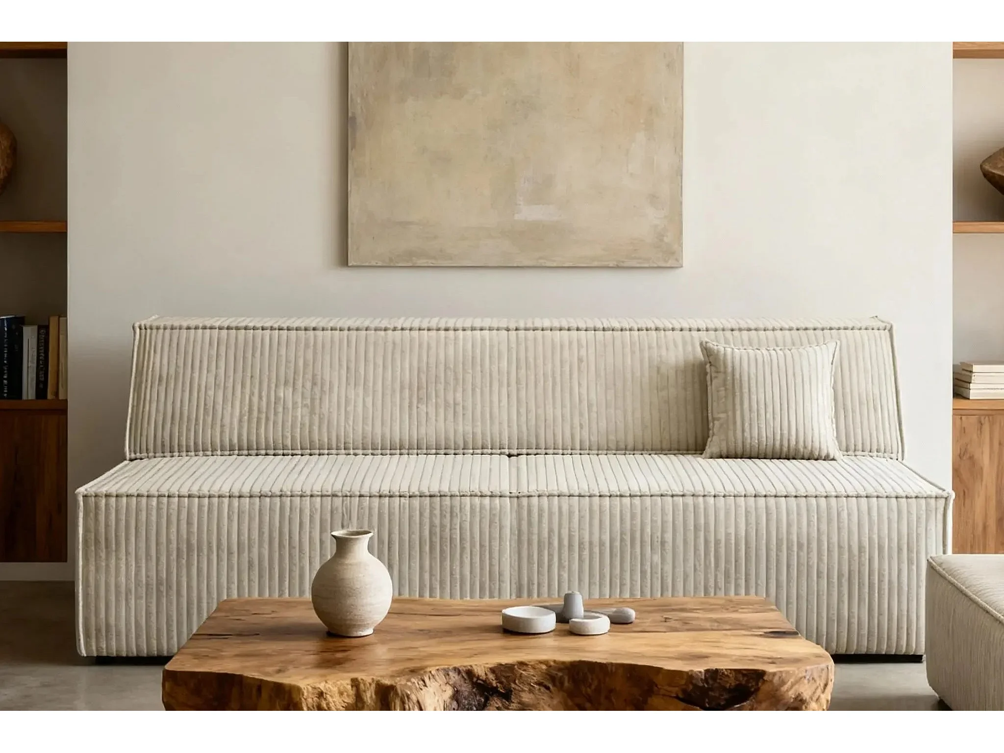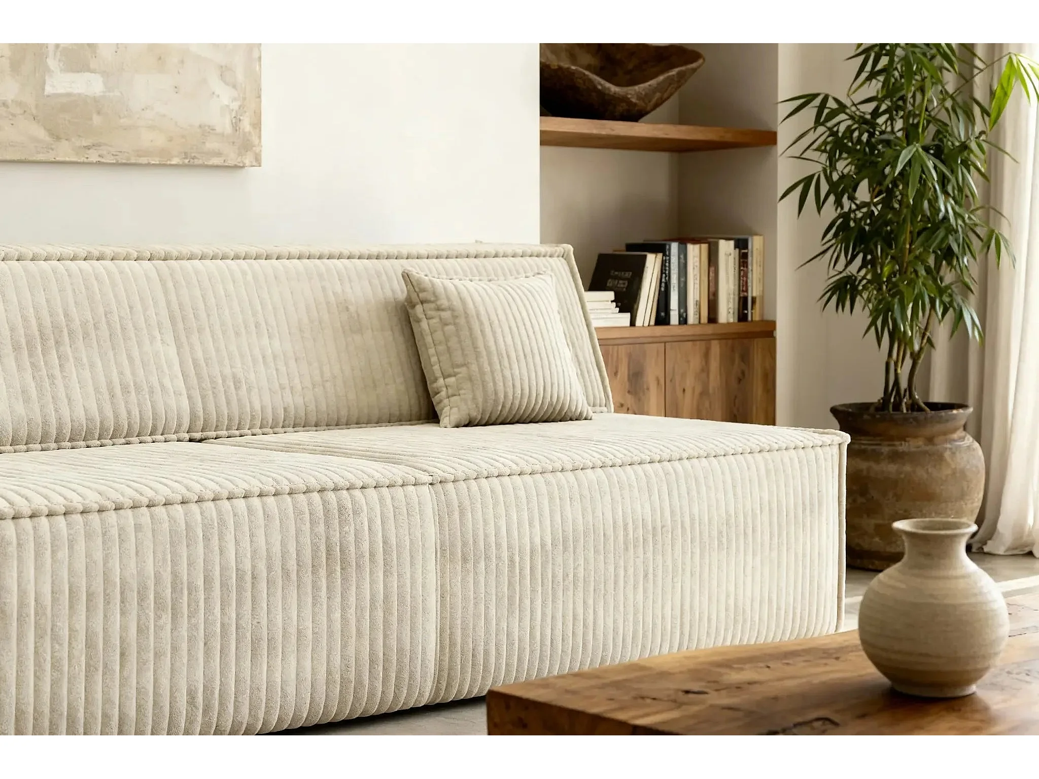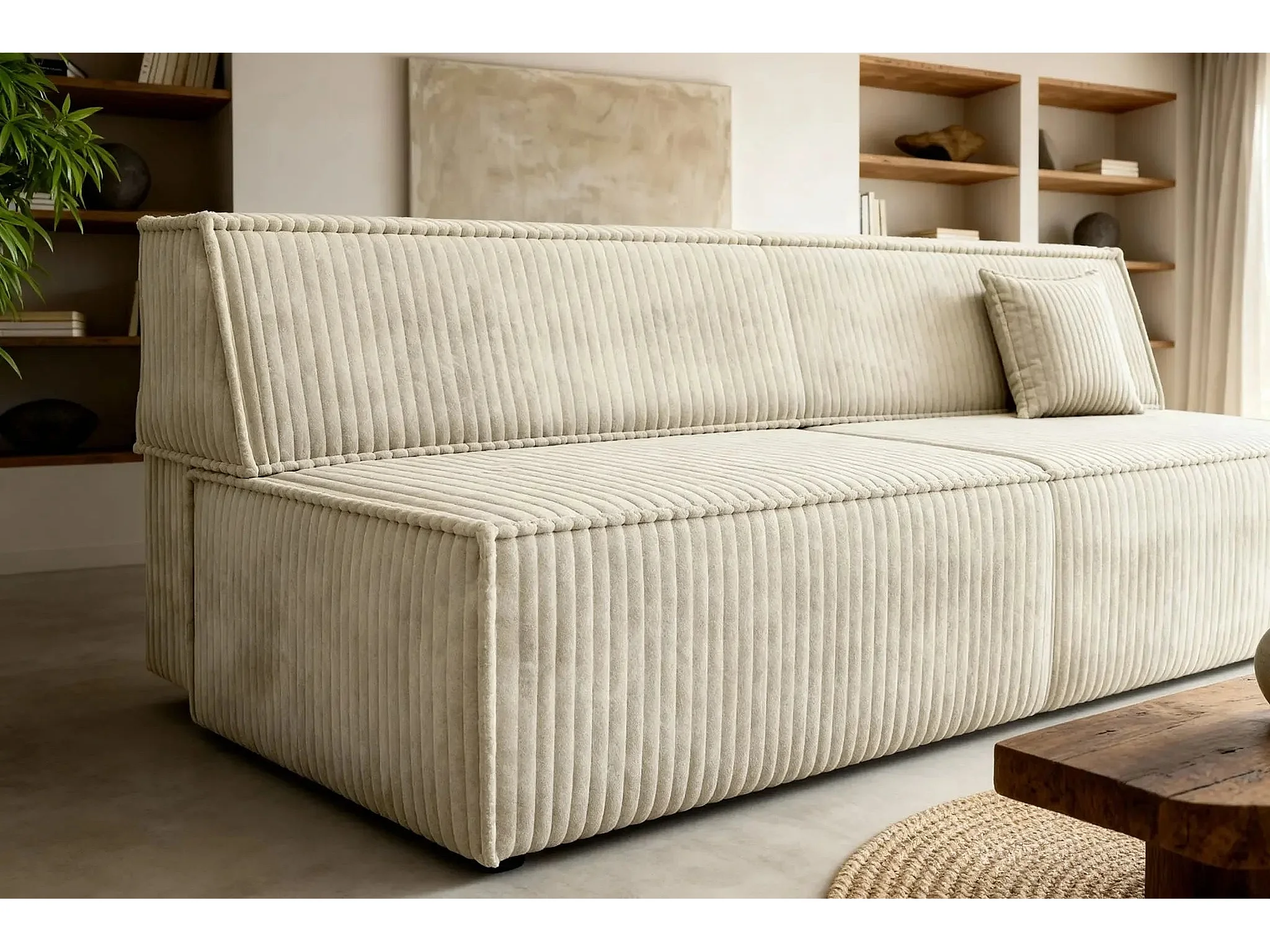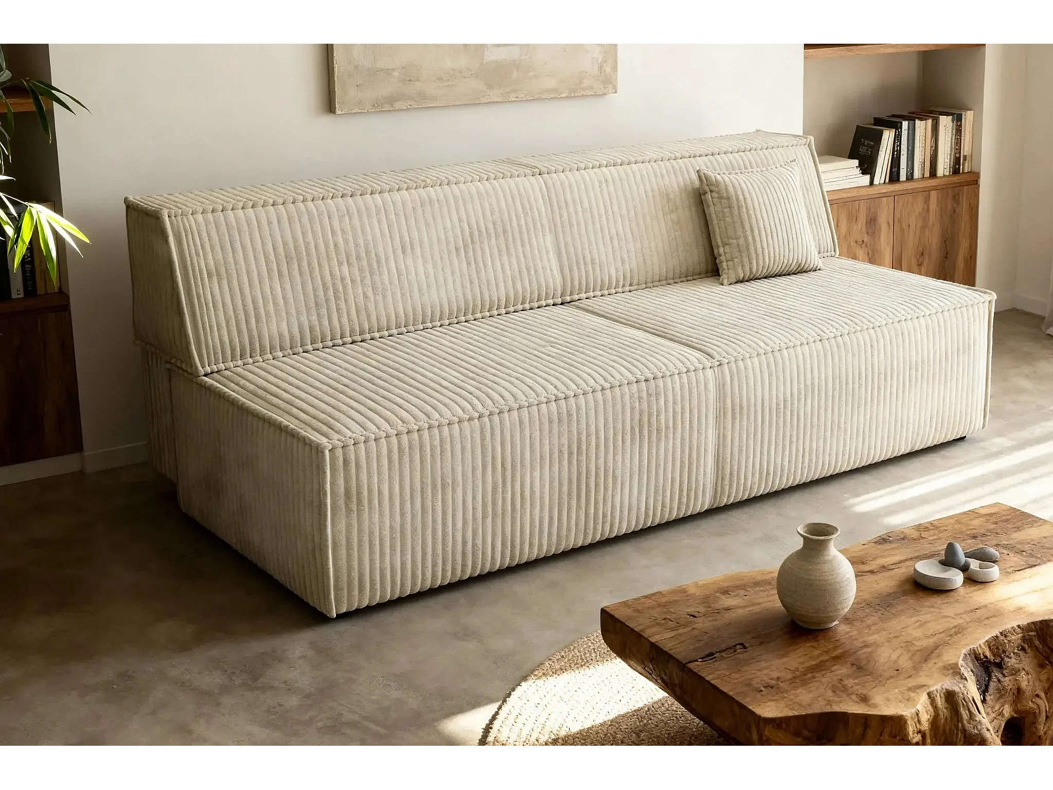 BURANO - Canapé droit convertible velours côtelé 2 places - Beige