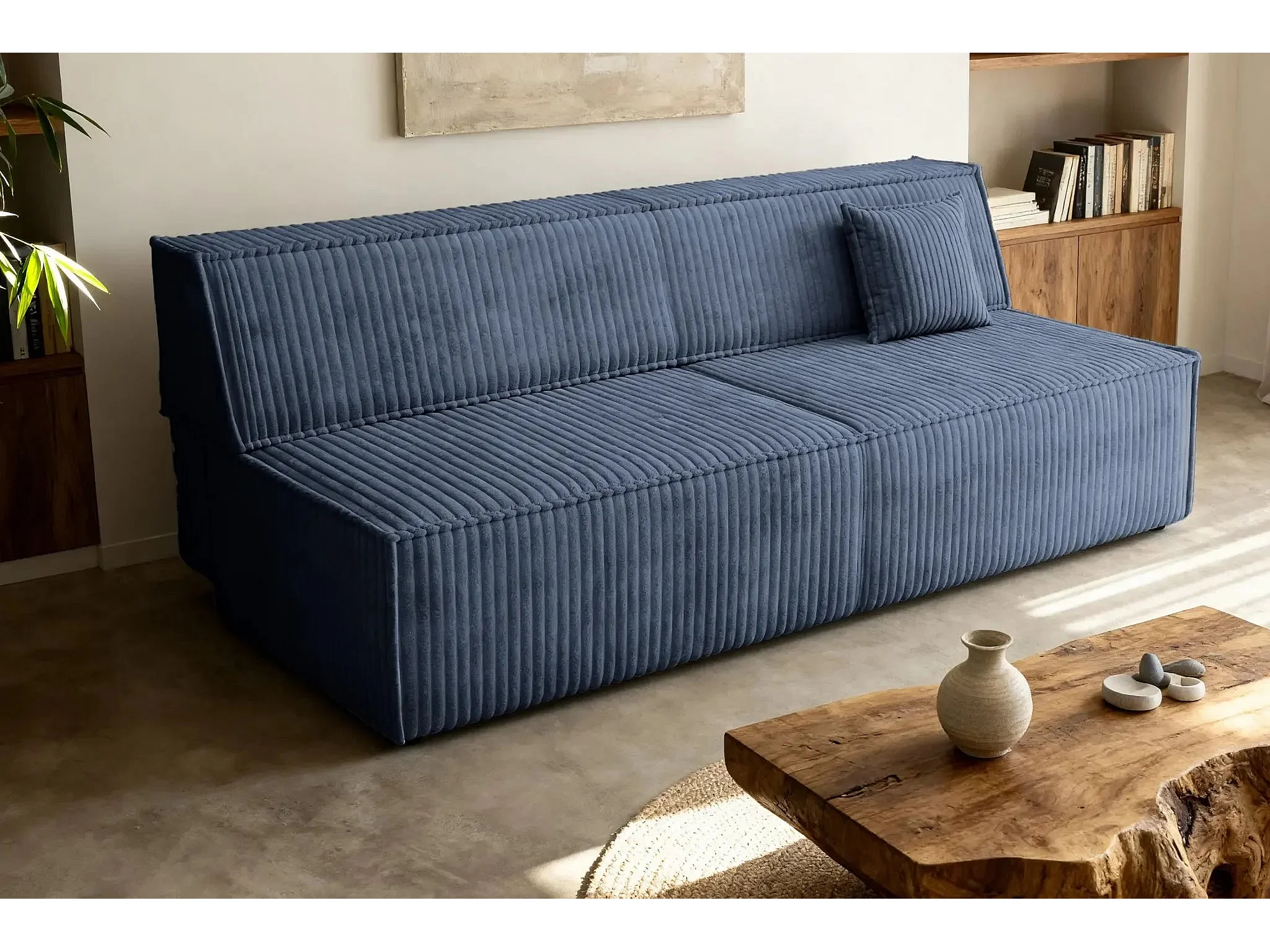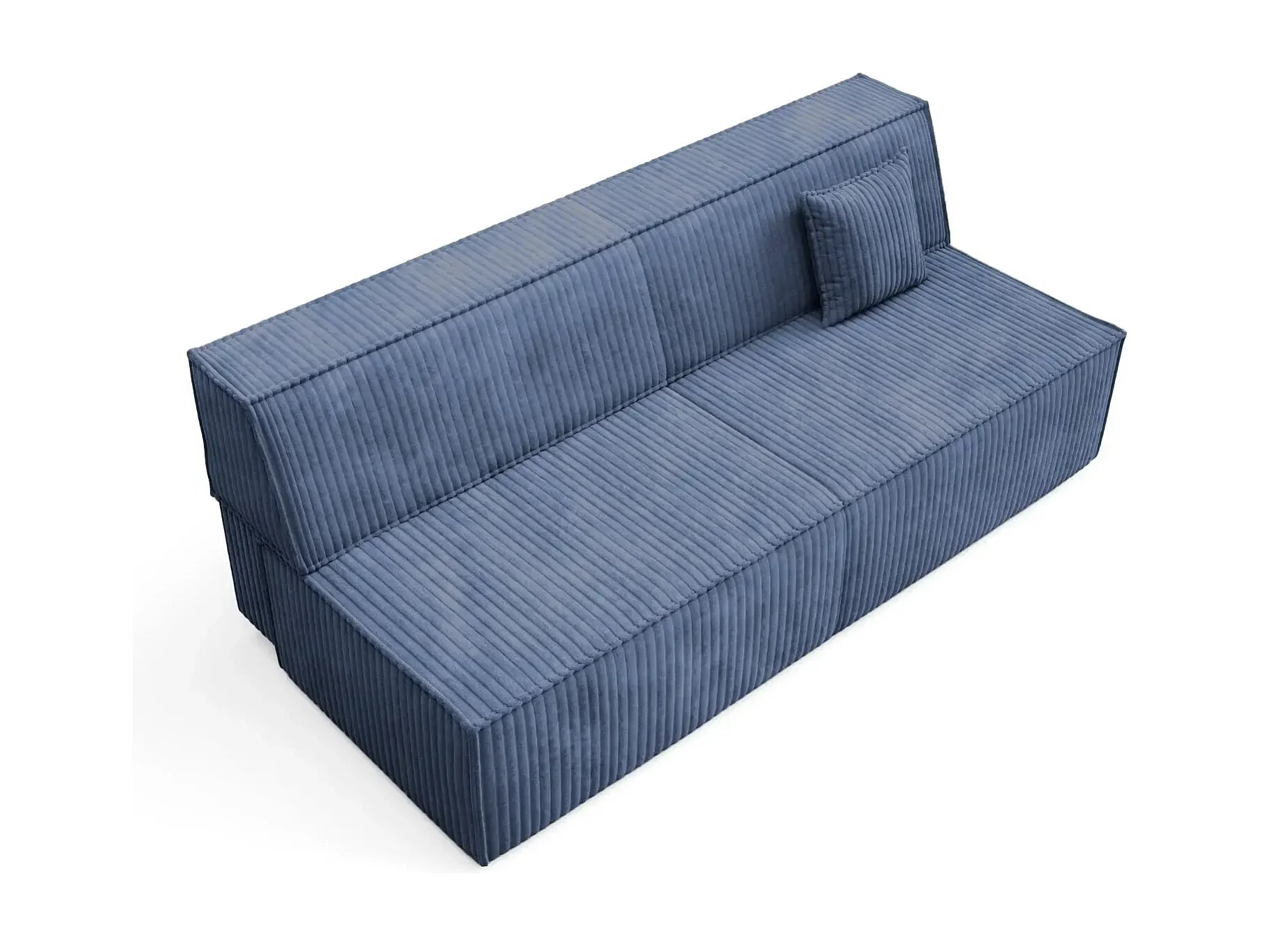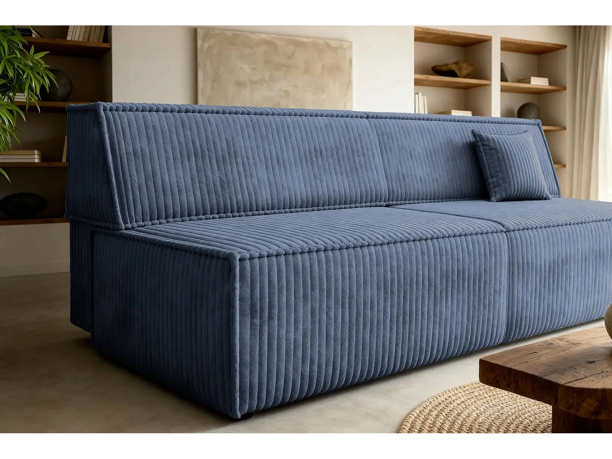 BURANO - Canapé droit convertible velours côtelé 2 places - Bleu