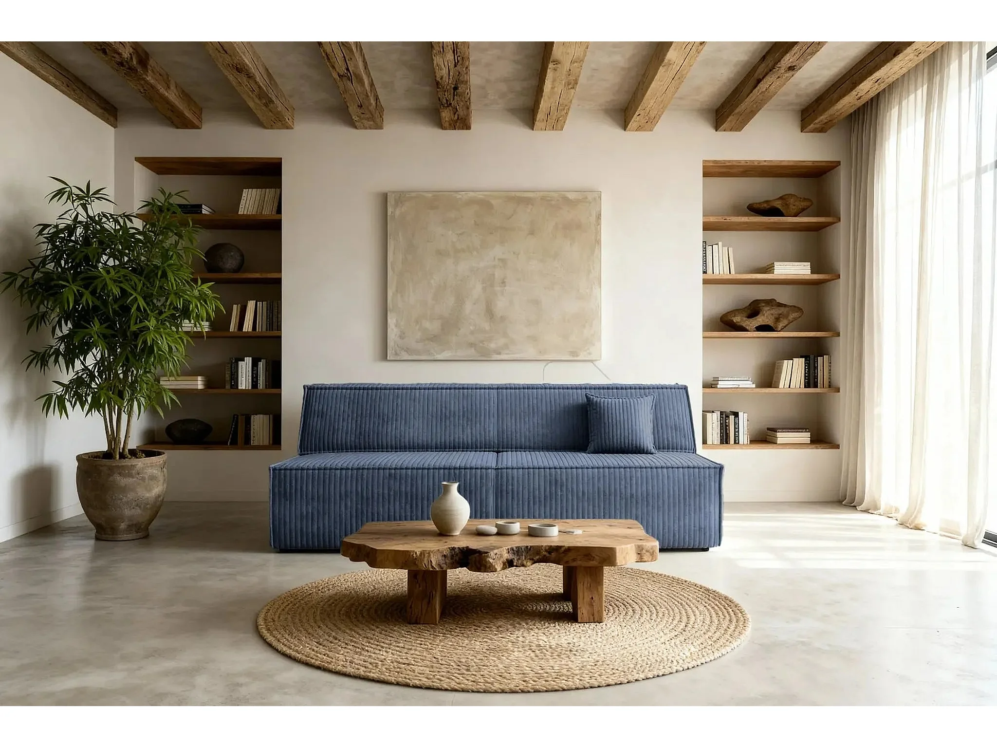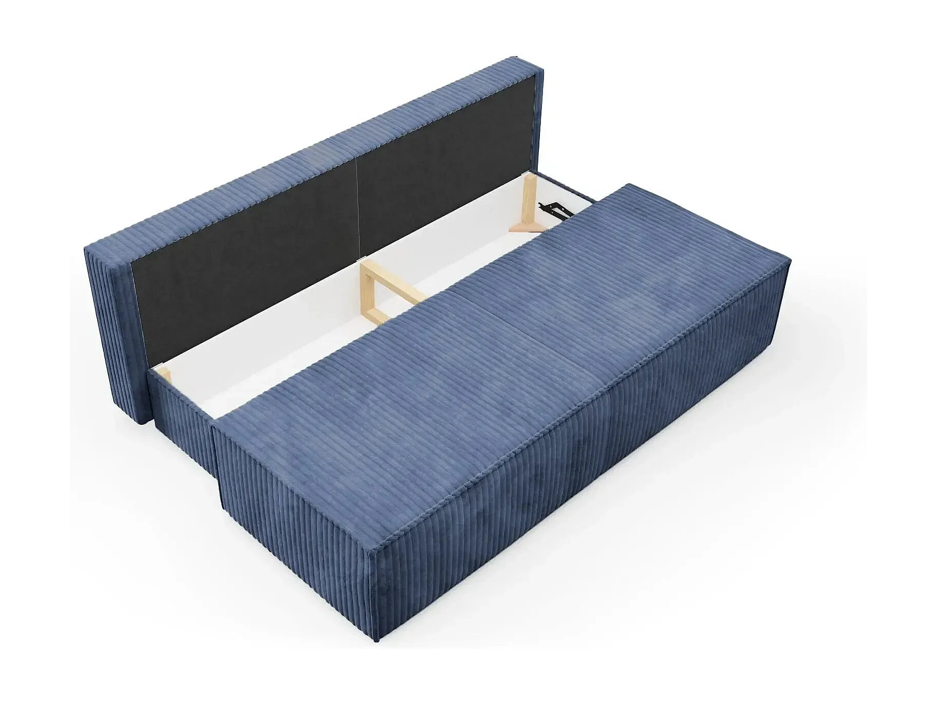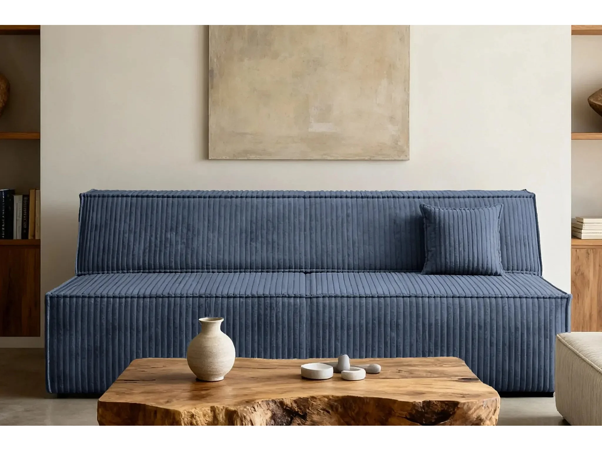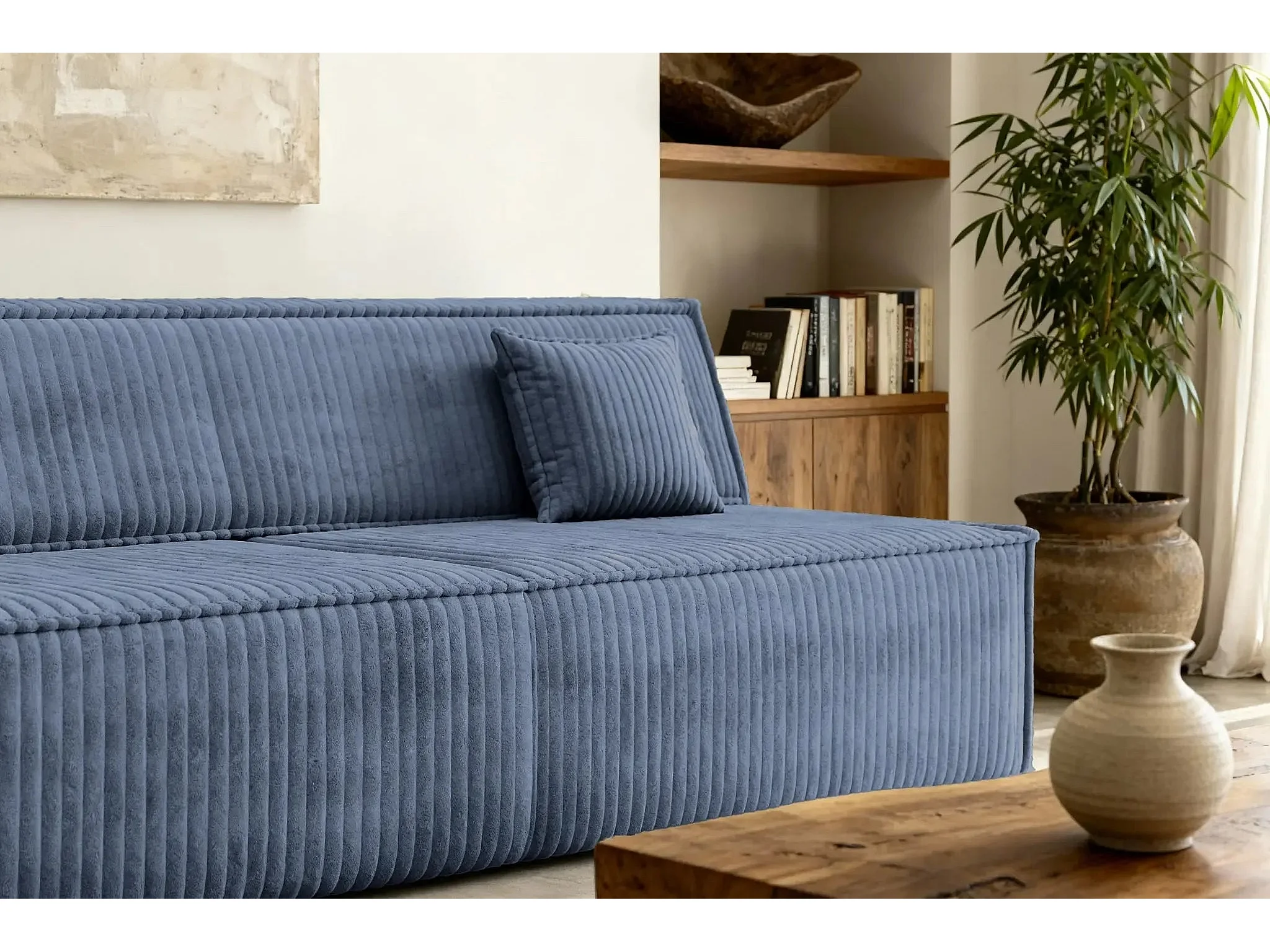 BURANO - Canapé droit convertible velours côtelé 2 places - Bleu