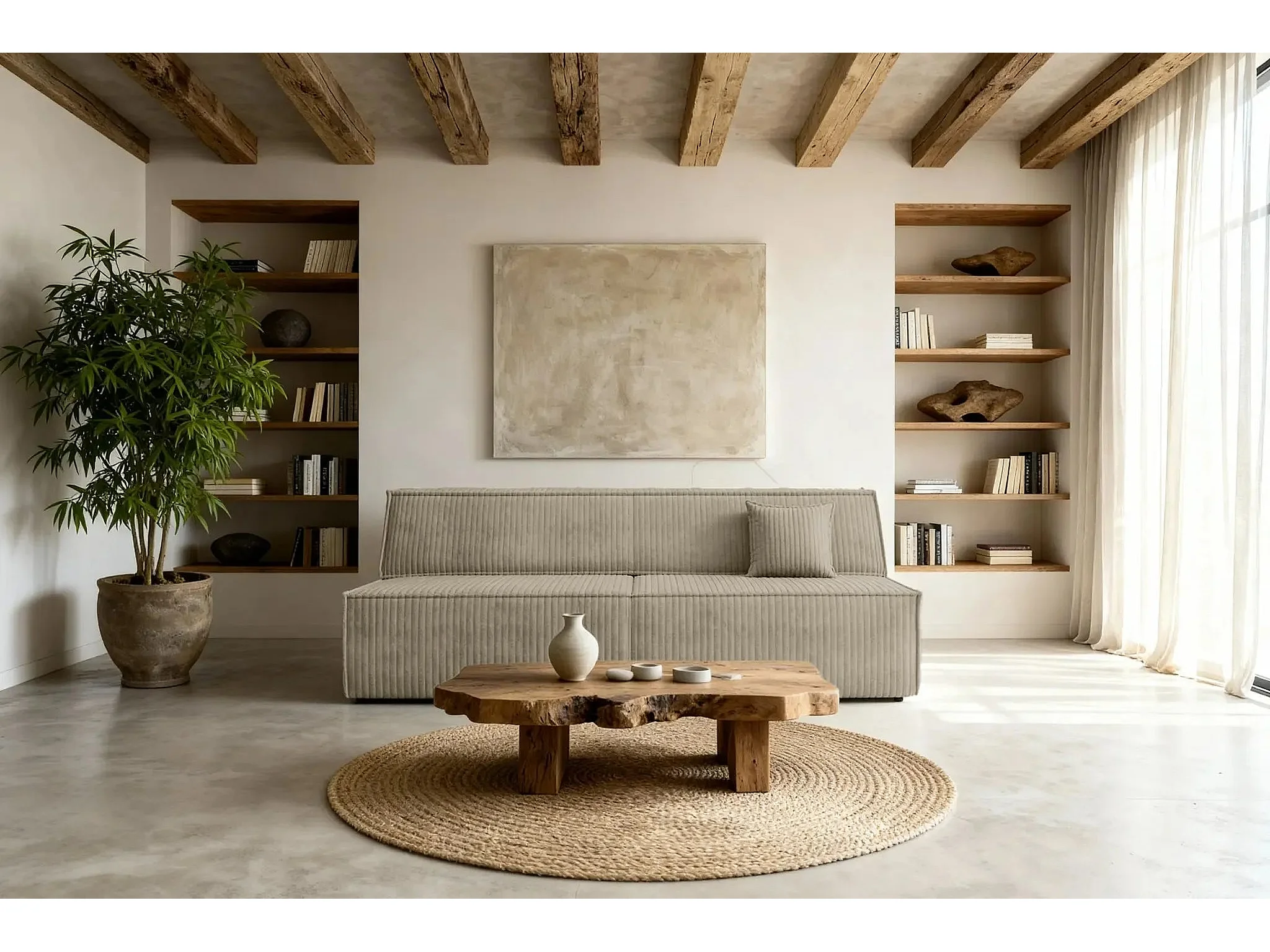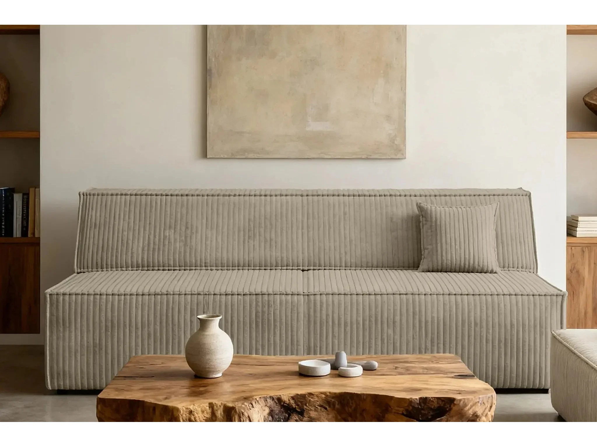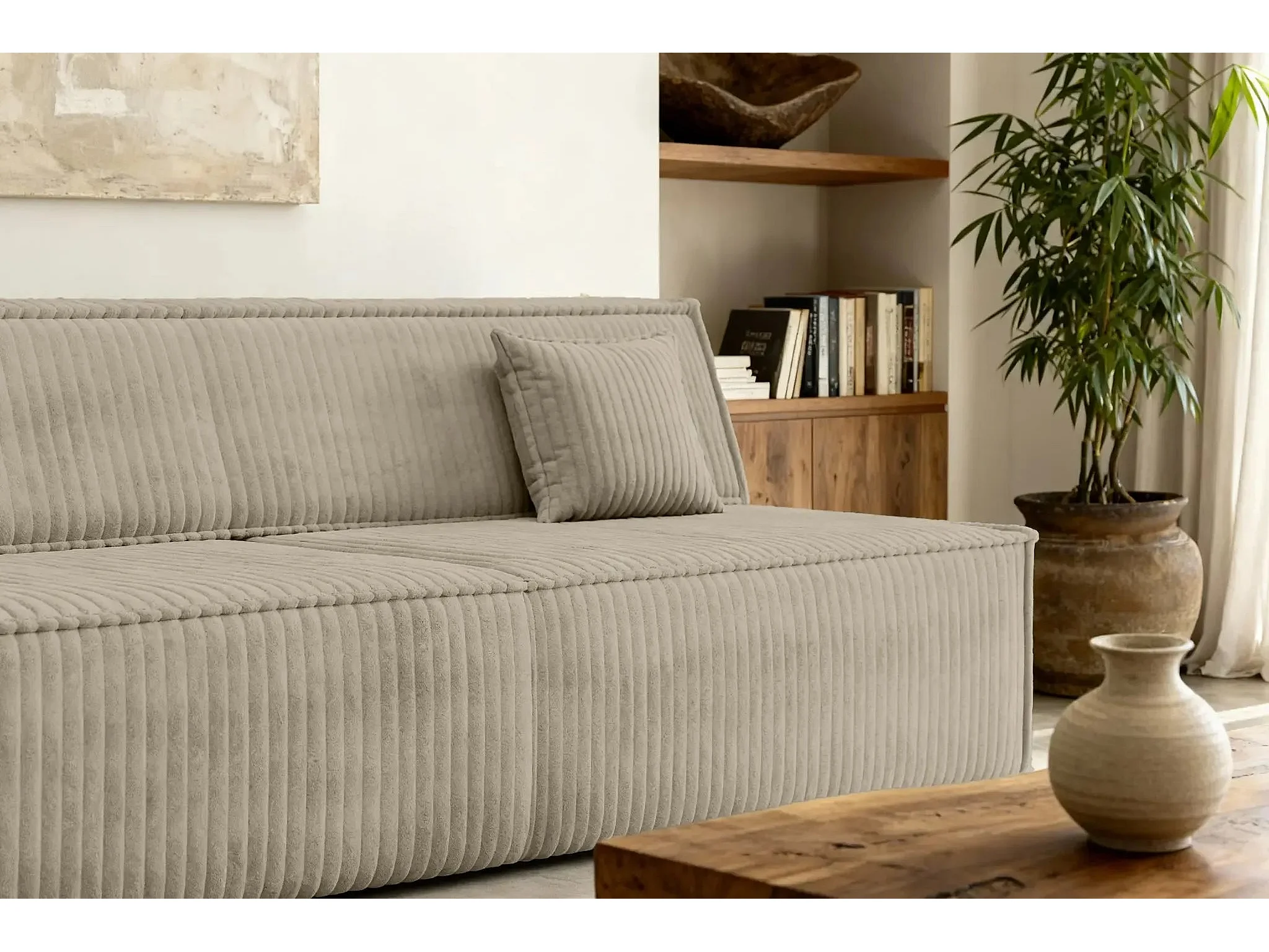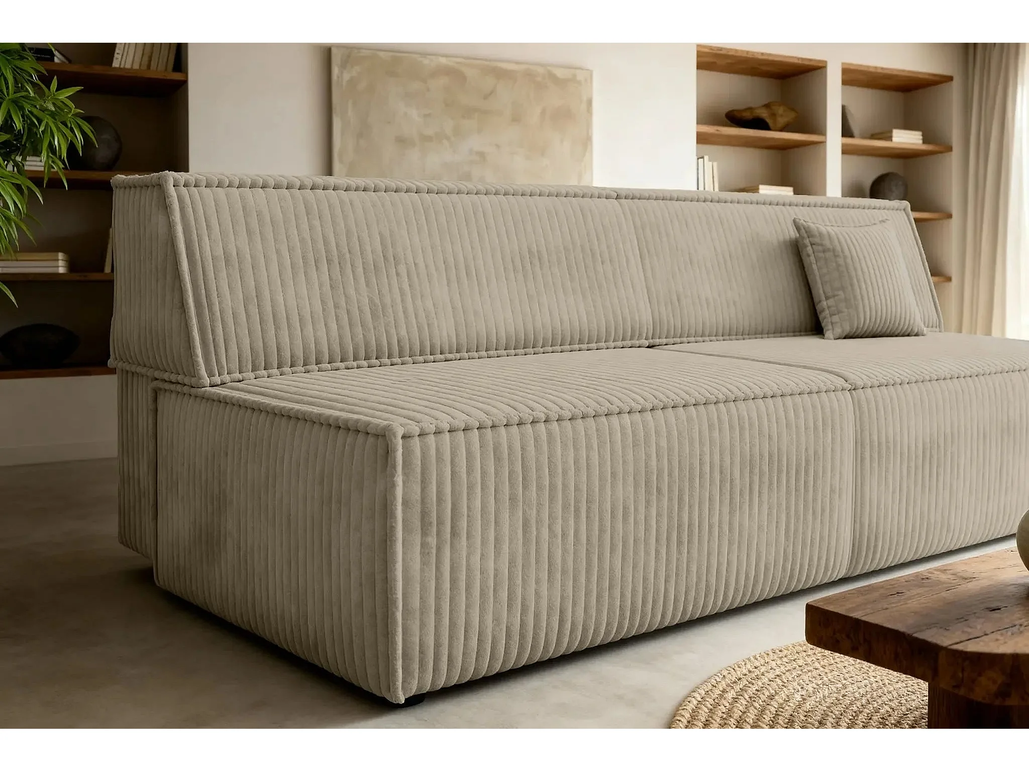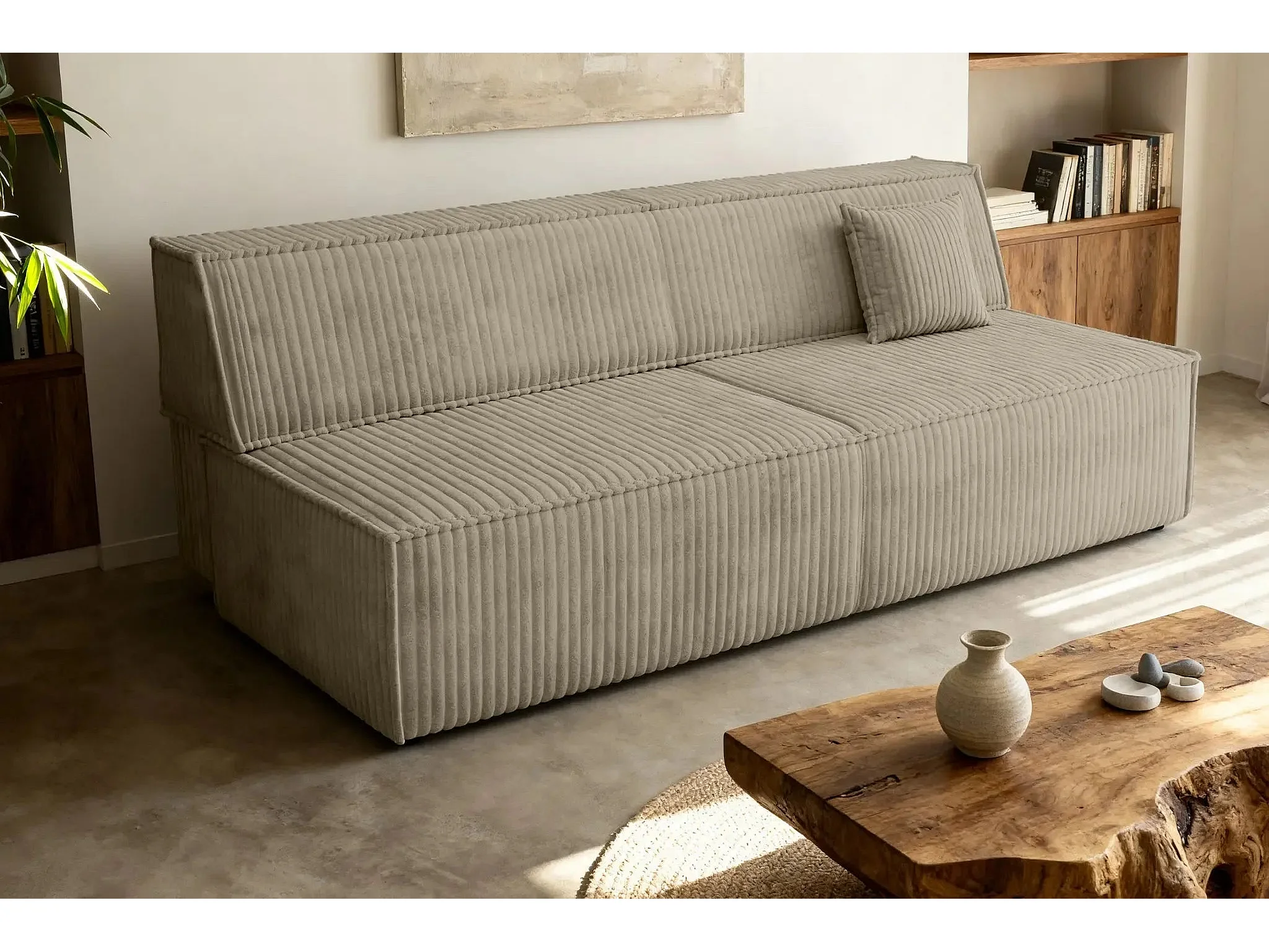 BURANO - Canapé droit convertible velours côtelé 2 places - Café